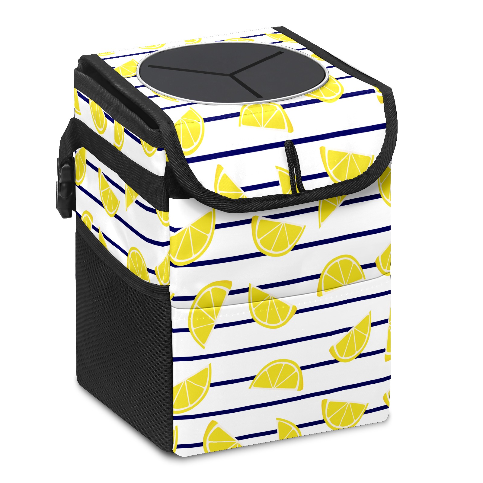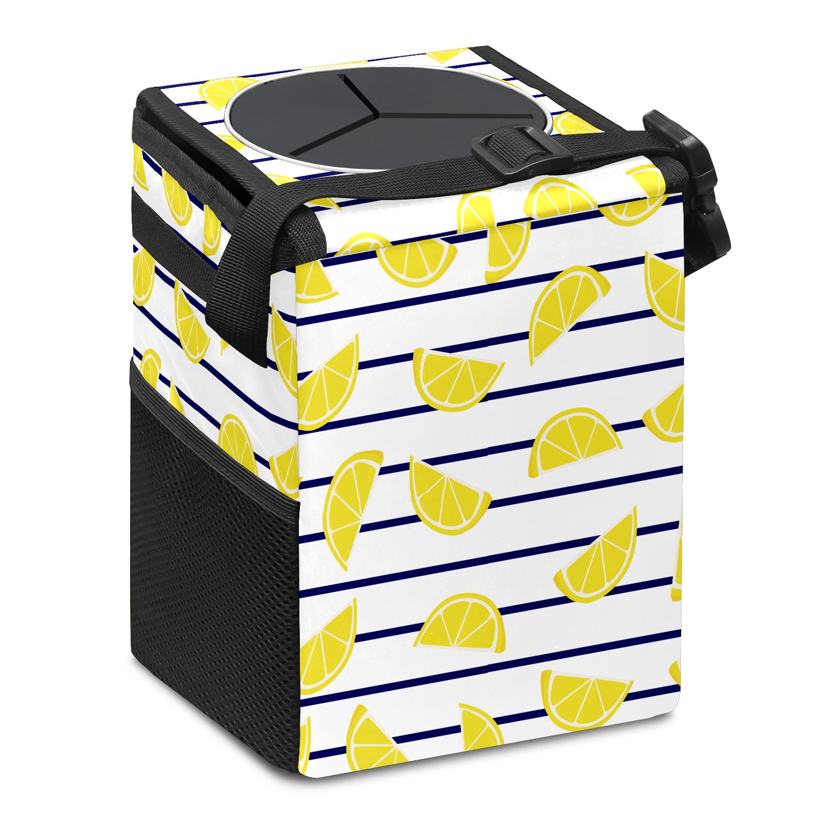 Car Garbage Can — Multi-functional, Lightweight Portable, Reusable Vehicle Trash Can, Waterproof with Sufficient Storage Capacity Lemon Slices On Marine Stripes