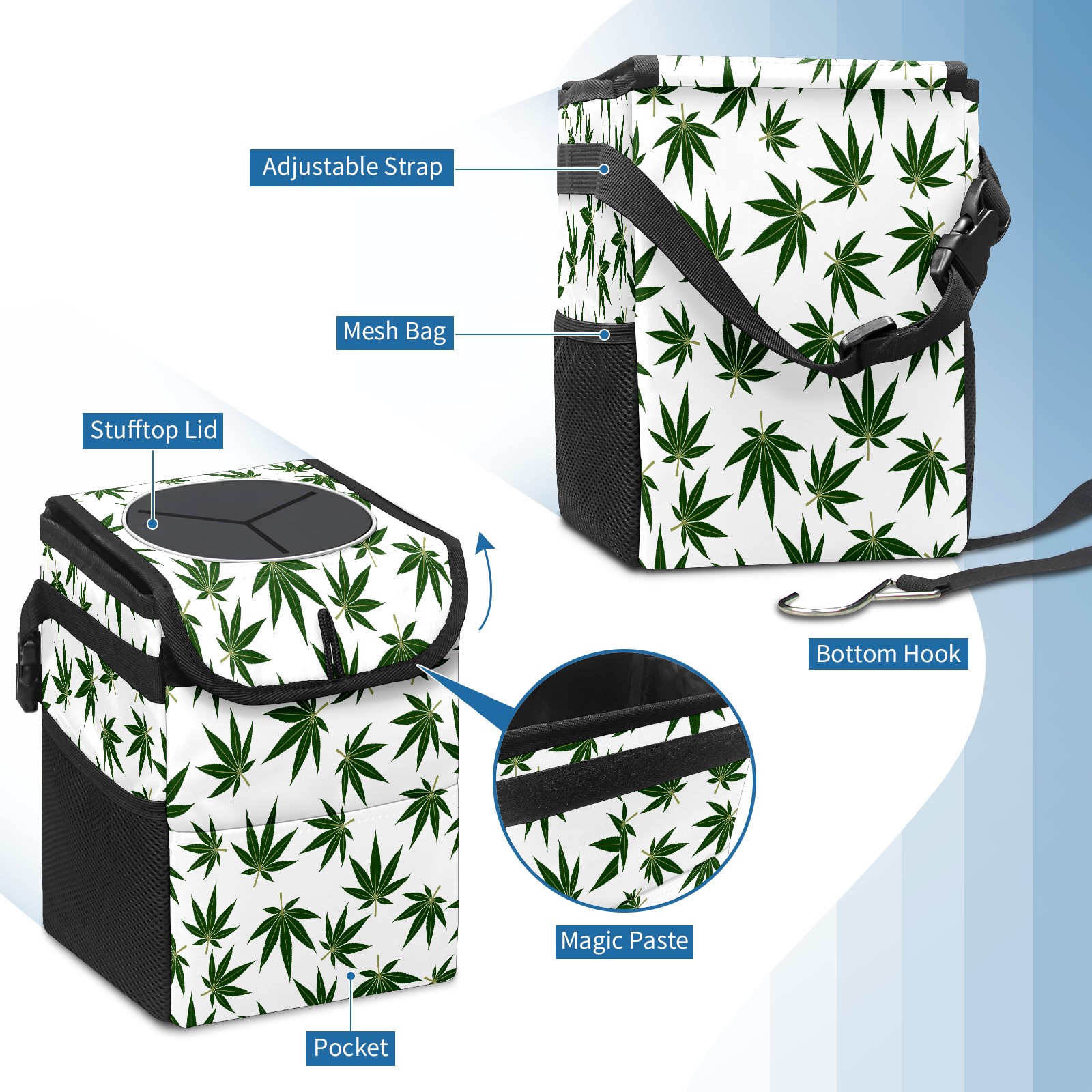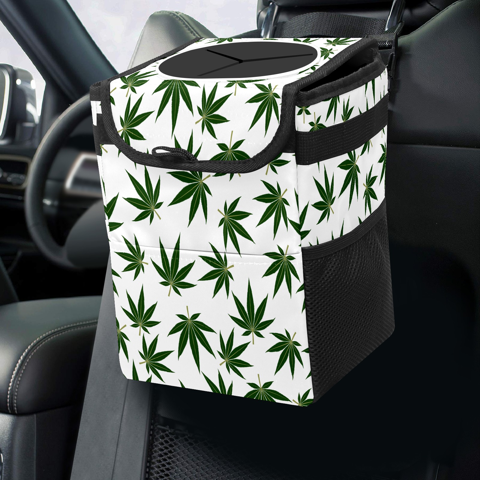 Car Garbage Can — Multi-functional, Lightweight Portable, Reusable Vehicle Trash Can, Waterproof with Sufficient Storage Capacity Green Maple Leaf