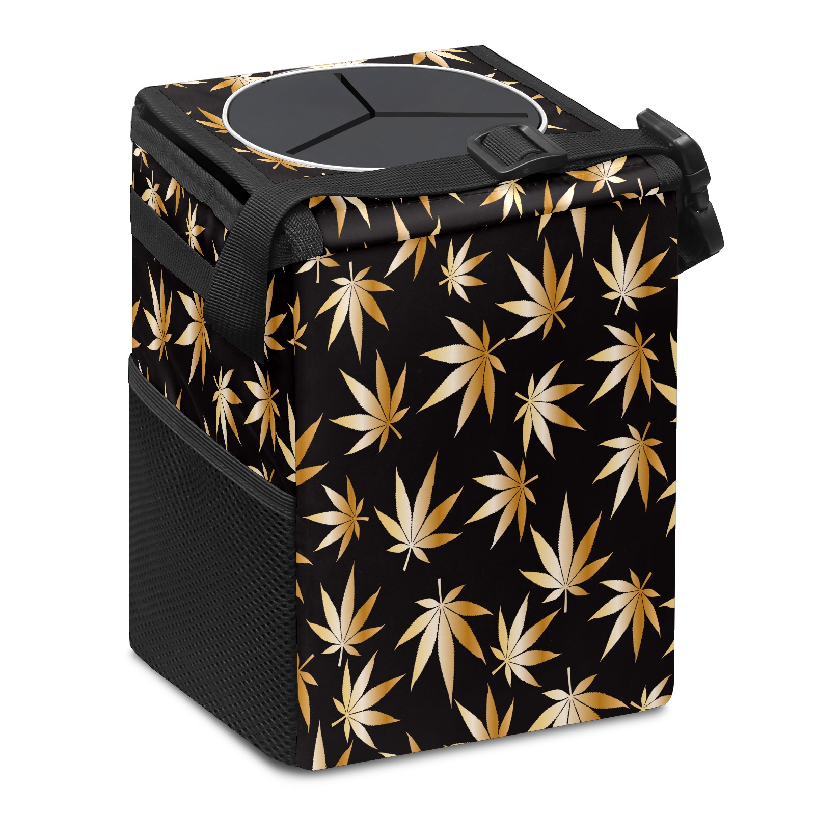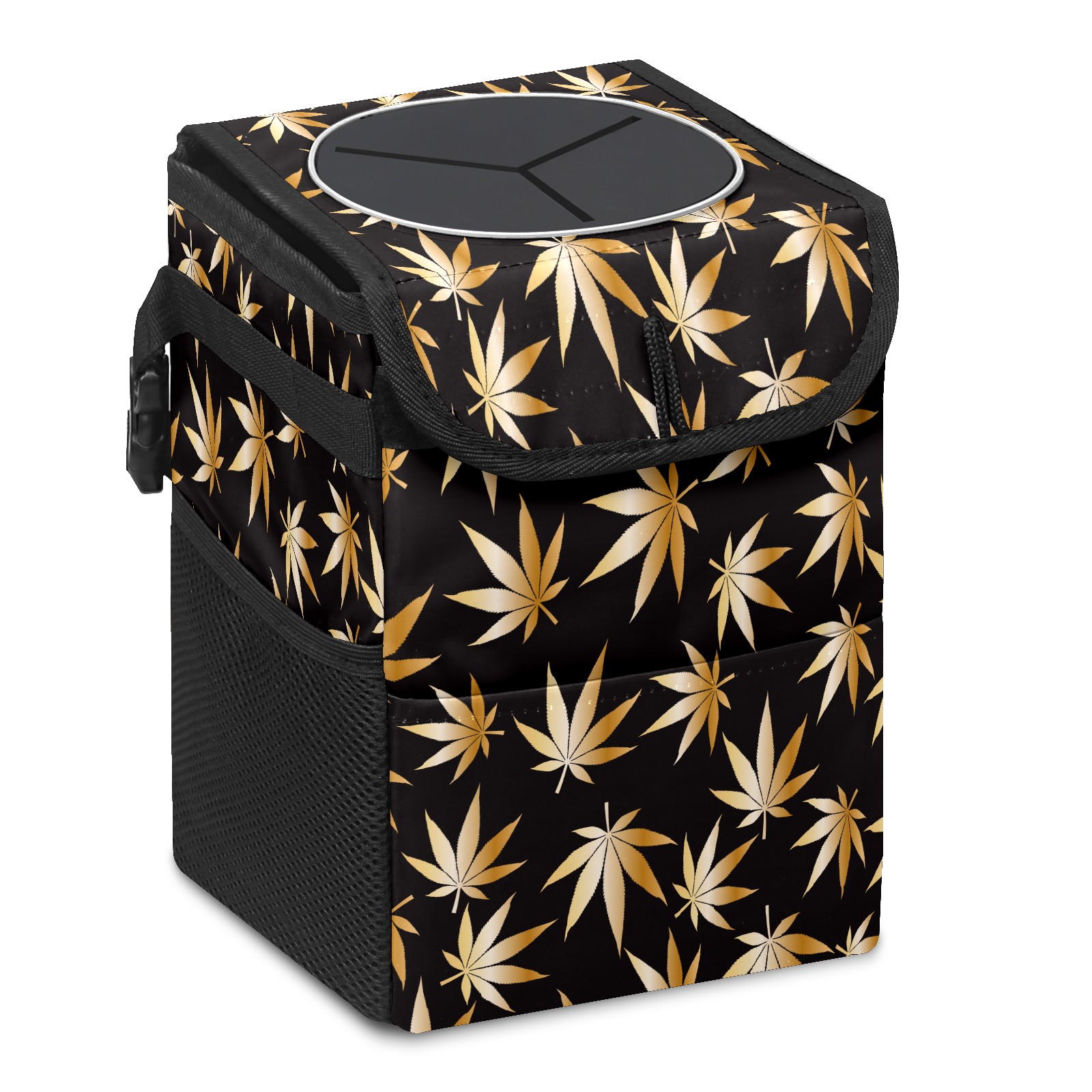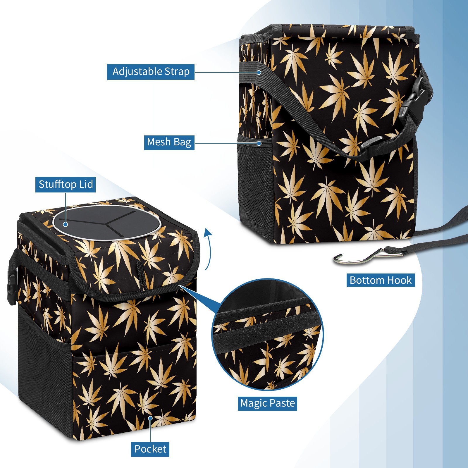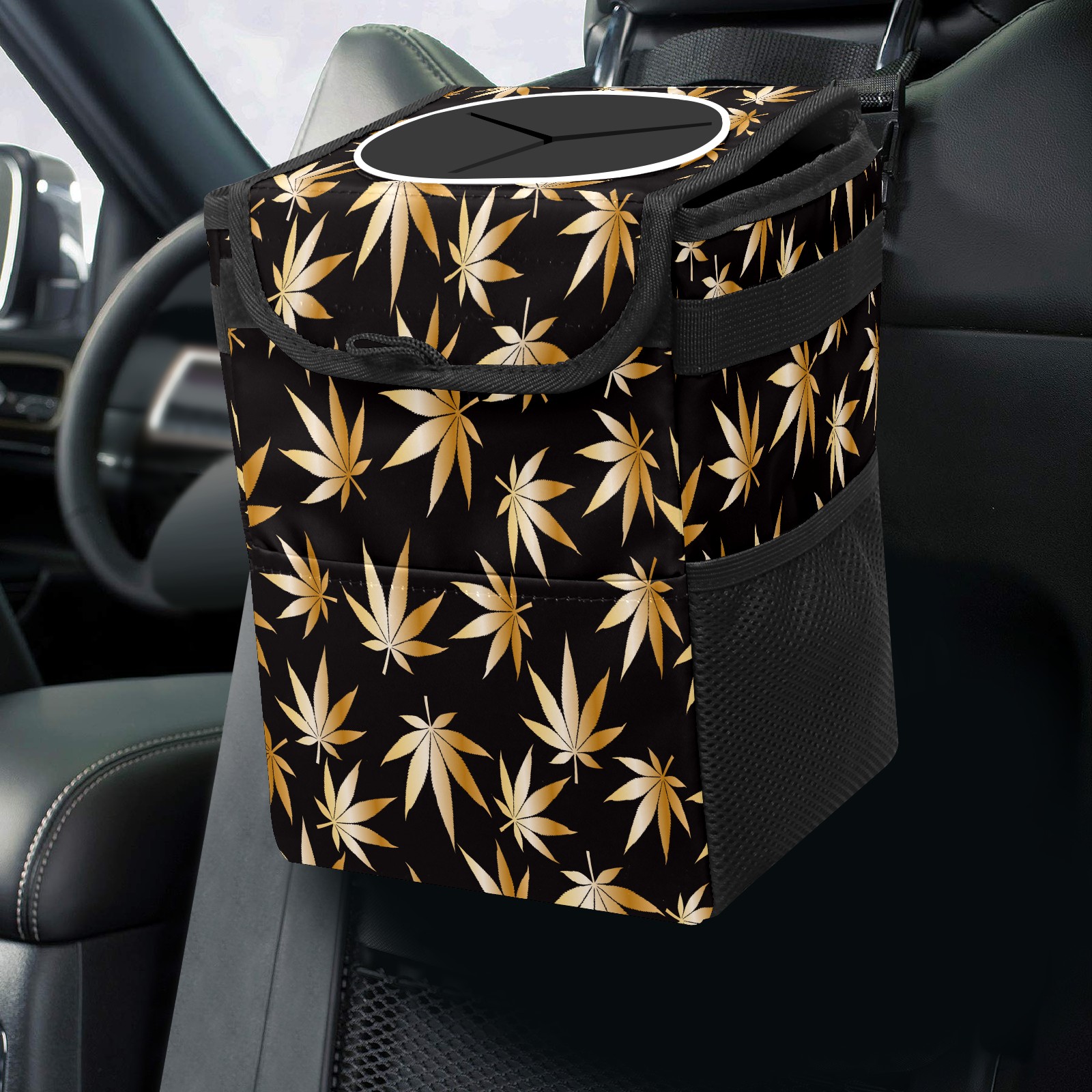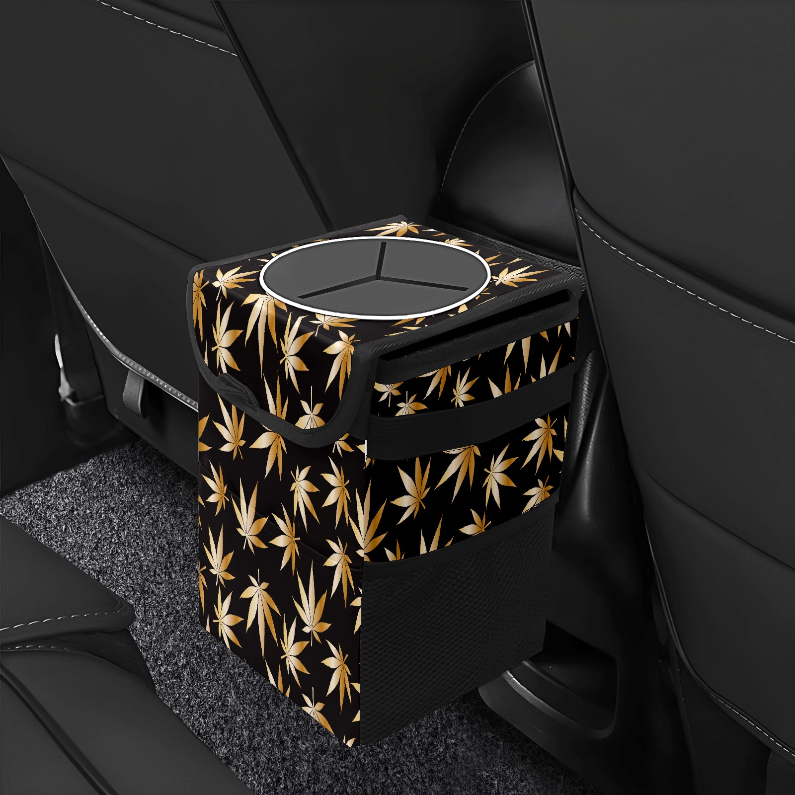 Car Garbage Can — Multi-functional, Lightweight Portable, Reusable Vehicle Trash Can, Waterproof with Sufficient Storage Capacity Gold Color Leaves