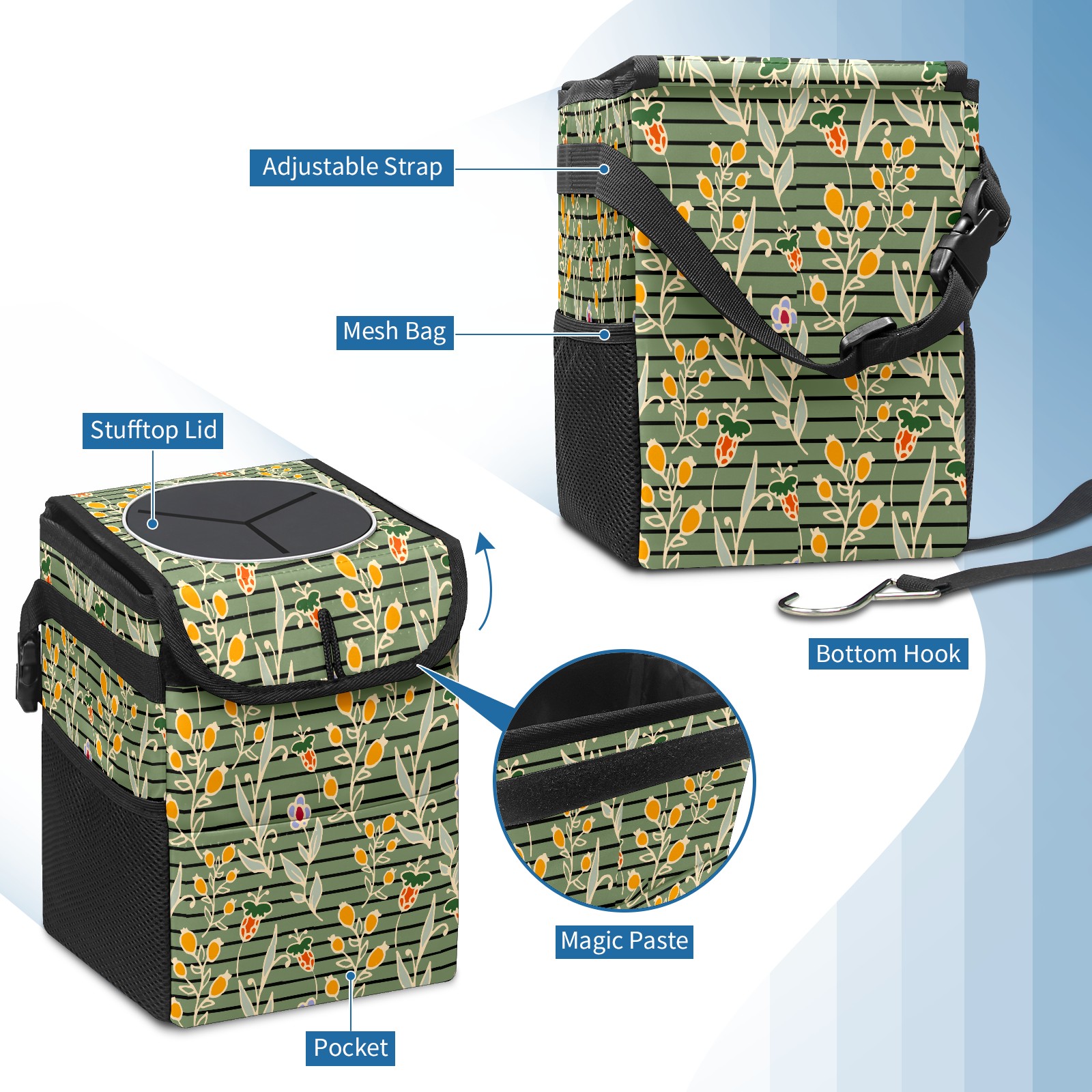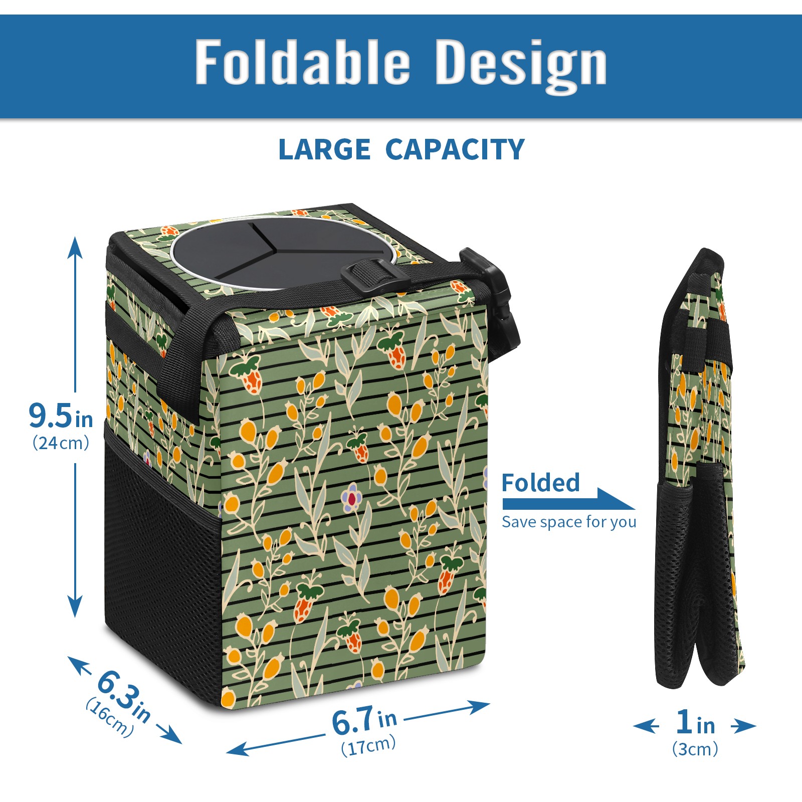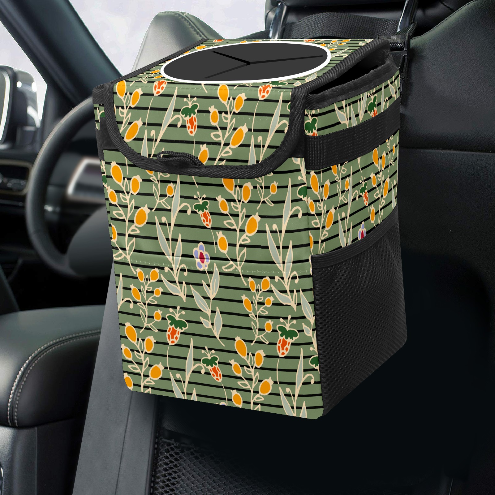 Car Garbage Can — Multi-functional, Lightweight Portable, Reusable Vehicle Trash Can, Waterproof with Sufficient Storage Capacity Floral Pattern