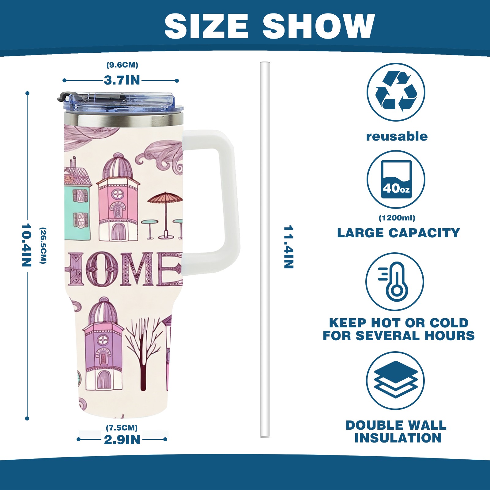 • С большой емкостью 40 унций, он обеспечивает вас гидратацией в течение всего дня, идеально подходит для воды, кофе, сока или других напитков. Эргономичный дизайн идеально вписывается в автомобильные держатели для бутылок, а прочный, герметичный колпачок предотвращает утечки во время передвижения. Путешествие. Антискользящее основание обеспечивает устойчивость, а гладкие поверхности делают уборку легкой — просто мойте вручную или кладите в посудомоечную машину (рекомендуется верхний поддон).