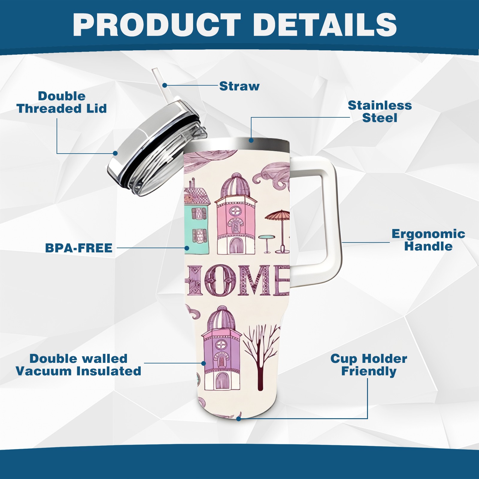 40 унций полностью напечатанный автомобильный стакан Dreamy Home Purple
