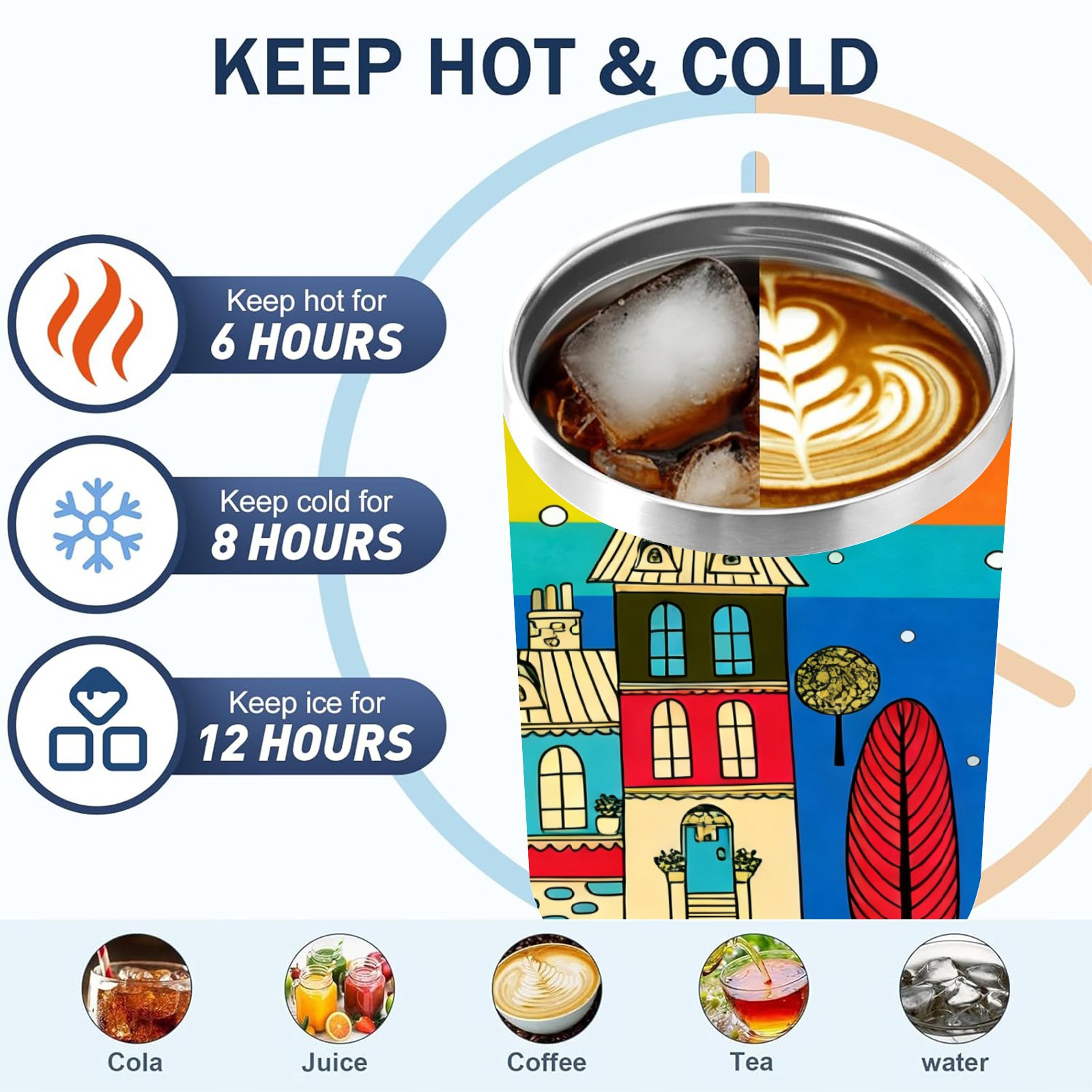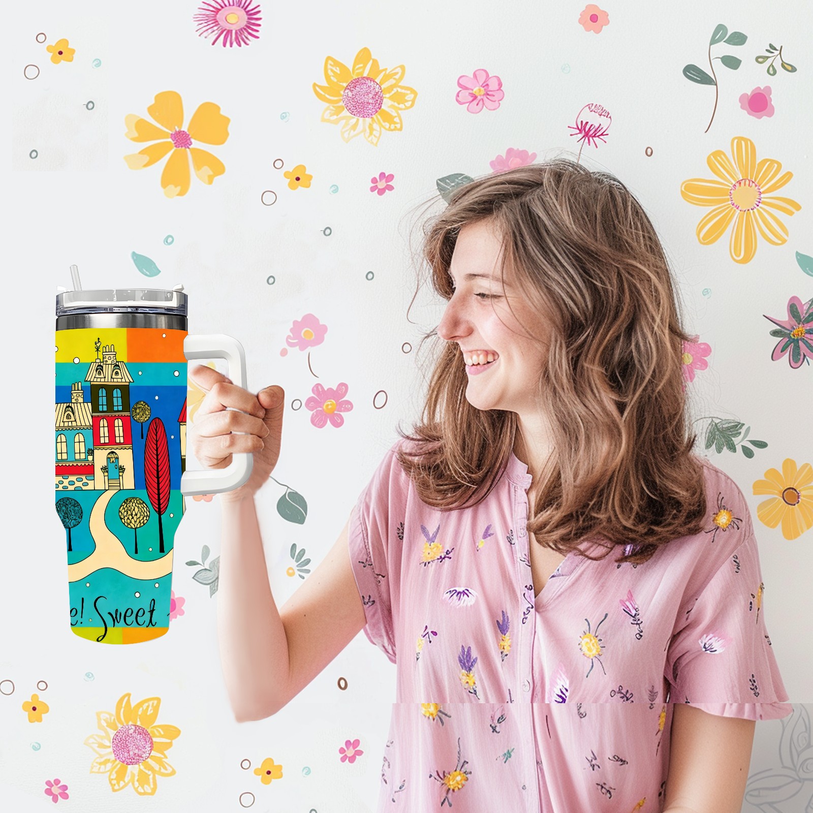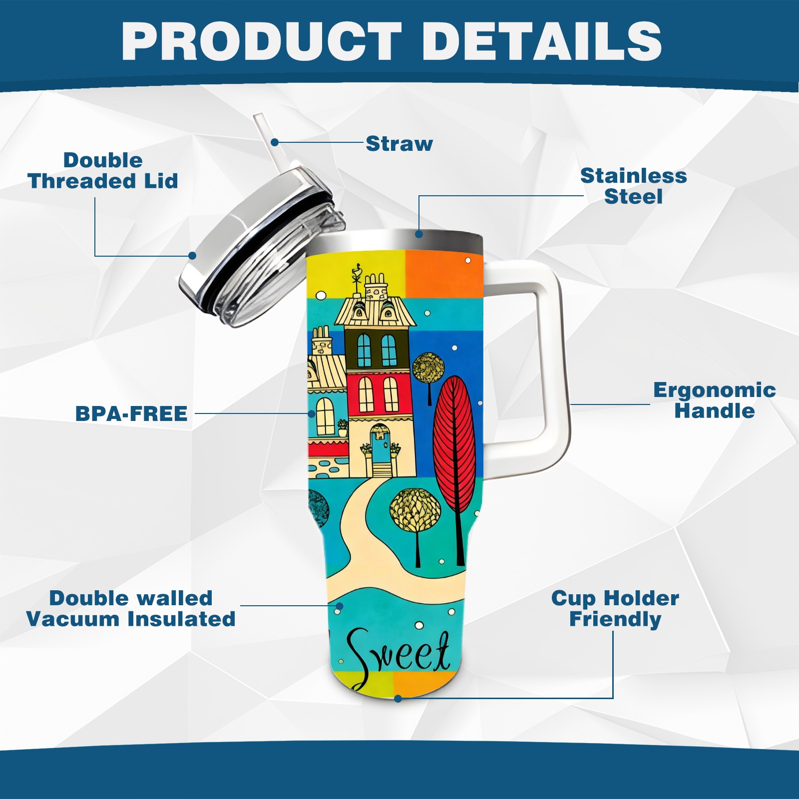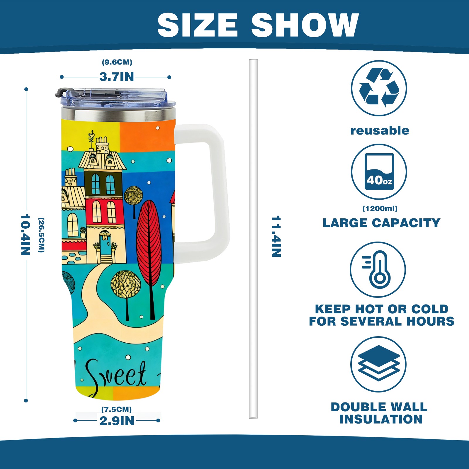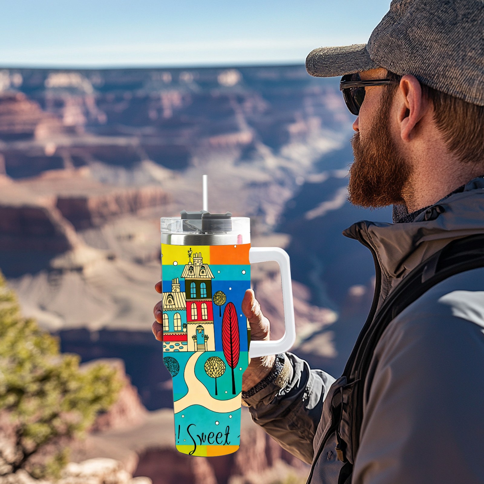 40 унций полностью напечатанный автомобильный стакан Colorful Home Multi