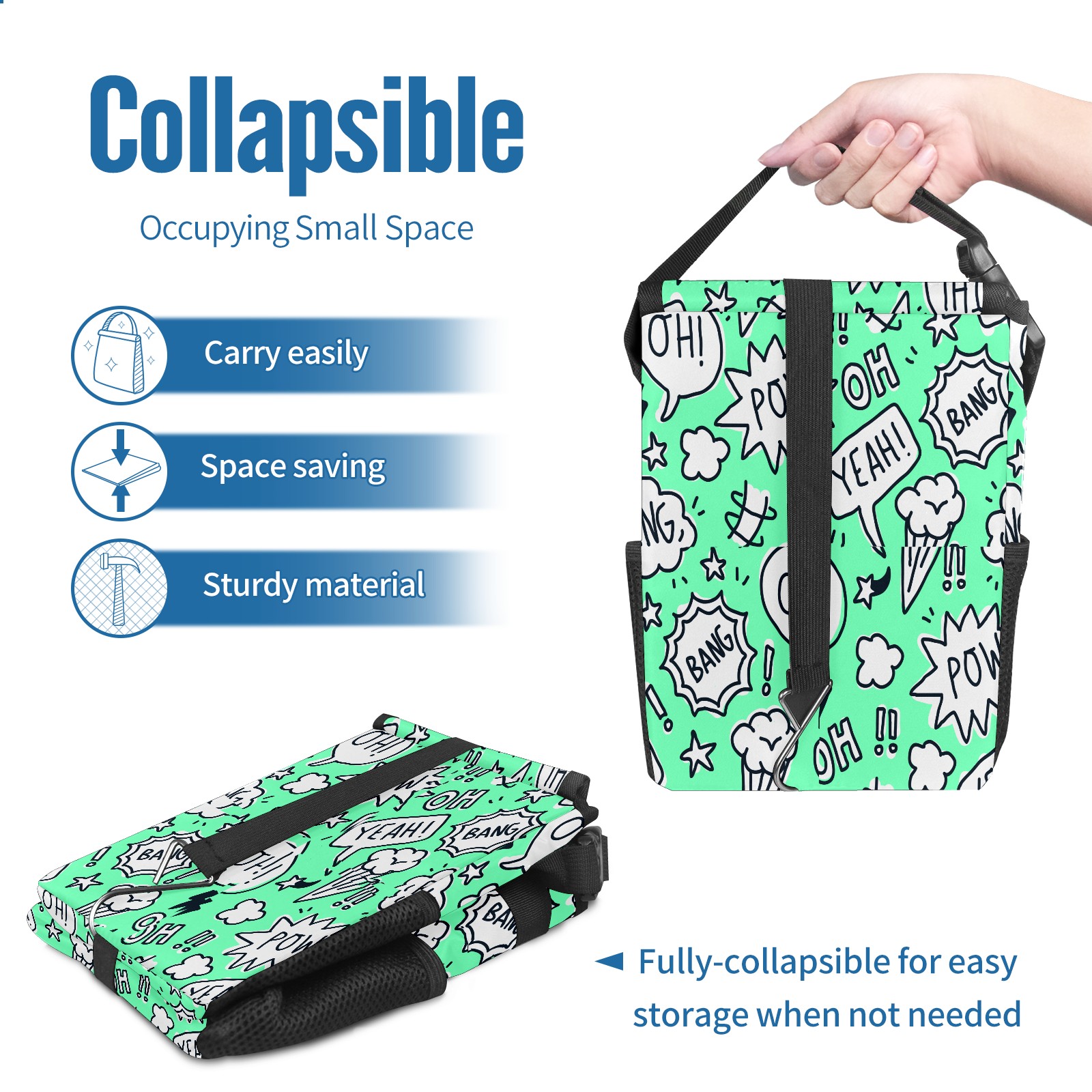 • <p>Keep your car neat with this practical car trash can—built for durability, versatility, and on-the-go convenience! Crafted from quality twill fabric with a waterproof lining, it prevents leaks, keeping seats/floors clean. Clean easily: empty directly or secure a disposable bag with side clips. Adjustable pull cord fits floor, seat, or headrest. 9.5x6.3x6.7 inches, ample space for daily trash, folds flat for storage. More than a trash can, it doubles as a storage bag for cups, toys, docs, and small gadgets—must-have car interior accessory. Installs in seconds on seats, console, or gear shift; adjustable straps keep it stable, no slipping on bumpy roads. Perfect gift for new car owners!</p>