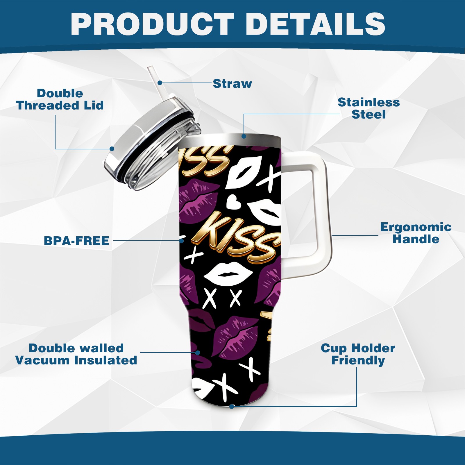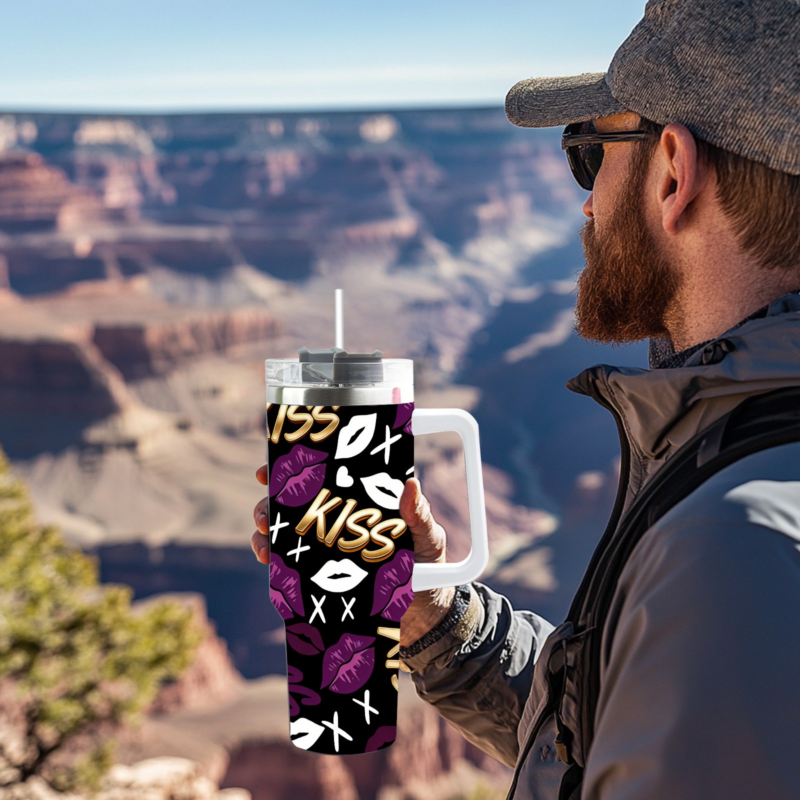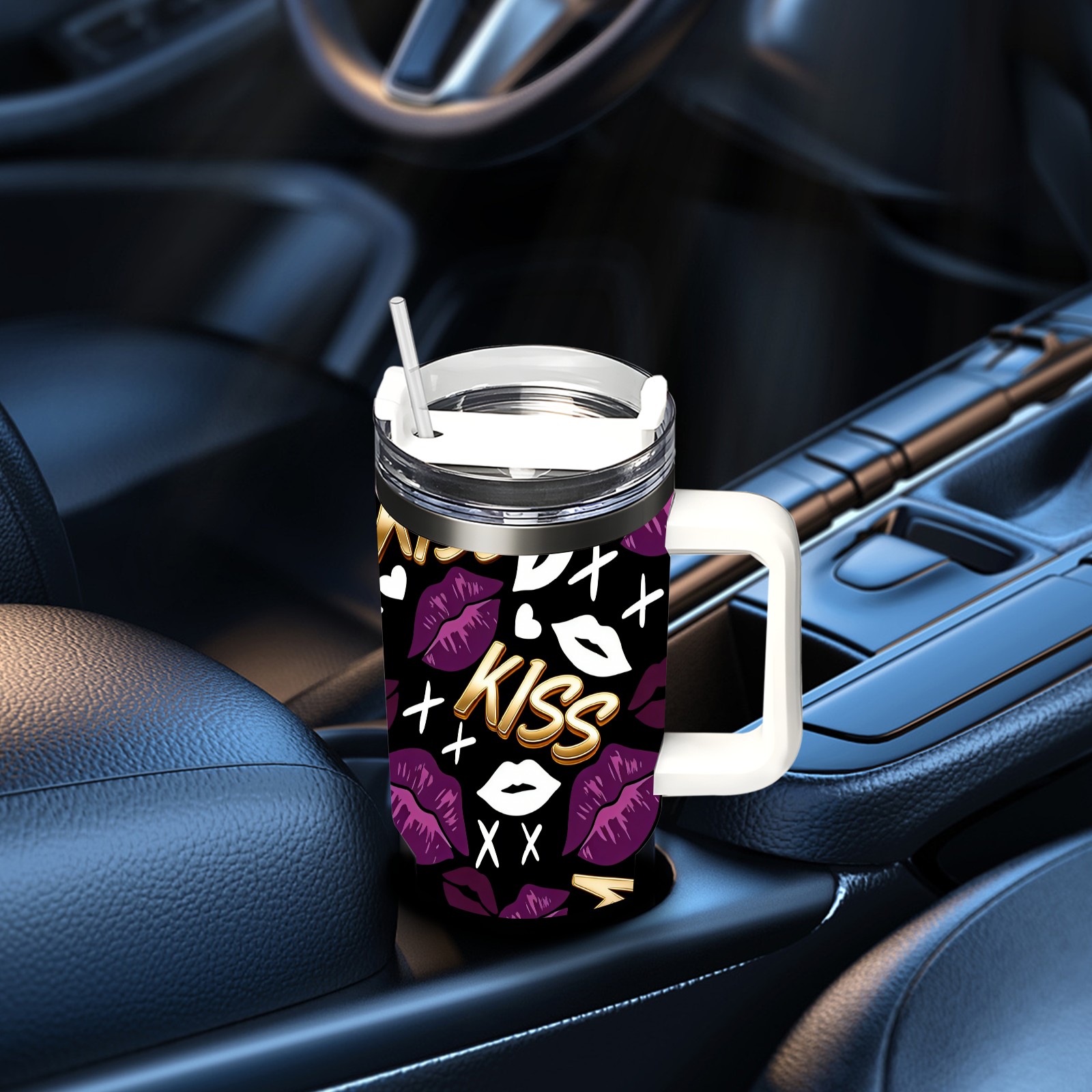 40 унций полностью напечатанный автомобильный стакан Fiery Lips Purple