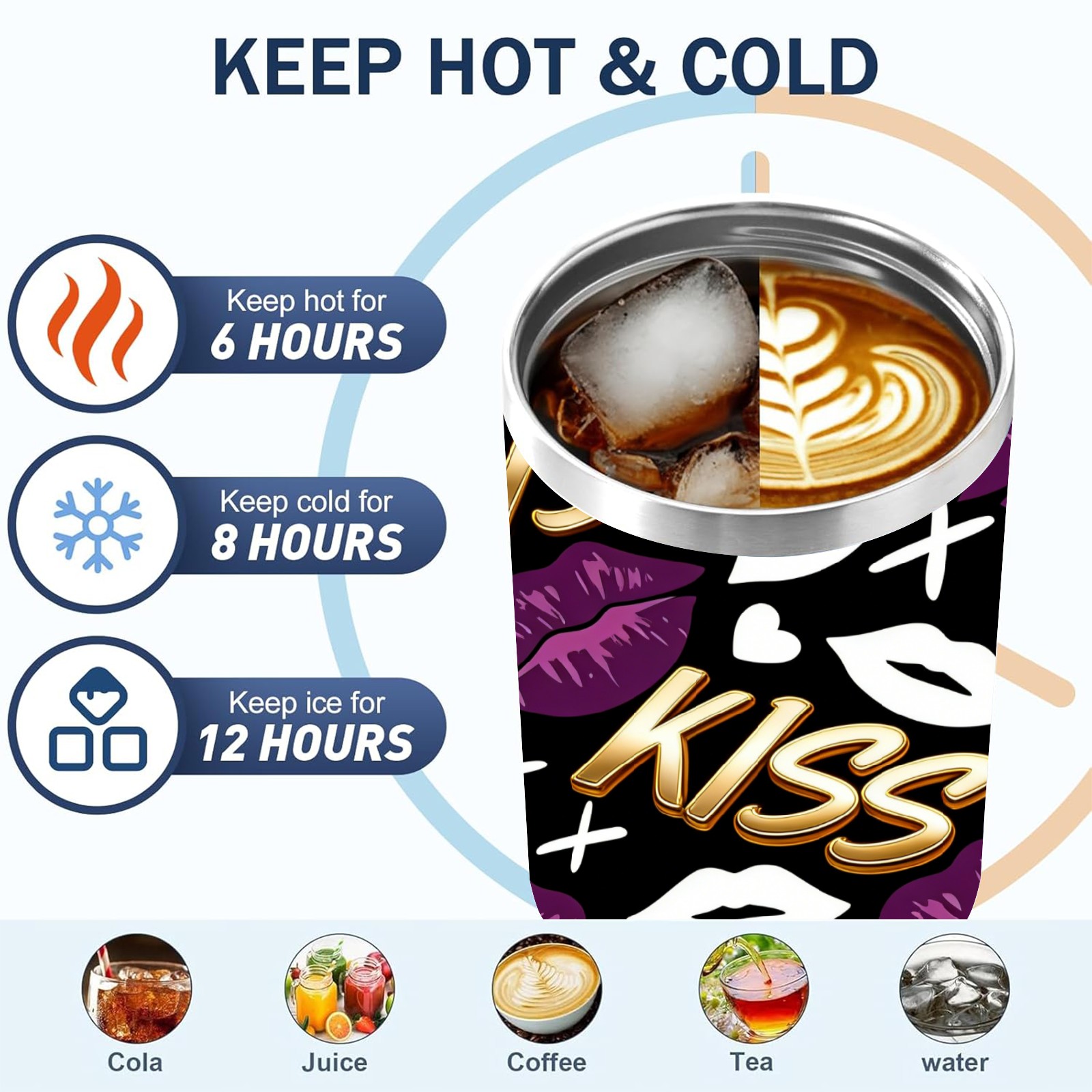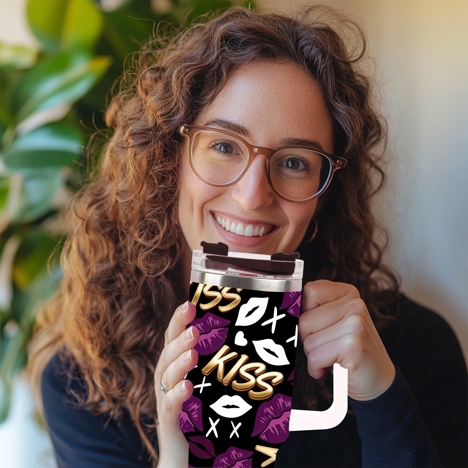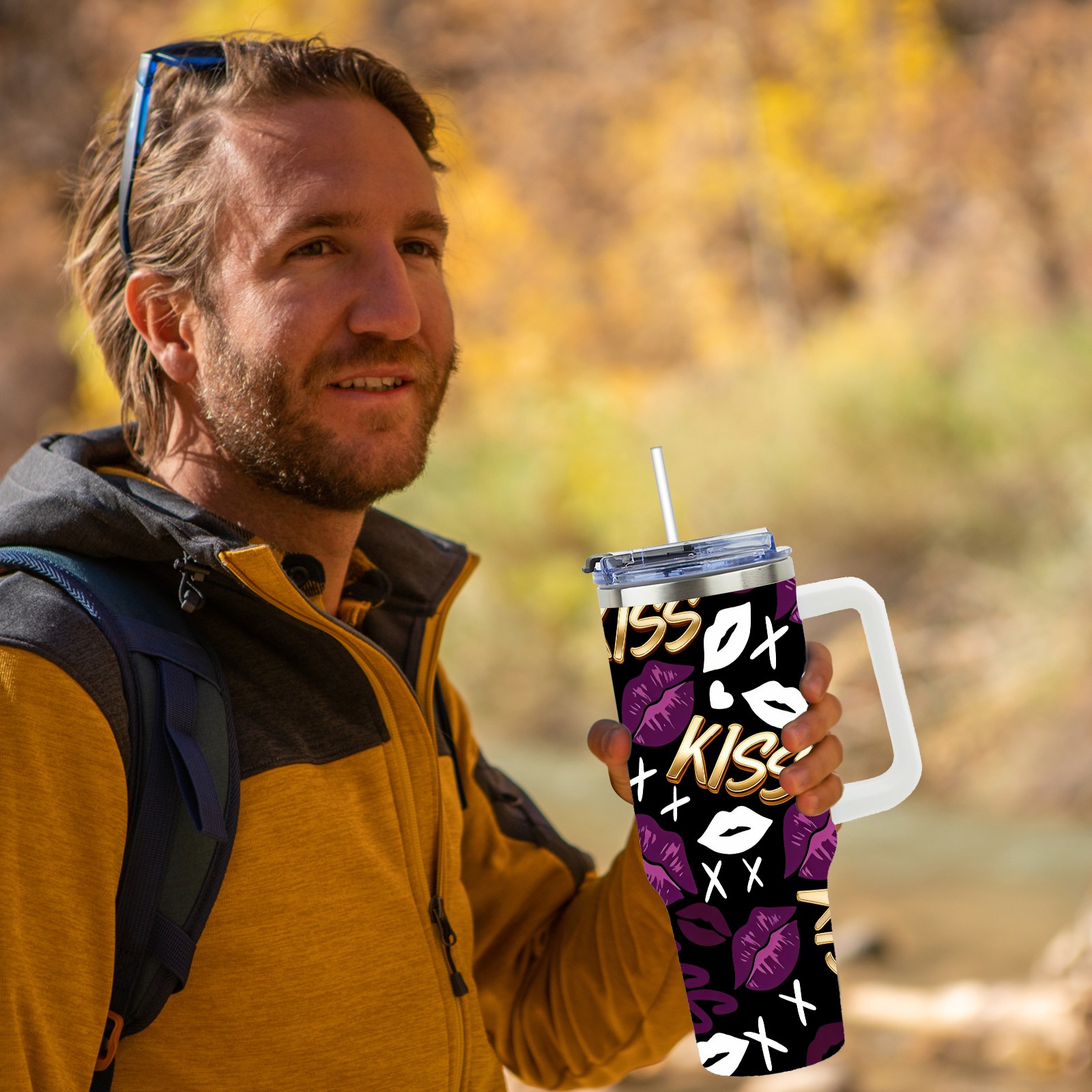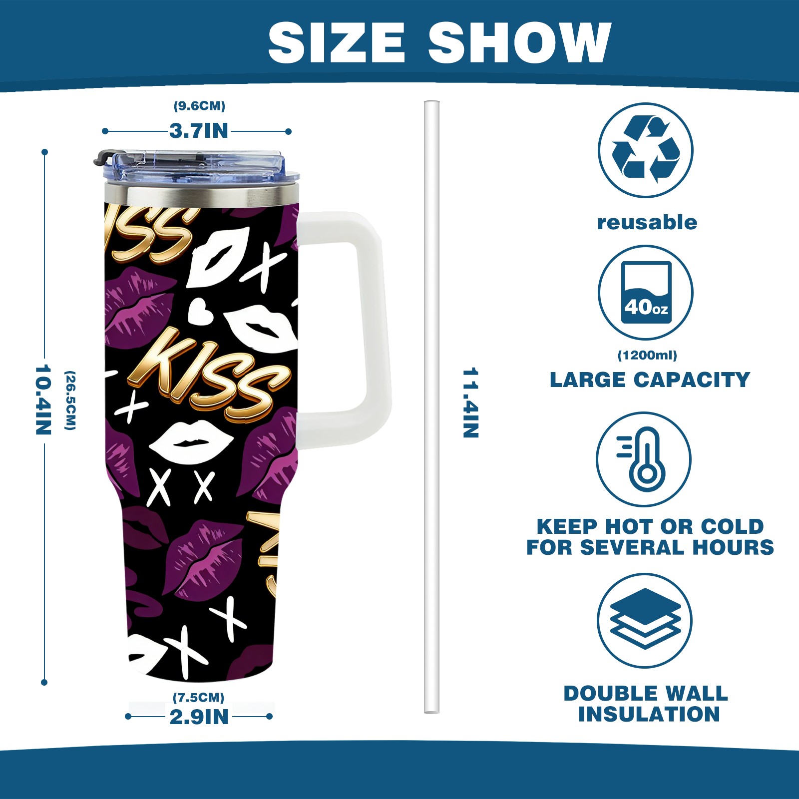 40 унций полностью напечатанный автомобильный стакан Fiery Lips Purple