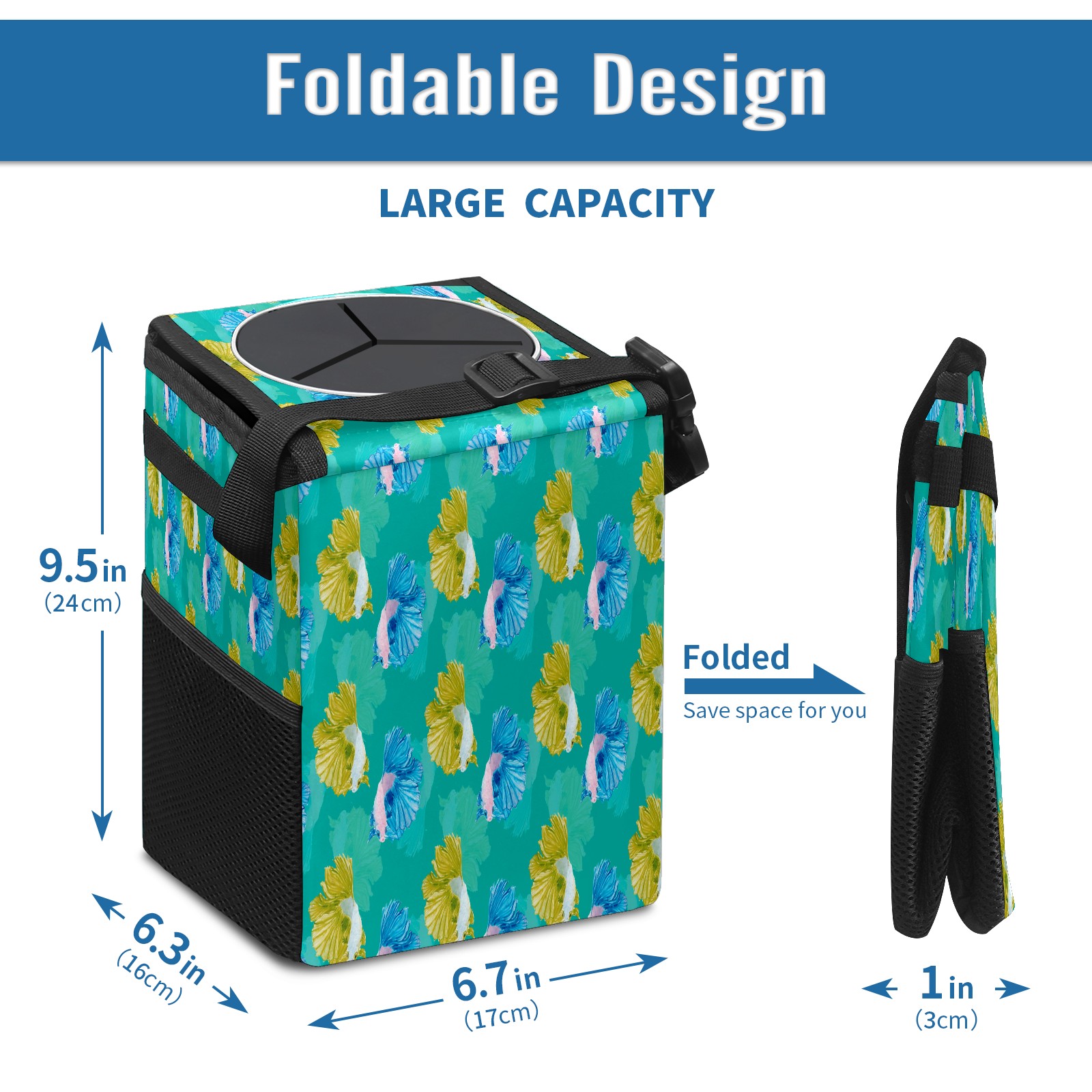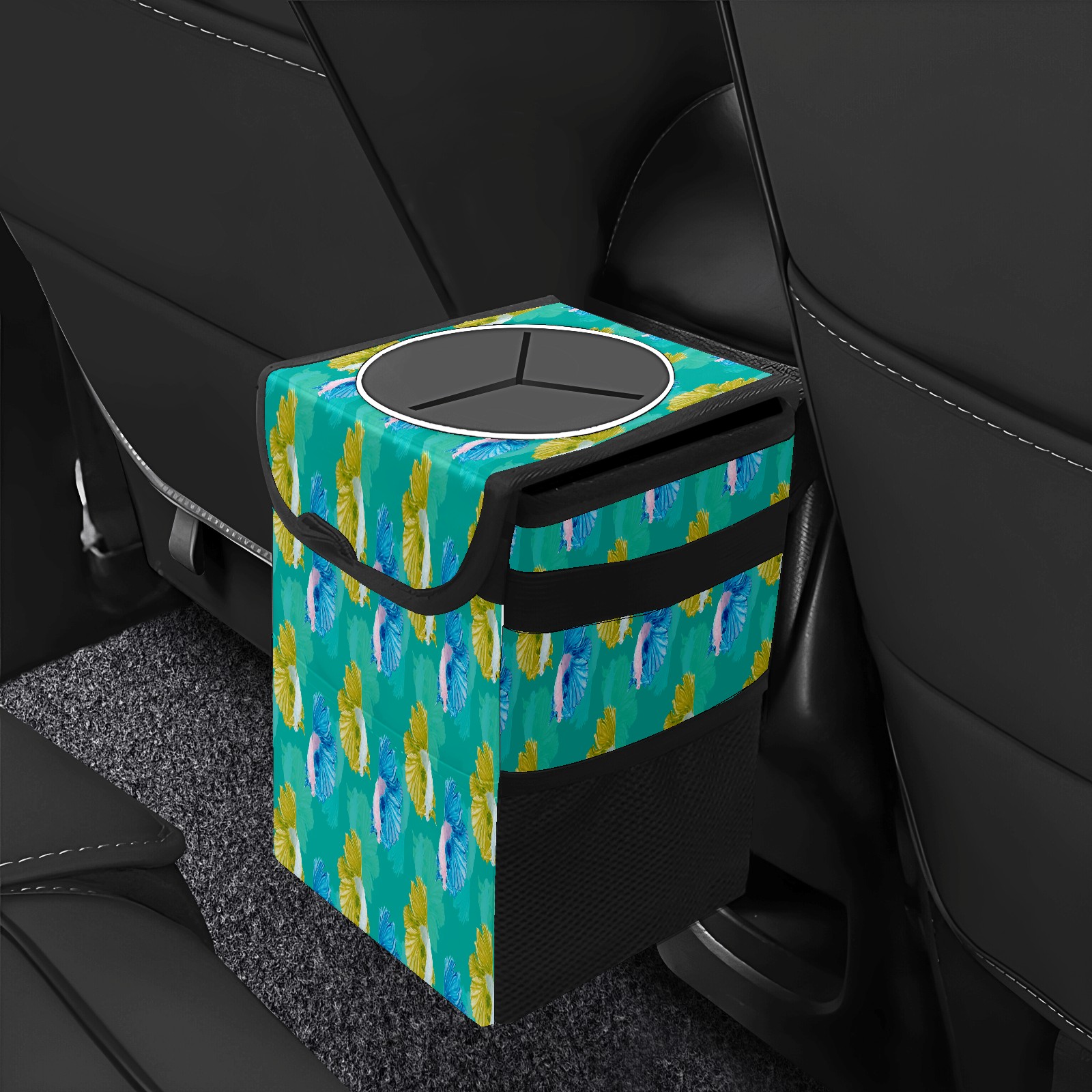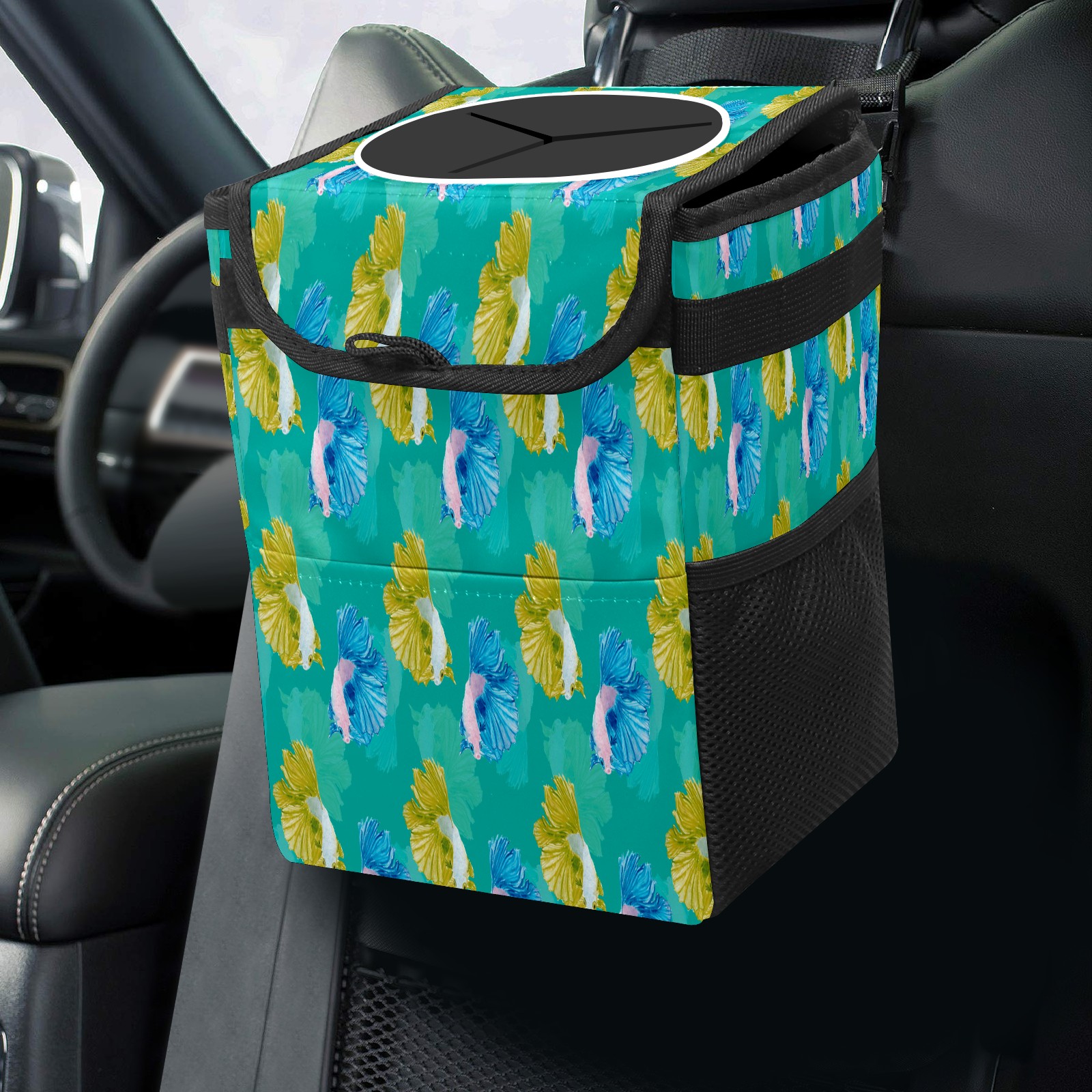 Car Garbage Can — Multi-functional, Lightweight Portable, Reusable Vehicle Trash Can, Waterproof with Sufficient Storage Capacity Yellow And Blue Fish