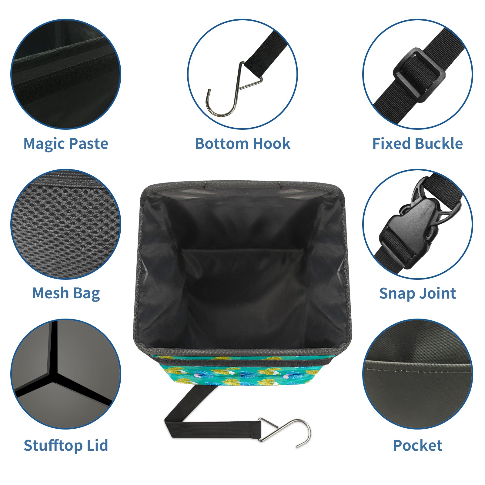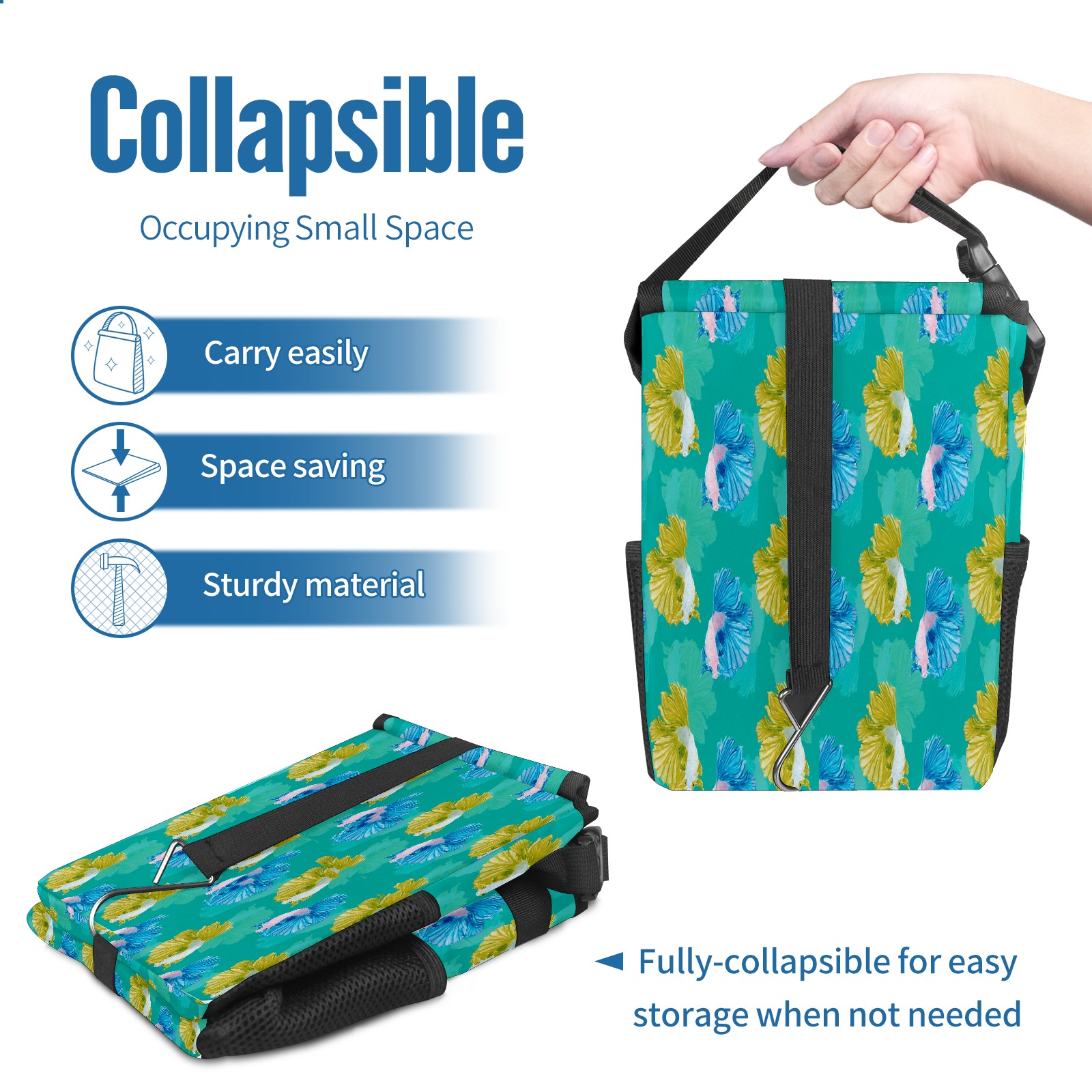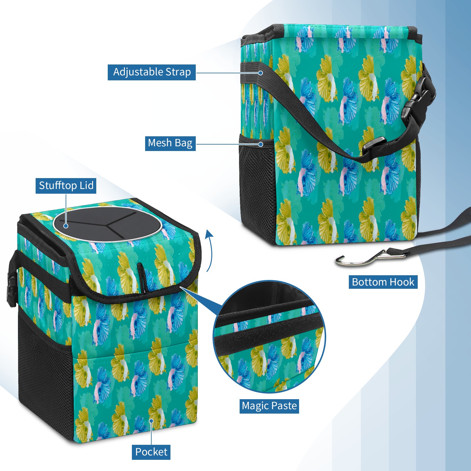 Car Garbage Can — Multi-functional, Lightweight Portable, Reusable Vehicle Trash Can, Waterproof with Sufficient Storage Capacity Yellow And Blue Fish