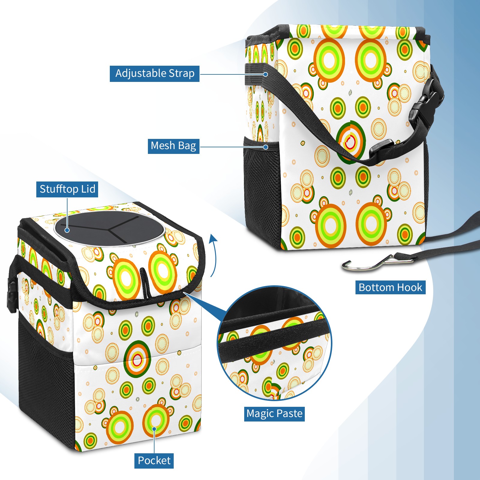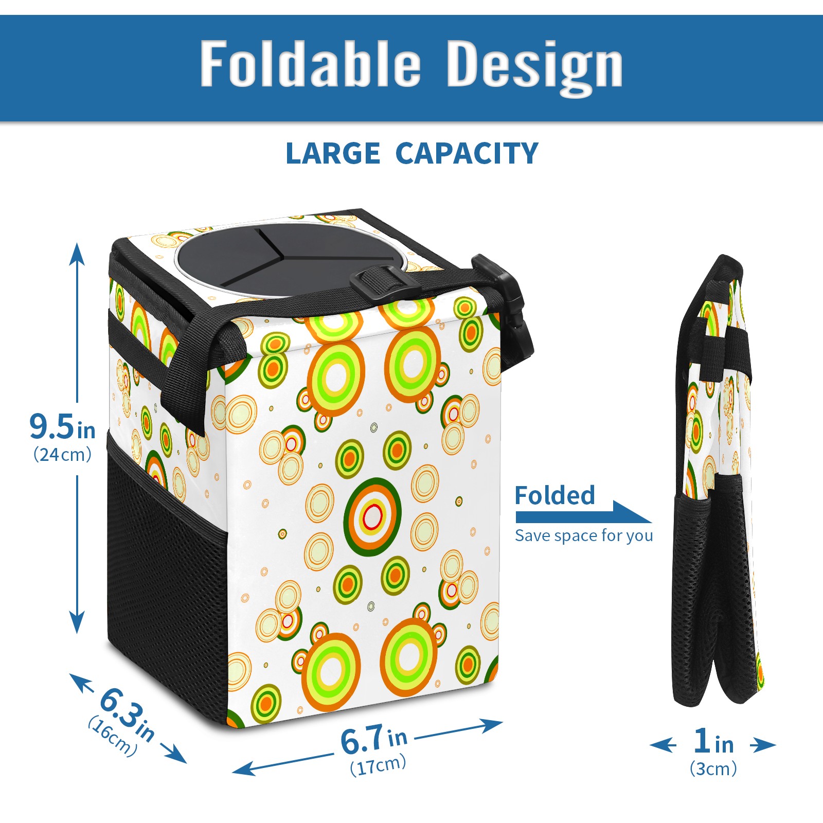 Car Garbage Can — Multi-functional, Lightweight Portable, Reusable Vehicle Trash Can, Waterproof with Sufficient Storage Capacity Symmetrical Dot