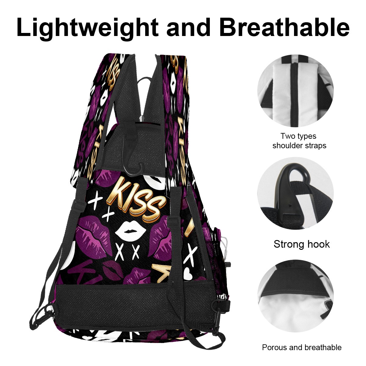 Counullo Pickleball Bag for Women & Men – Lightweight Sports Backpack with Paddle Compartments, Dual Carry Modes, Detachable Zippered Strap, Fiery Lips Purple | Great Gift for Players