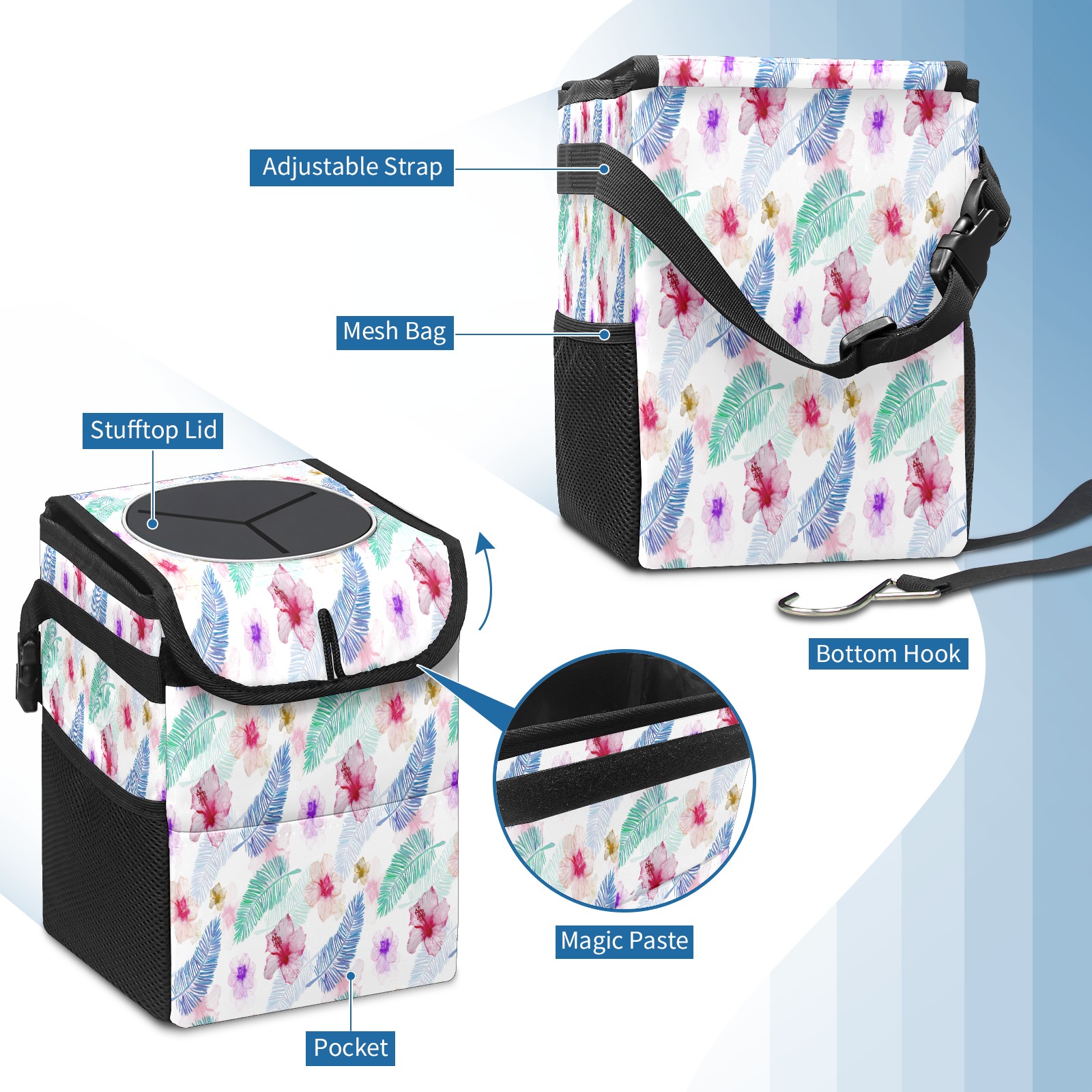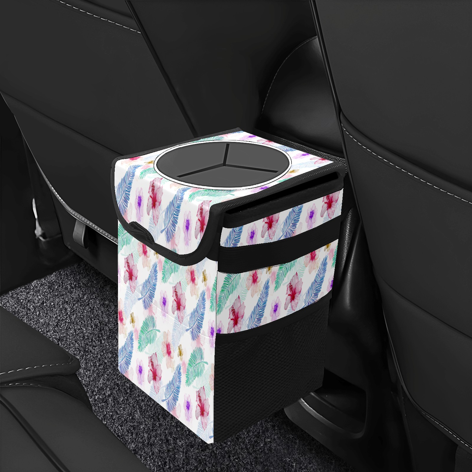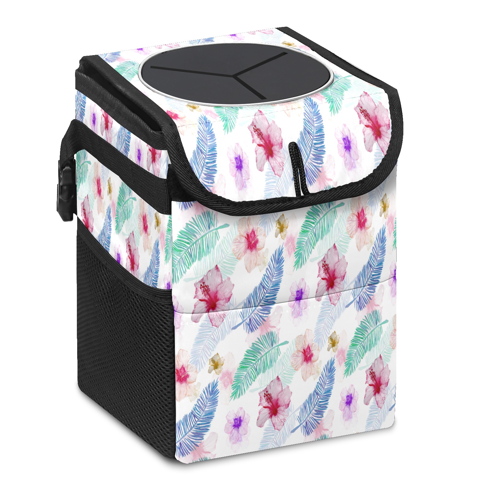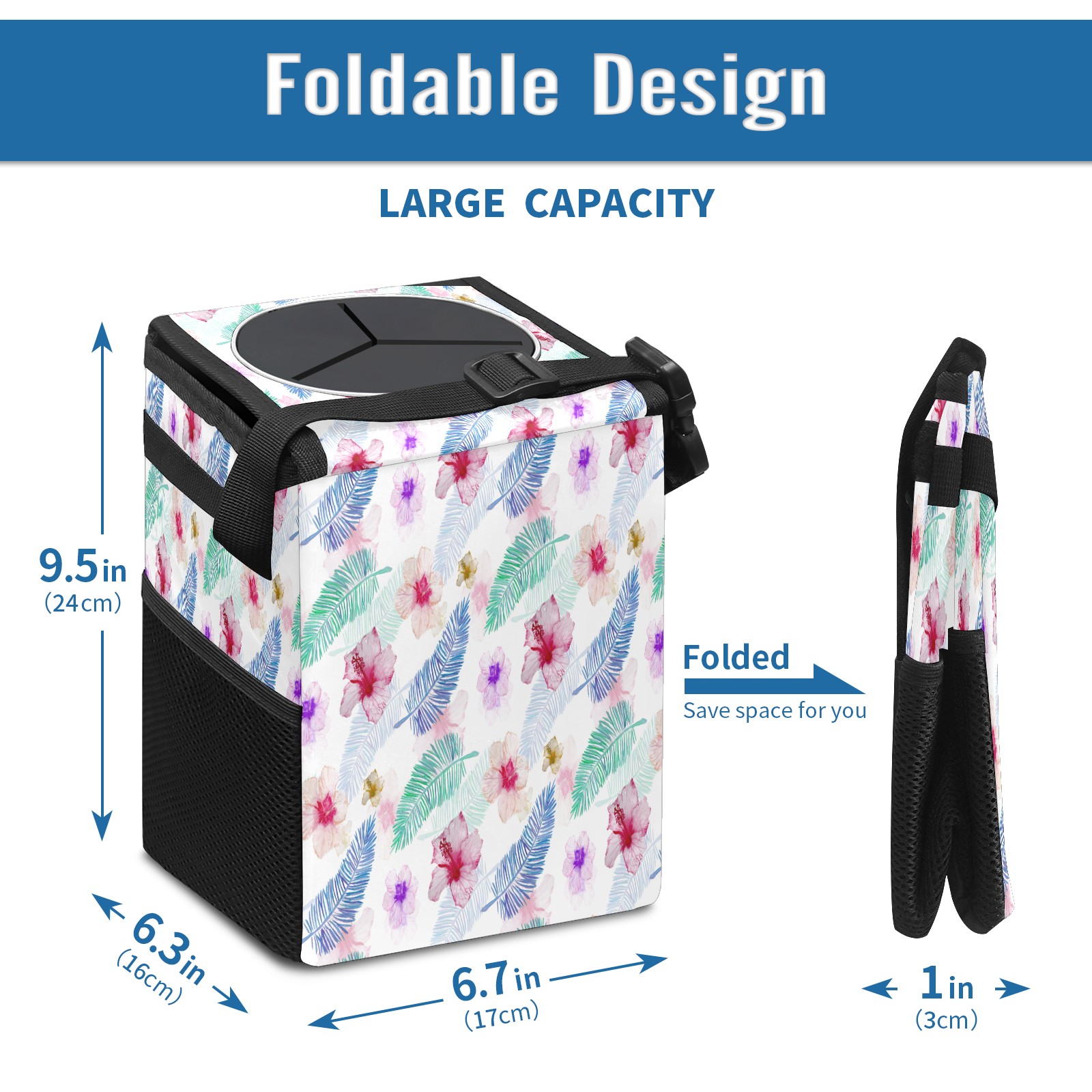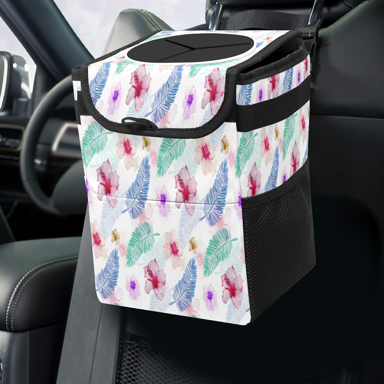 Car Garbage Can — Multi-functional, Lightweight Portable, Reusable Vehicle Trash Can, Waterproof with Sufficient Storage Capacity Summer Flowers Leaf