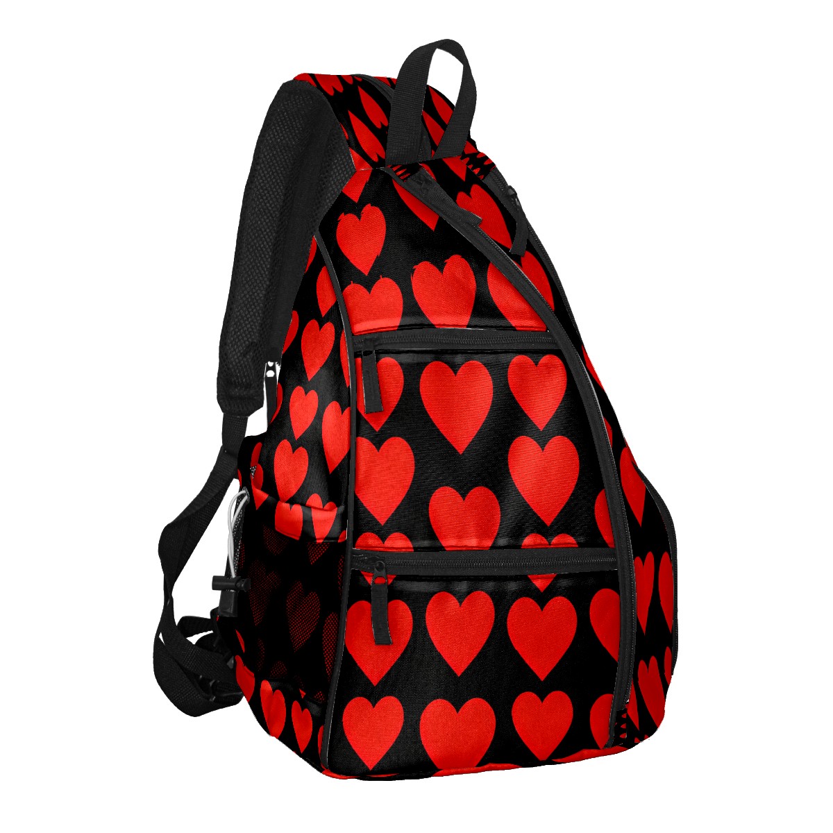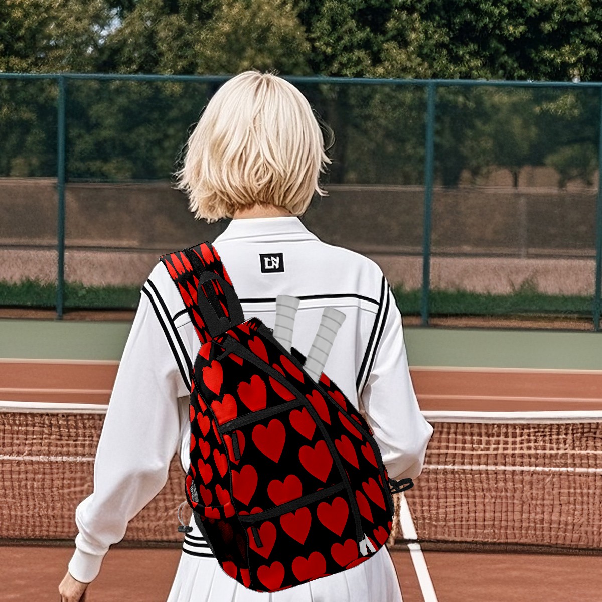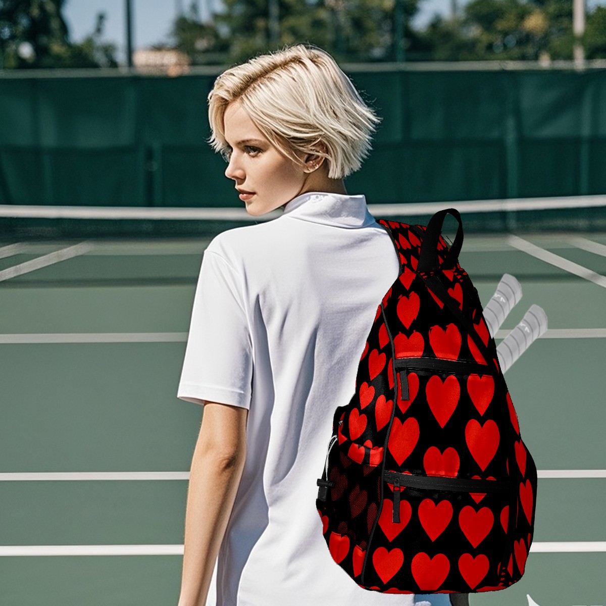 Counullo Pickleball Bag for Women & Men – Lightweight Sports Backpack with Paddle Compartments, Dual Carry Modes, Detachable Zippered Strap, Intense Hearts Red | Great Gift for Players