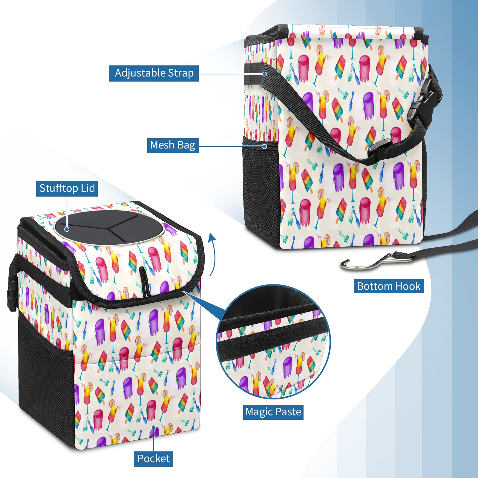 Car Garbage Can — Multi-functional, Lightweight Portable, Reusable Vehicle Trash Can, Waterproof with Sufficient Storage Capacity Summer Beach