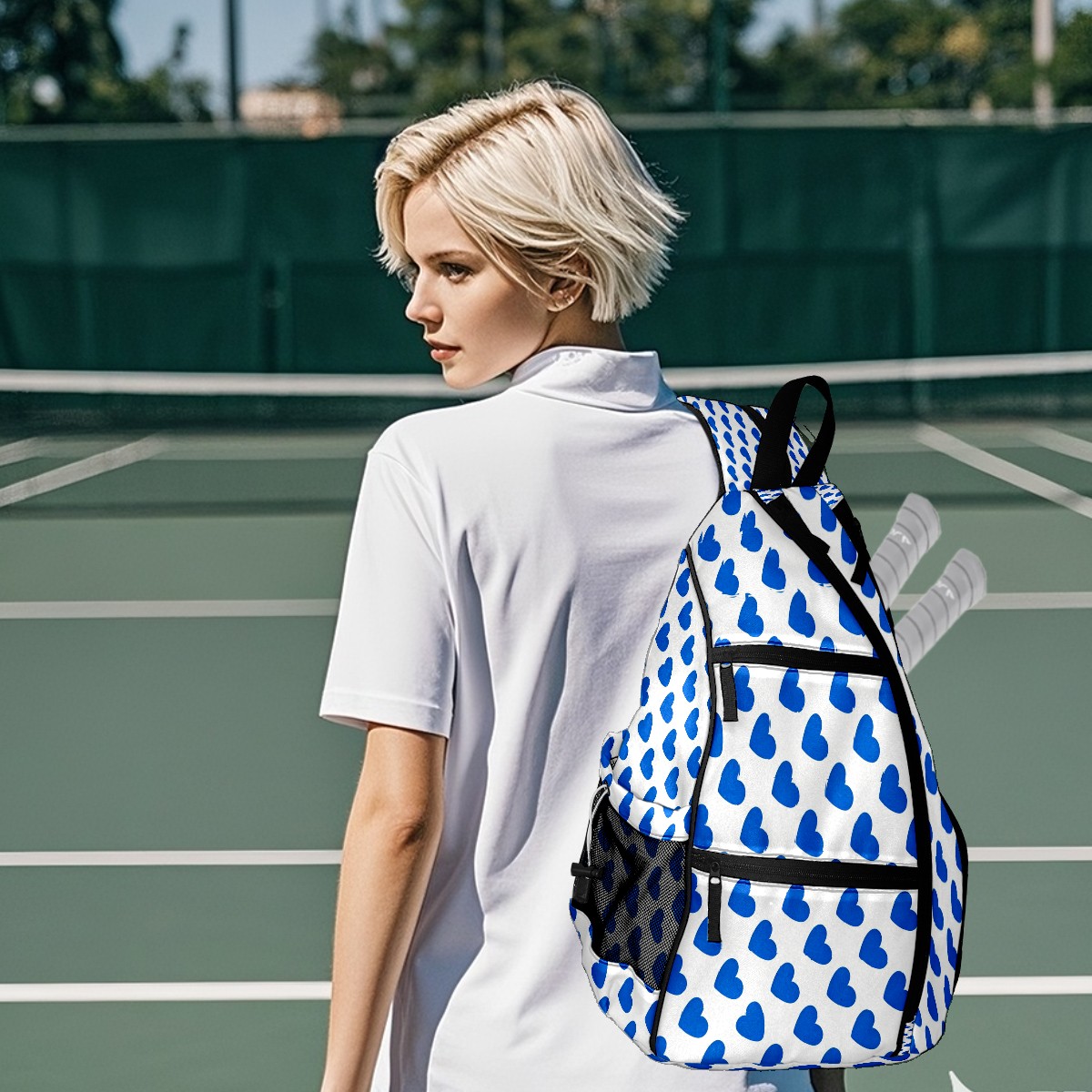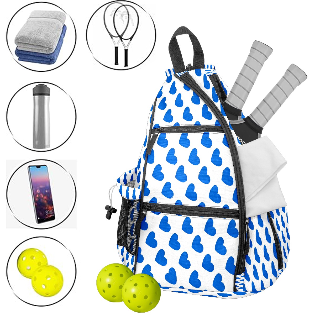 Counullo Pickleball Bag for Women & Men – Lightweight Sports Backpack with Paddle Compartments, Dual Carry Modes, Detachable Zippered Strap, Fresh Hearts Blue | Great Gift for Players