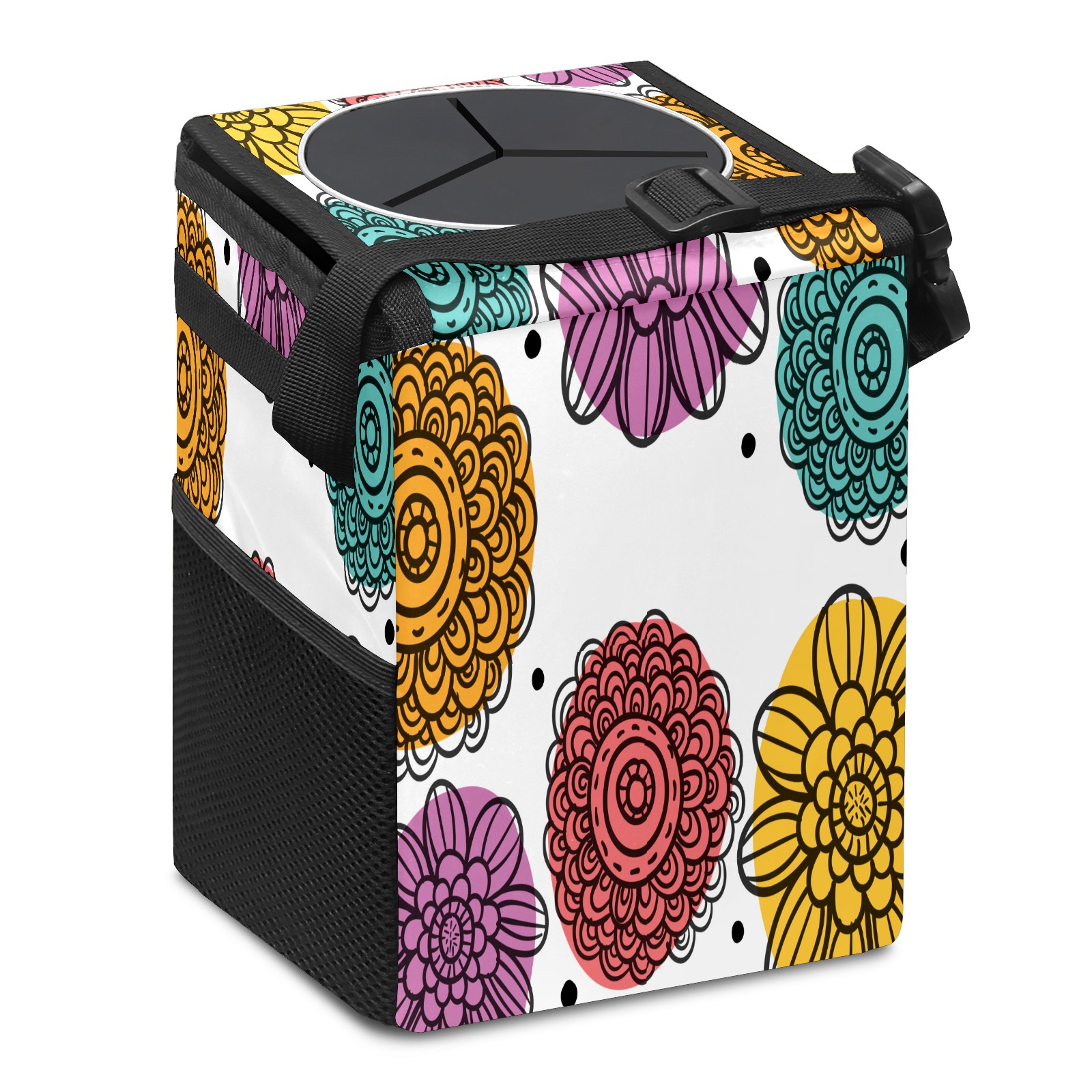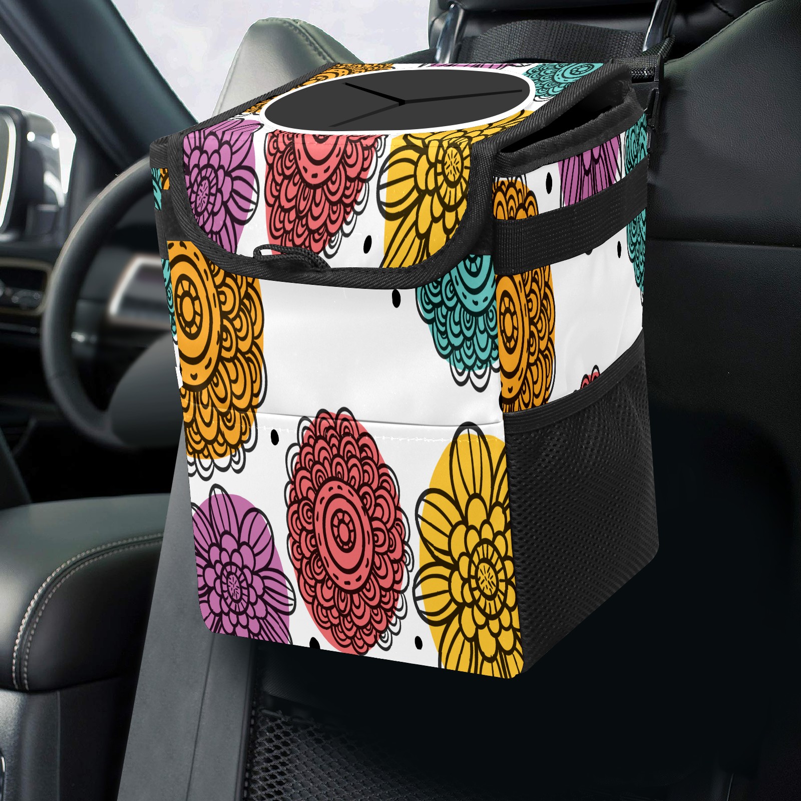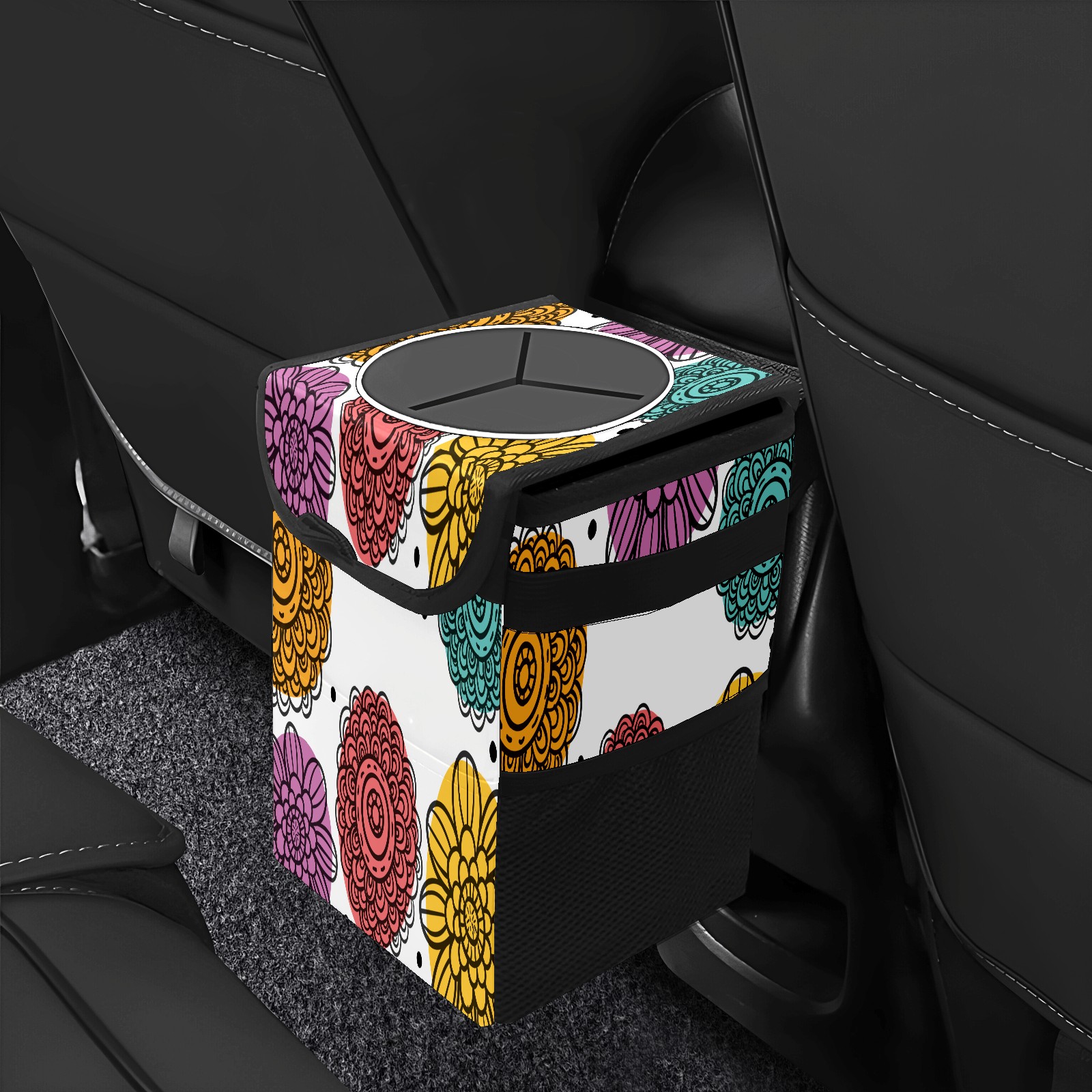 Car Garbage Can — Multi-functional, Lightweight Portable, Reusable Vehicle Trash Can, Waterproof with Sufficient Storage Capacity Spring Doodle Flowers