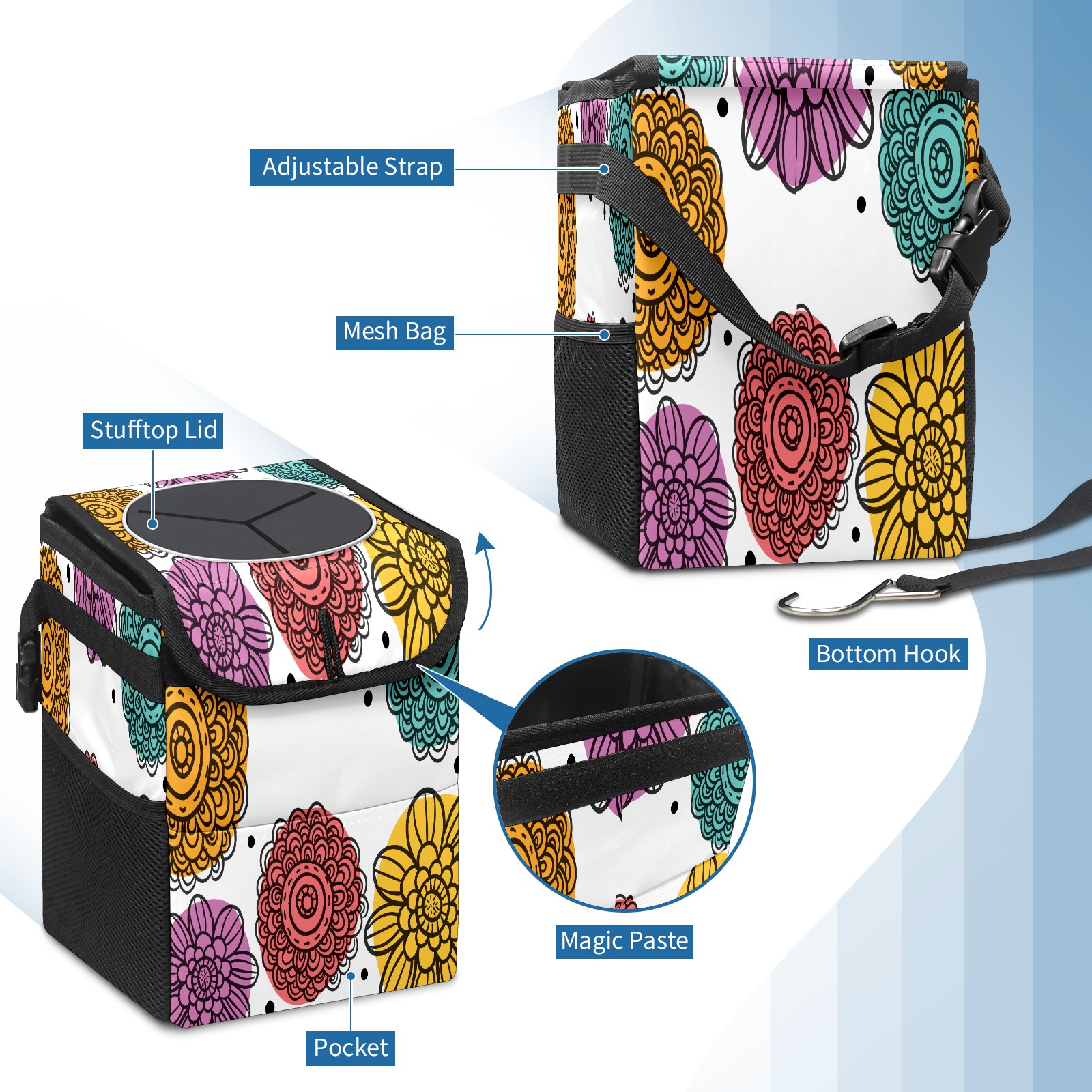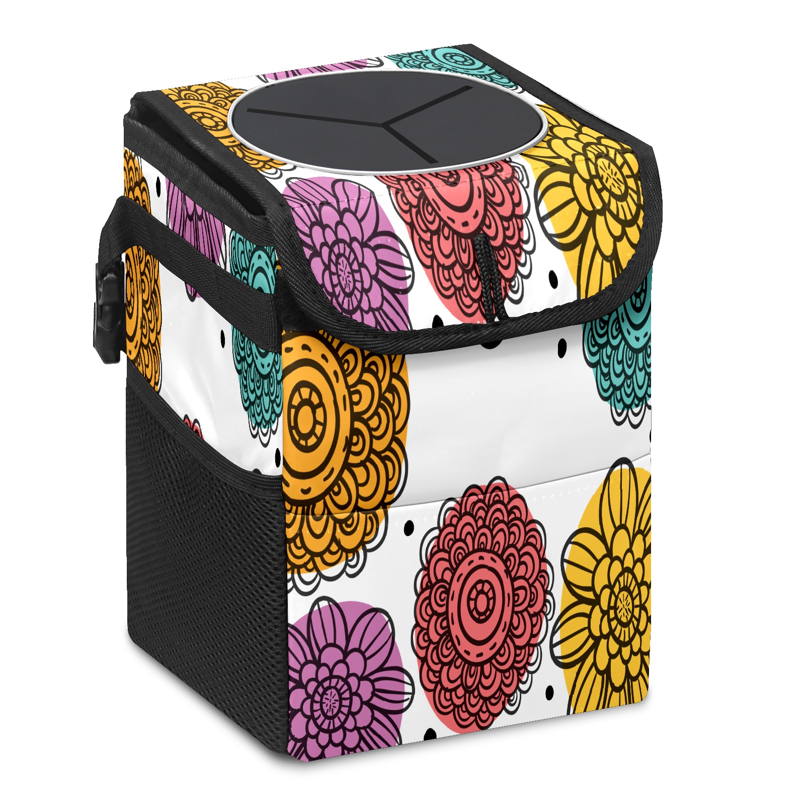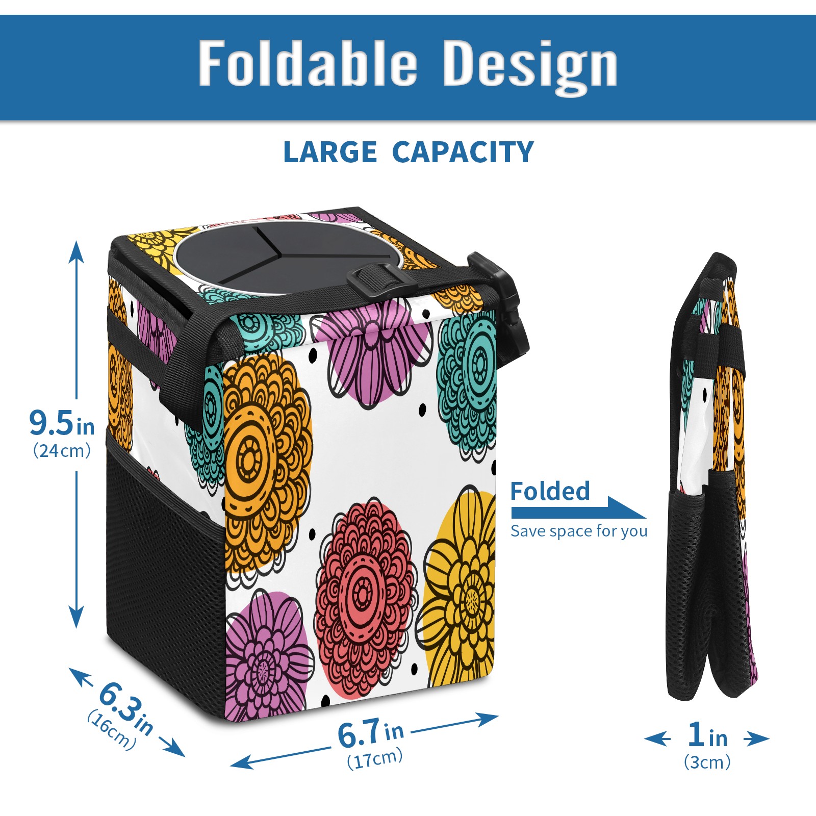 Car Garbage Can — Multi-functional, Lightweight Portable, Reusable Vehicle Trash Can, Waterproof with Sufficient Storage Capacity Spring Doodle Flowers