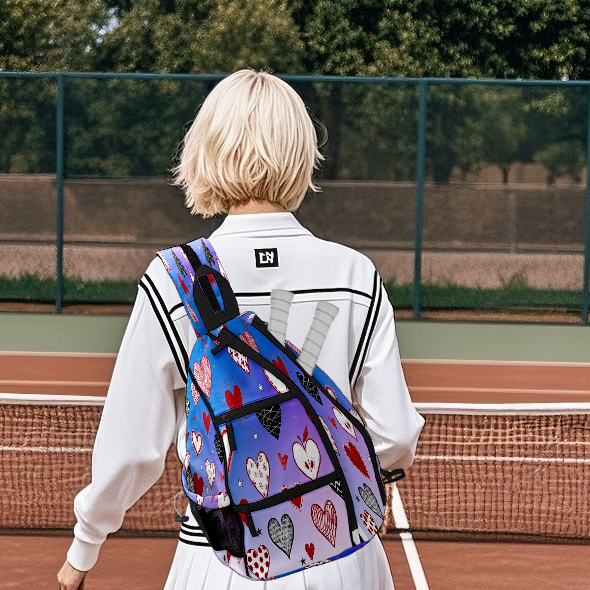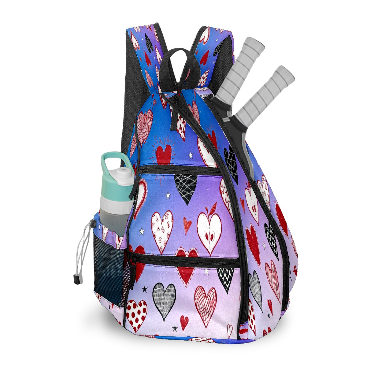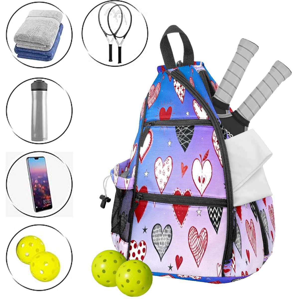 Counullo Pickleball Bag for Women & Men – Lightweight Sports Backpack with Paddle Compartments, Dual Carry Modes, Detachable Zippered Strap, Dreamy Hearts Purple | Great Gift for Players