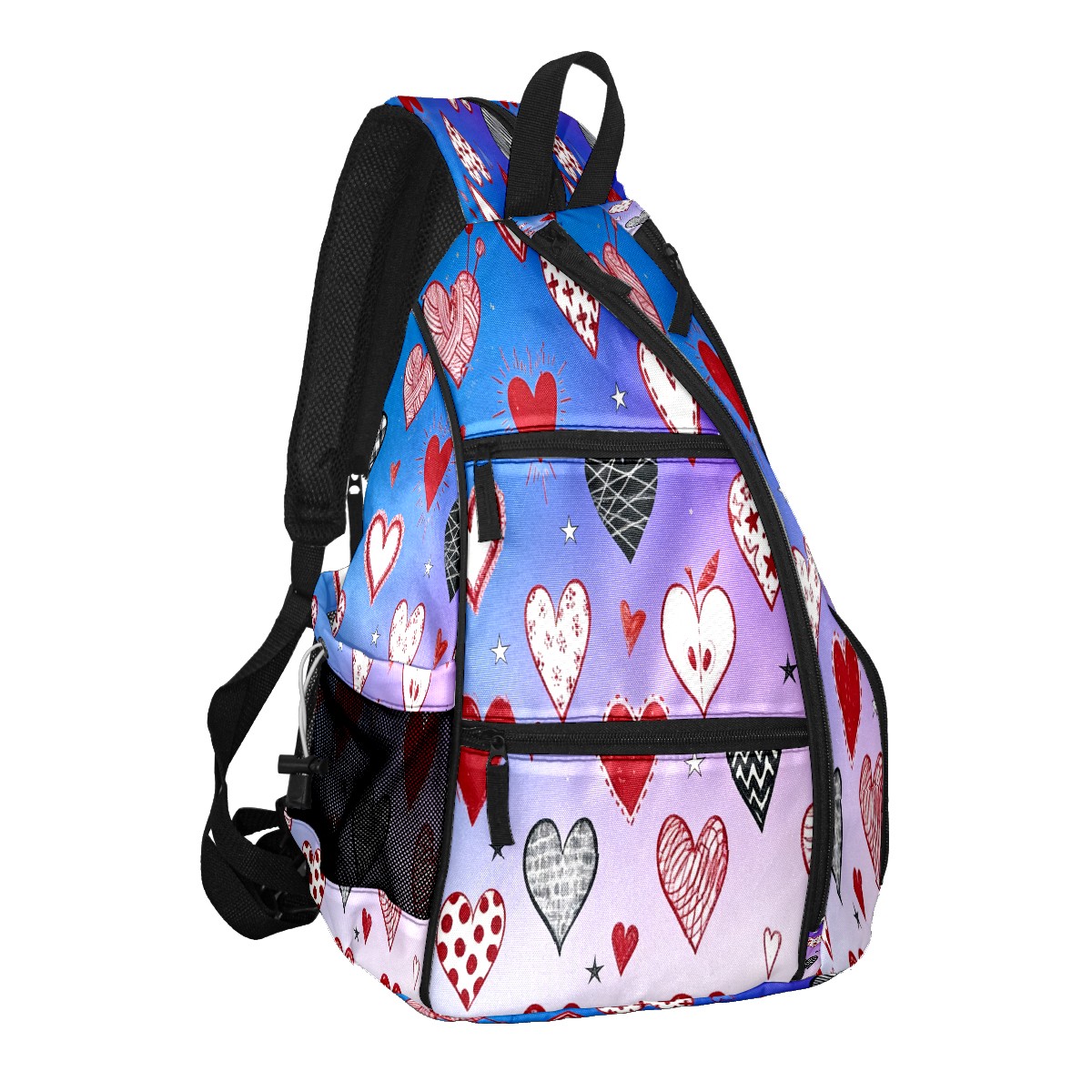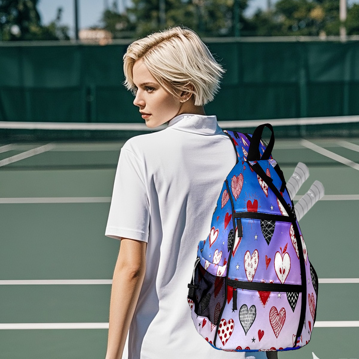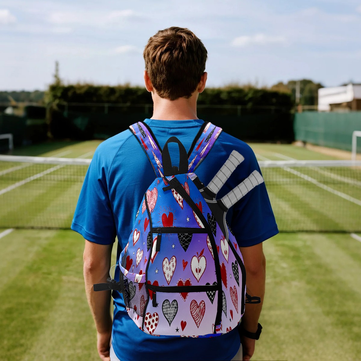 Counullo Pickleball Bag for Women & Men – Lightweight Sports Backpack with Paddle Compartments, Dual Carry Modes, Detachable Zippered Strap, Dreamy Hearts Purple | Great Gift for Players