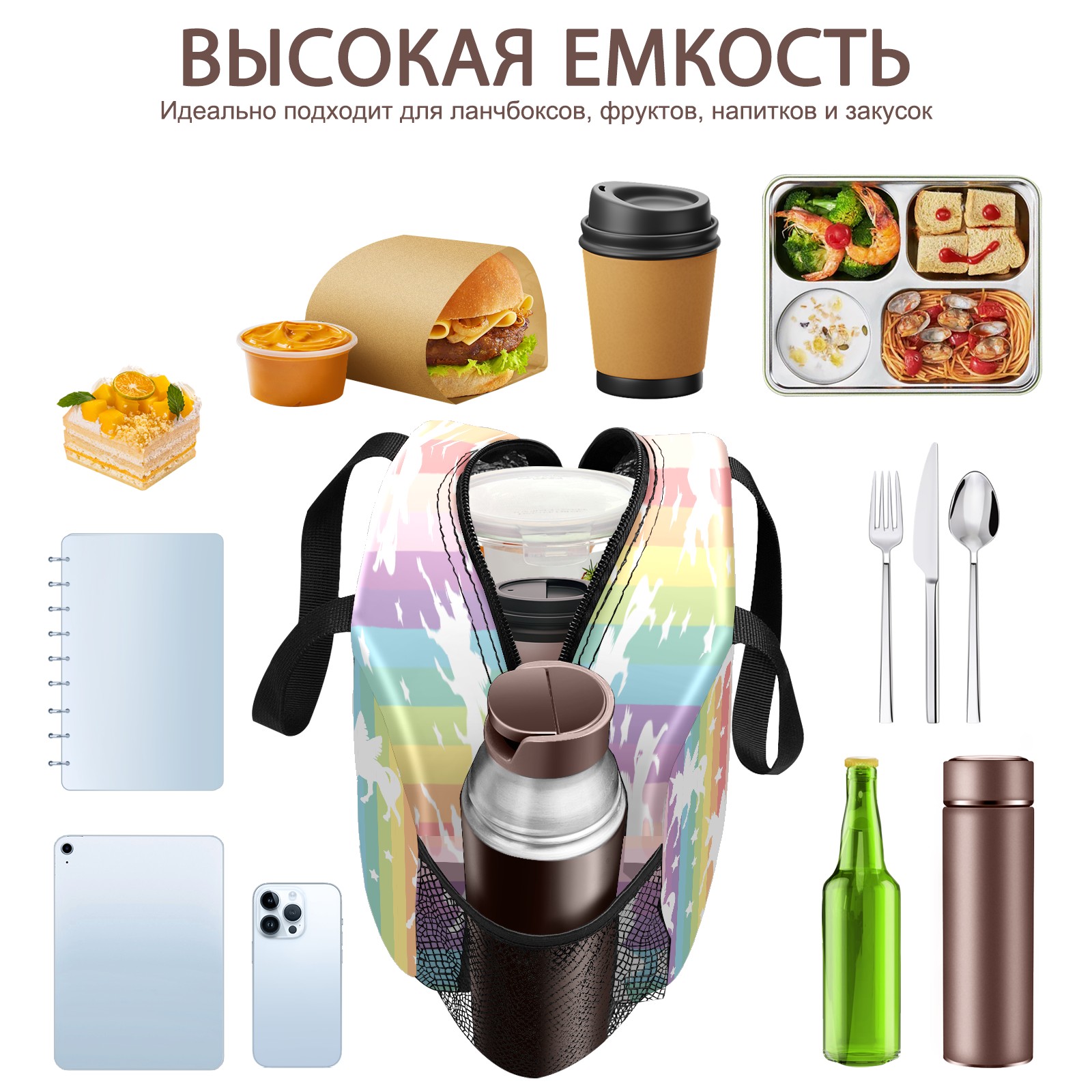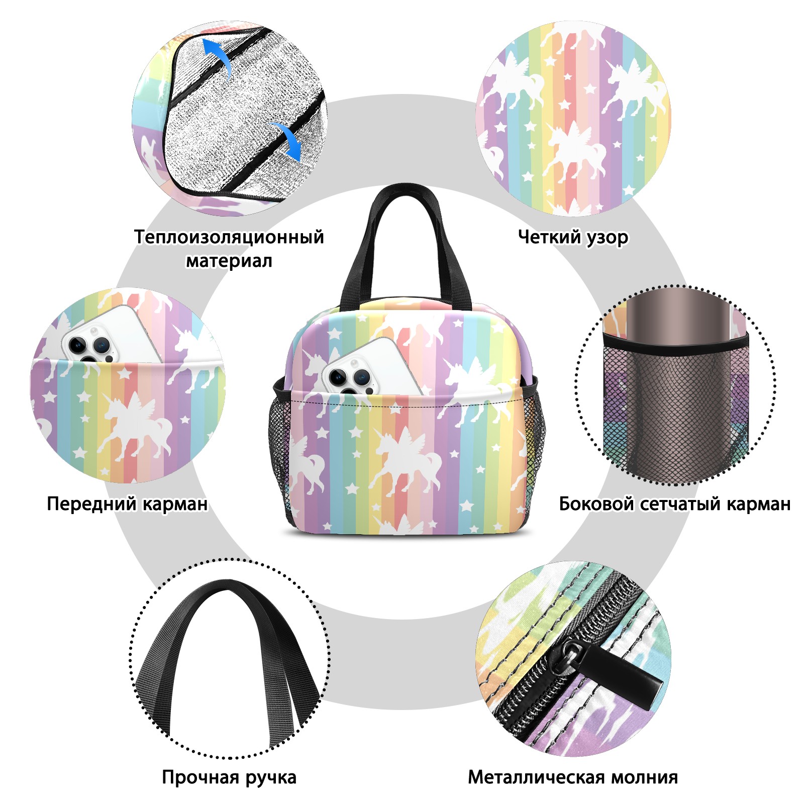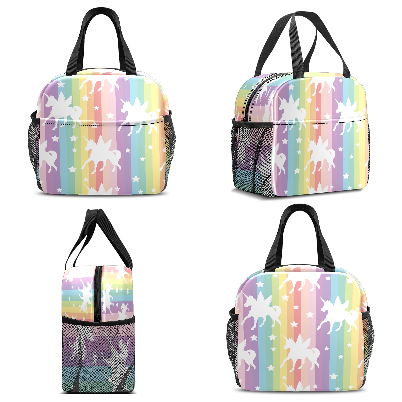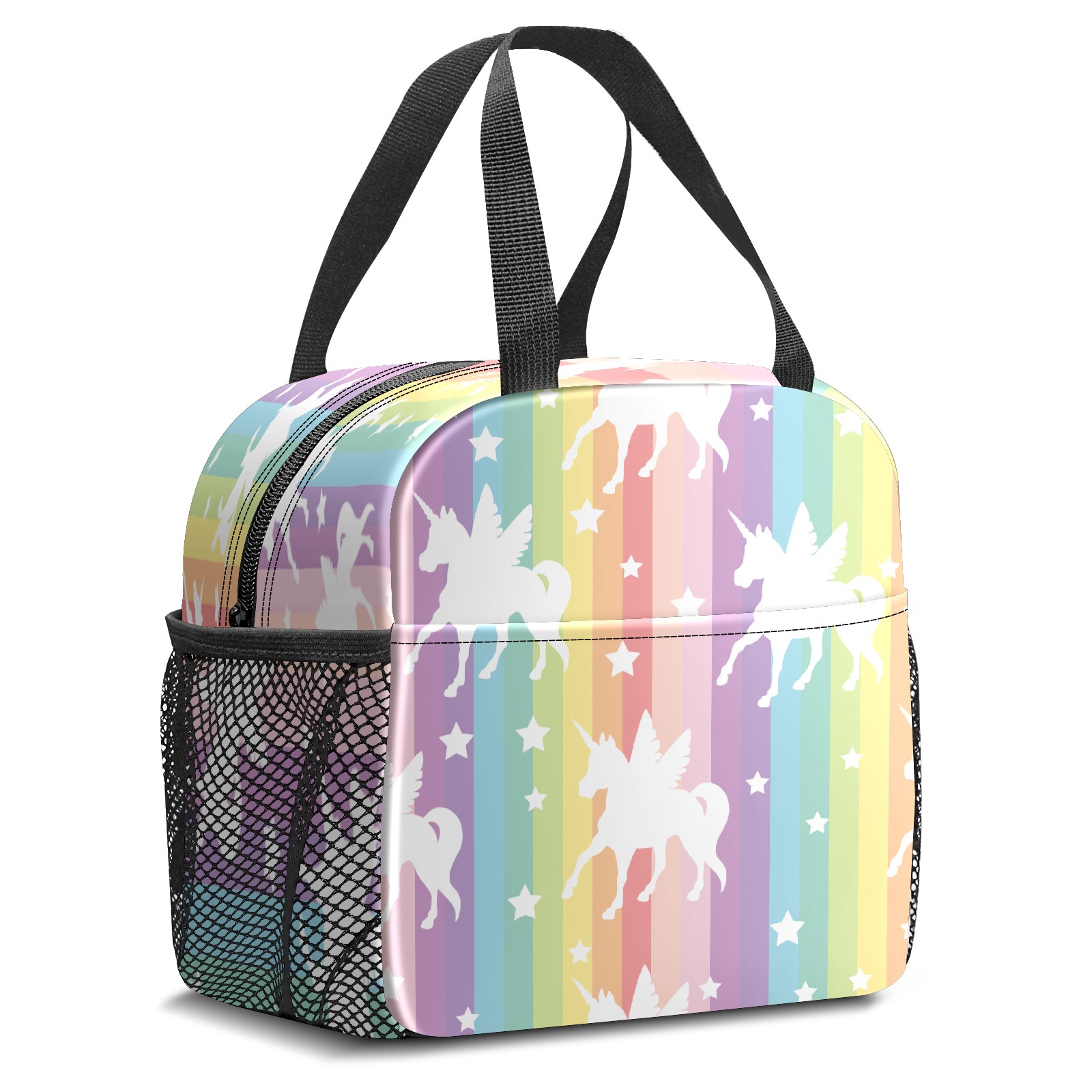 小餐包 Cute White Unicorns On Rainbow Stripes