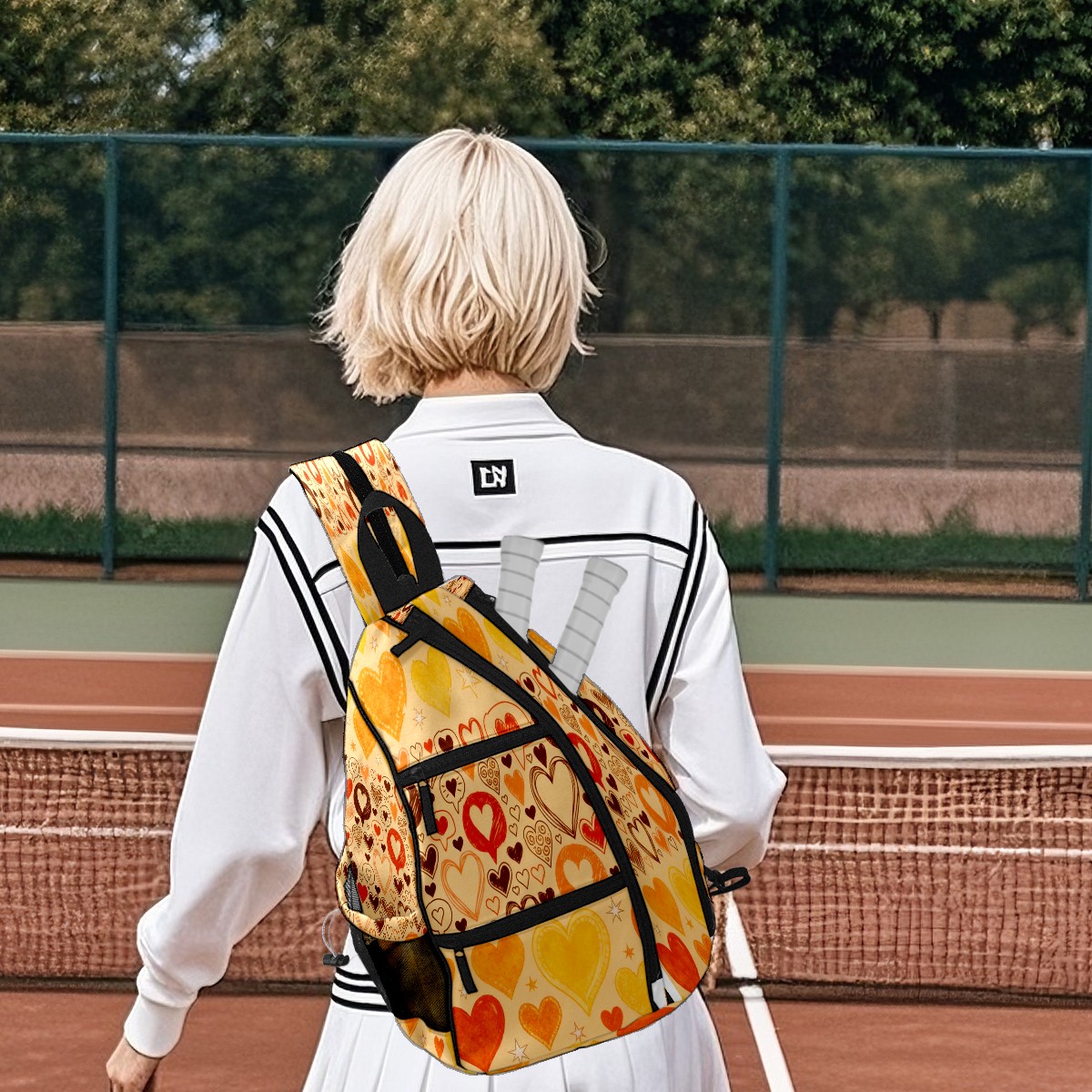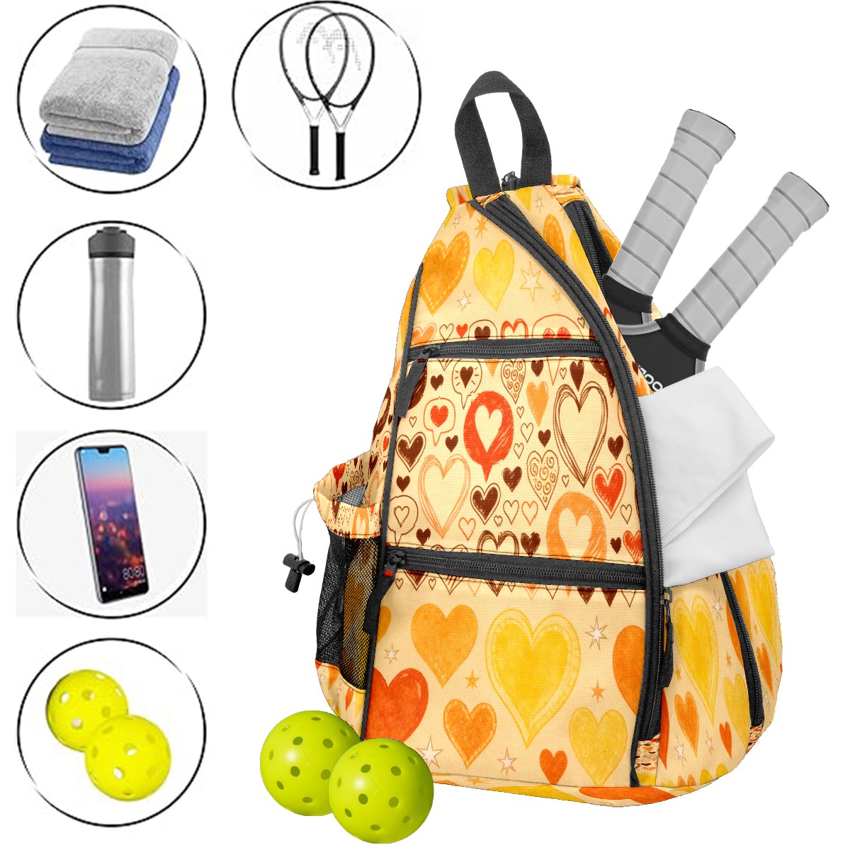 Counullo Pickleball Bag for Women & Men – Lightweight Sports Backpack with Paddle Compartments, Dual Carry Modes, Detachable Zippered Strap, Warm Hearts Orange | Great Gift for Players