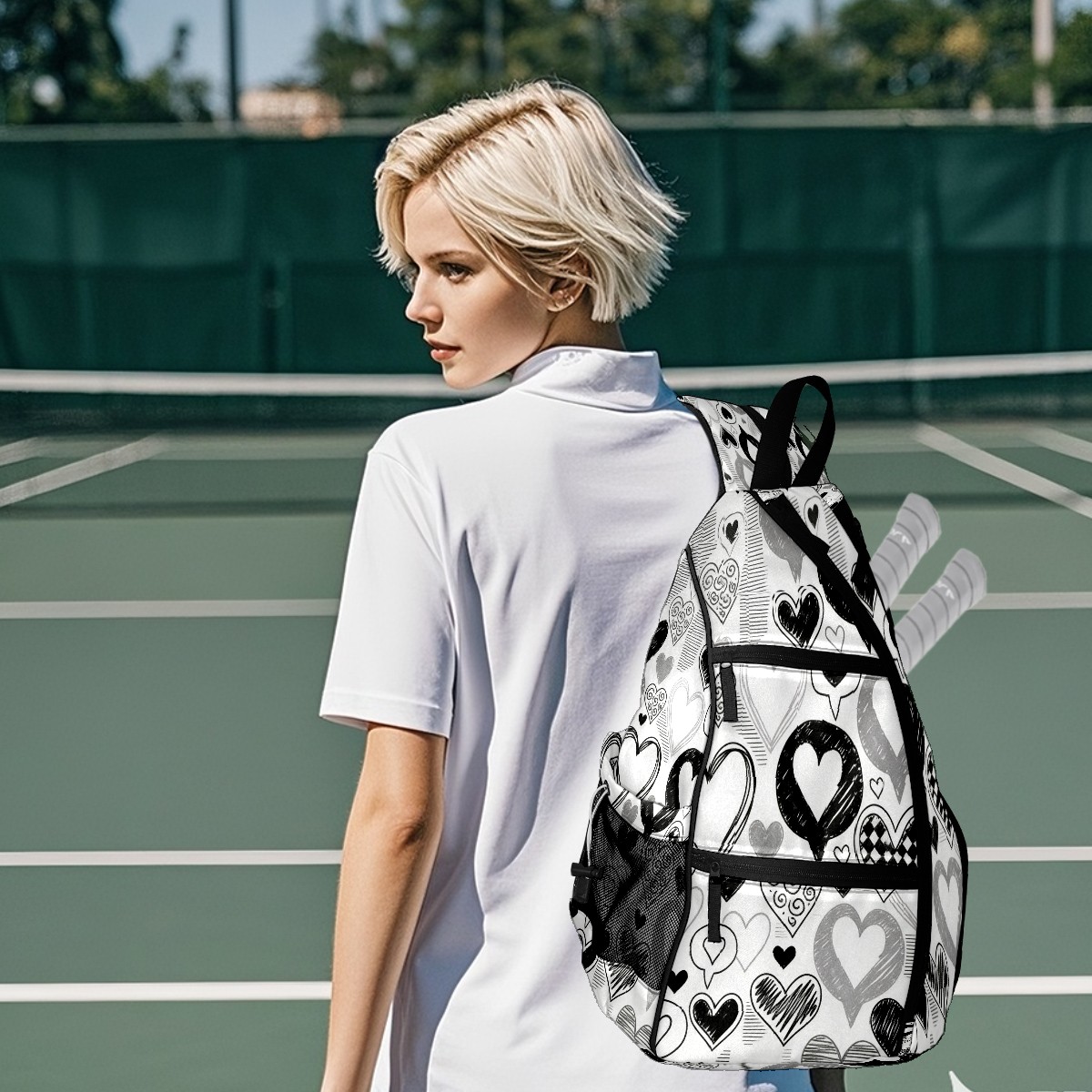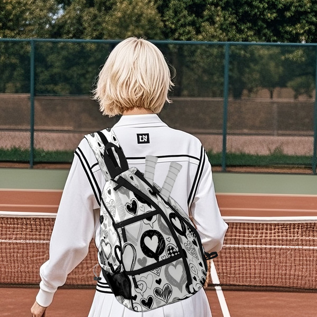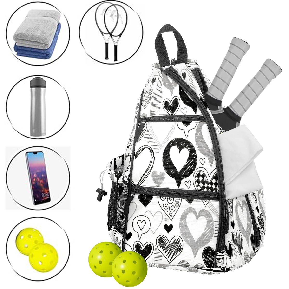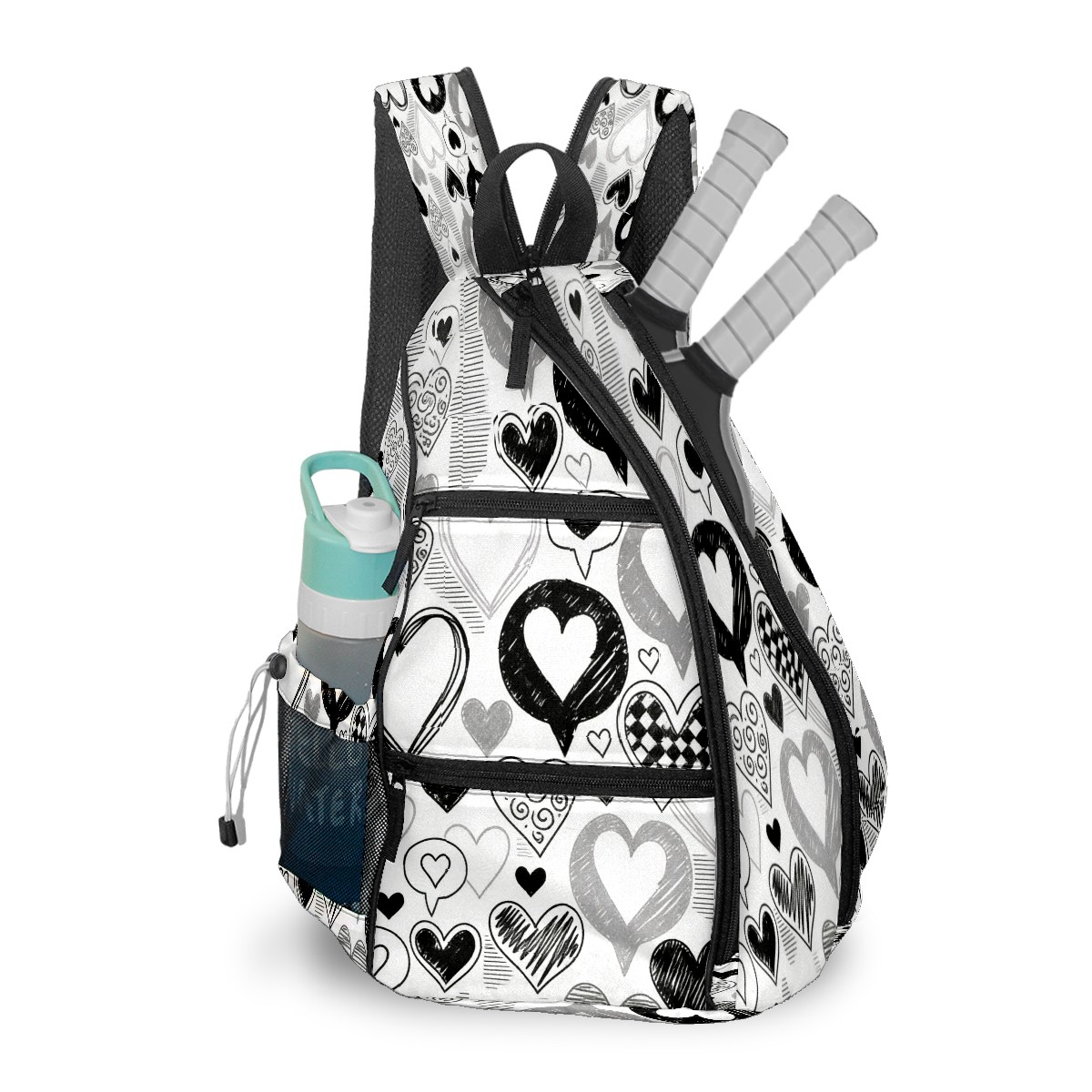 Counullo Pickleball Bag for Women & Men – Lightweight Sports Backpack with Paddle Compartments, Dual Carry Modes, Detachable Zippered Strap, Stark Hearts Black | Great Gift for Players