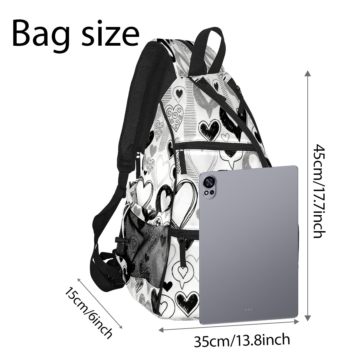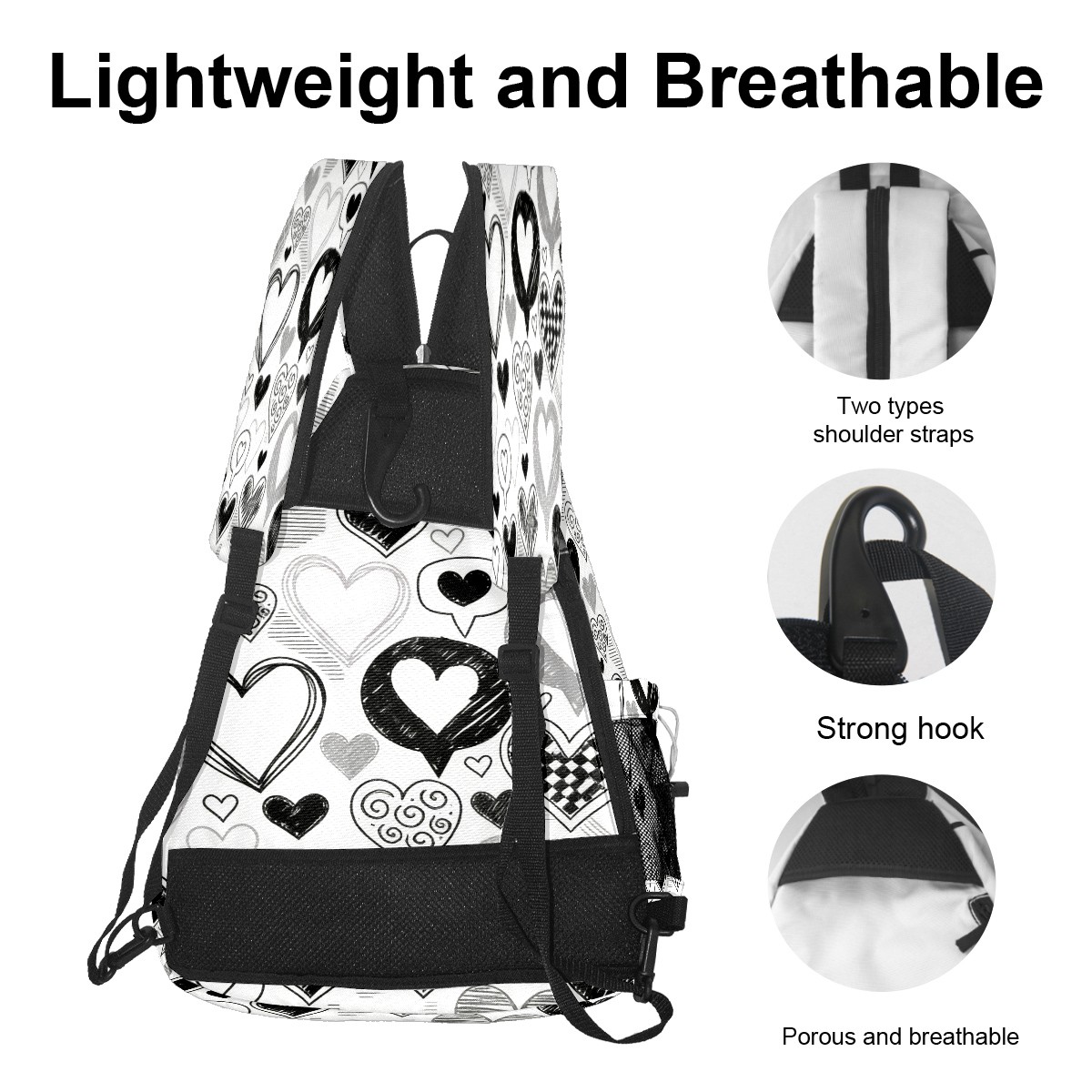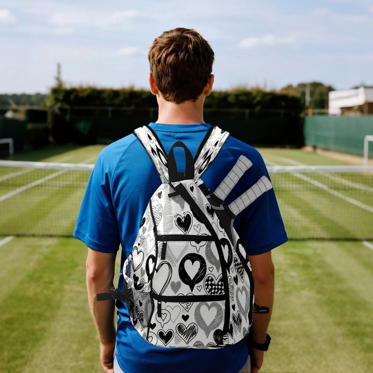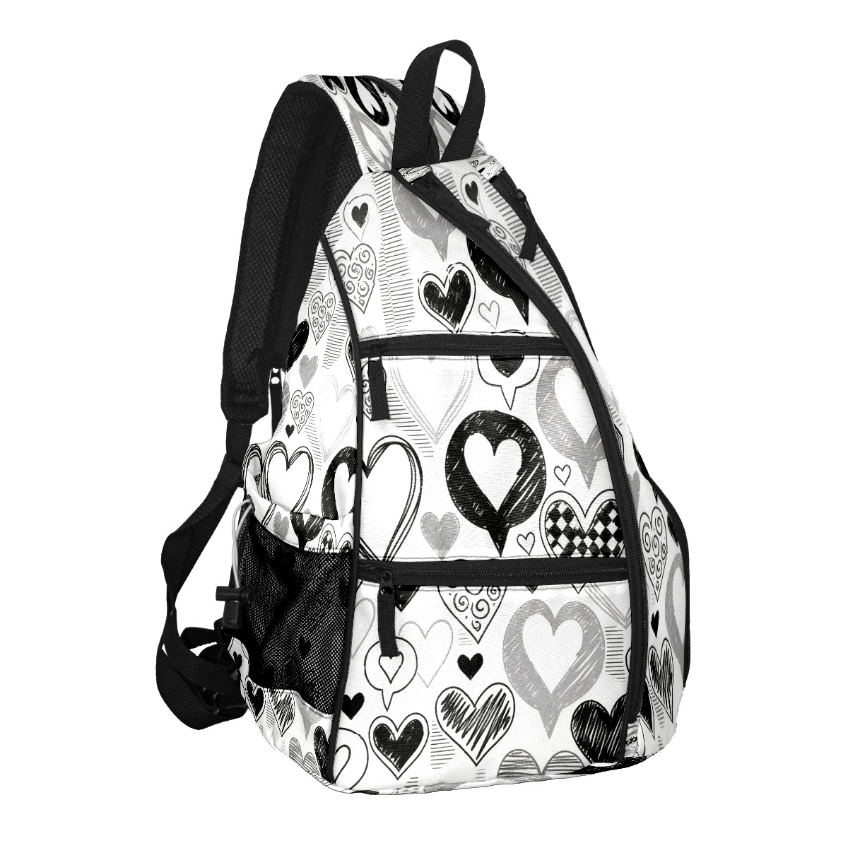 Counullo Pickleball Bag for Women & Men – Lightweight Sports Backpack with Paddle Compartments, Dual Carry Modes, Detachable Zippered Strap, Stark Hearts Black | Great Gift for Players