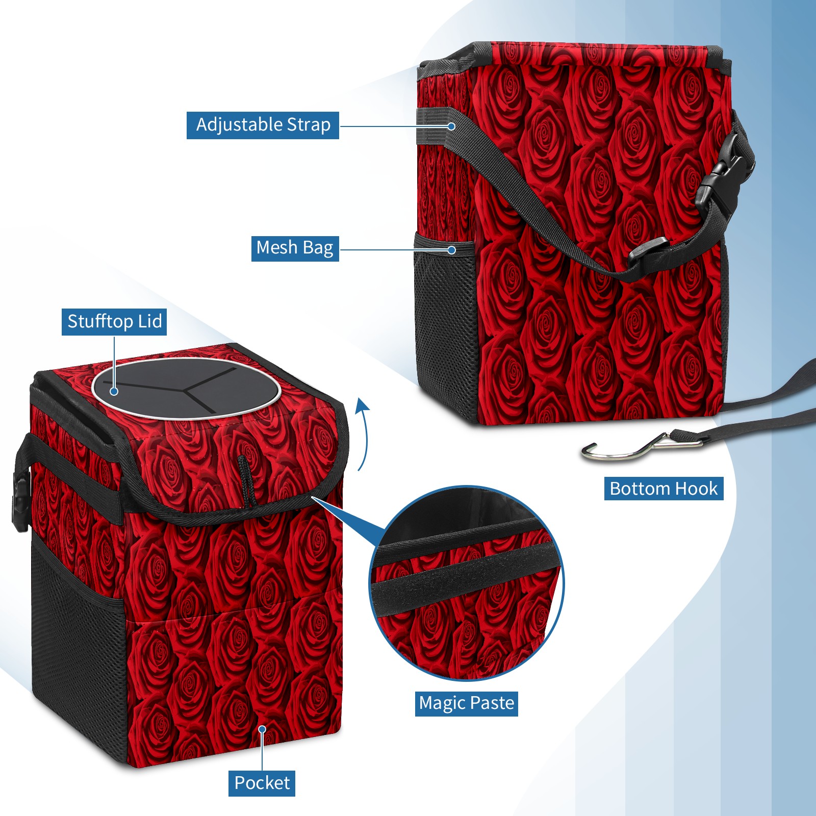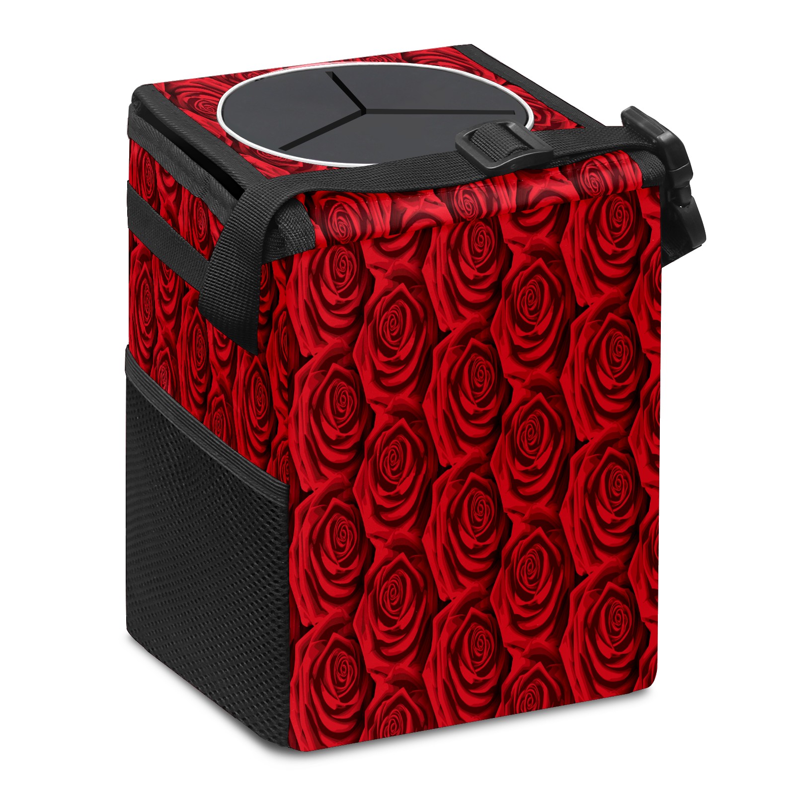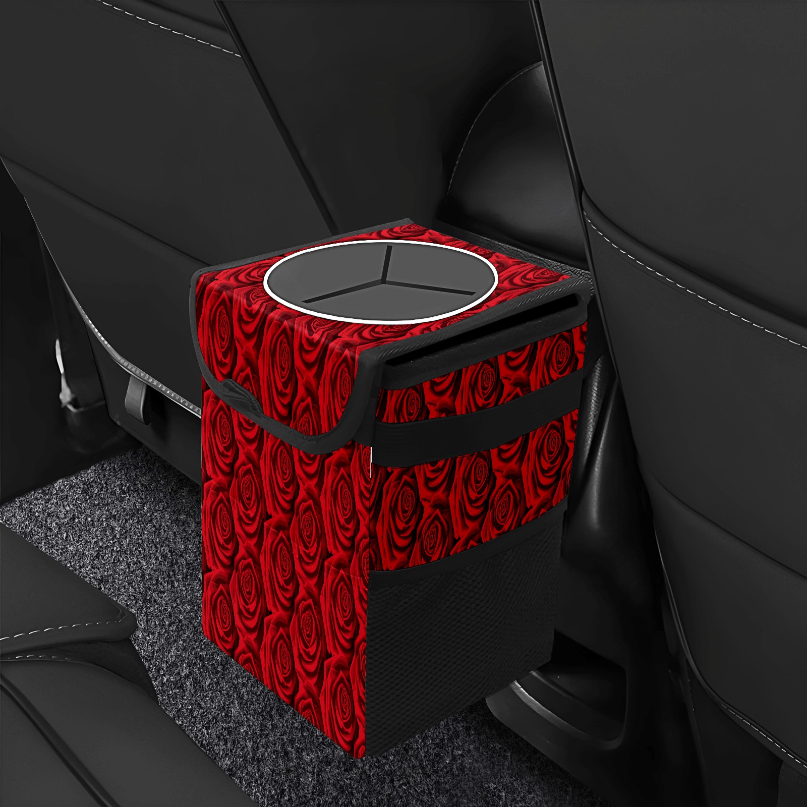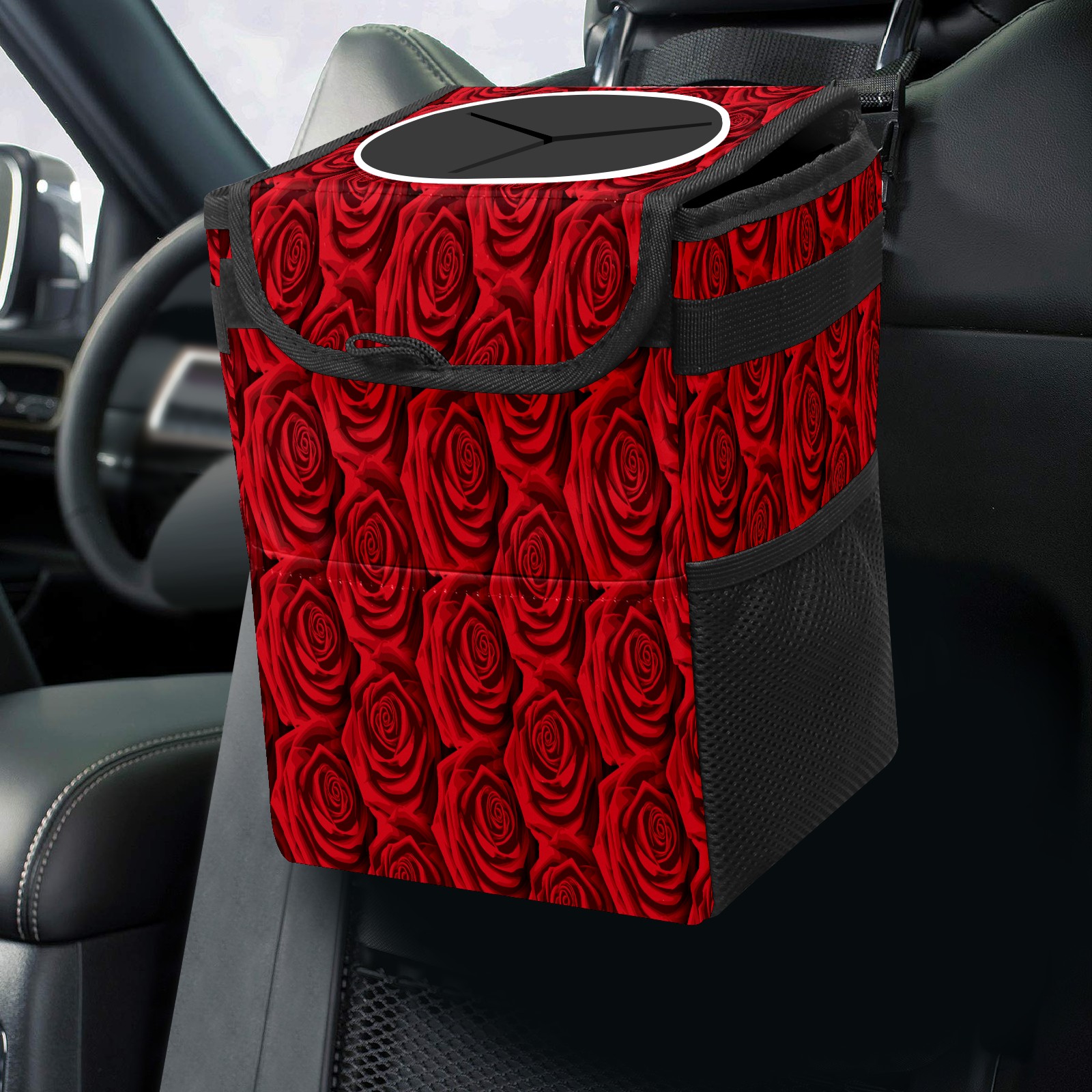 Car Garbage Can — Multi-functional, Lightweight Portable, Reusable Vehicle Trash Can, Waterproof with Sufficient Storage Capacity Red Rose