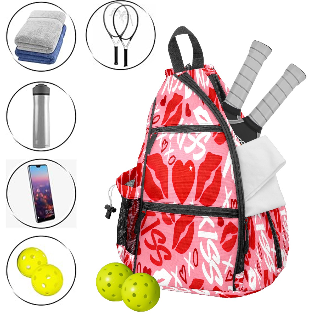 Counullo Pickleball Bag for Women & Men – Lightweight Sports Backpack with Paddle Compartments, Dual Carry Modes, Detachable Zippered Strap, Lip Pink | Great Gift for Players