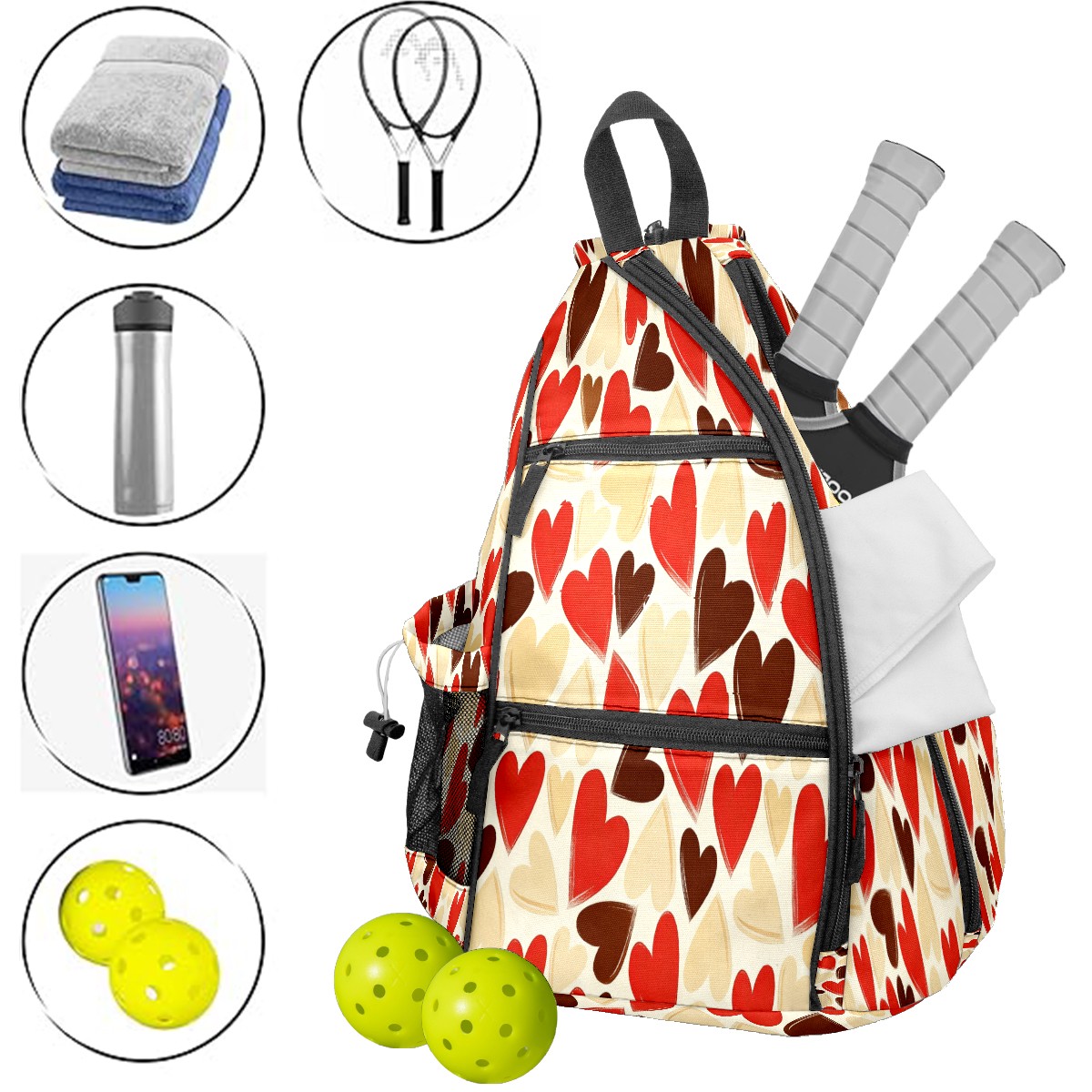 Counullo Pickleball Bag for Women & Men – Lightweight Sports Backpack with Paddle Compartments, Dual Carry Modes, Detachable Zippered Strap, Heart Warm Brown | Great Gift for Players