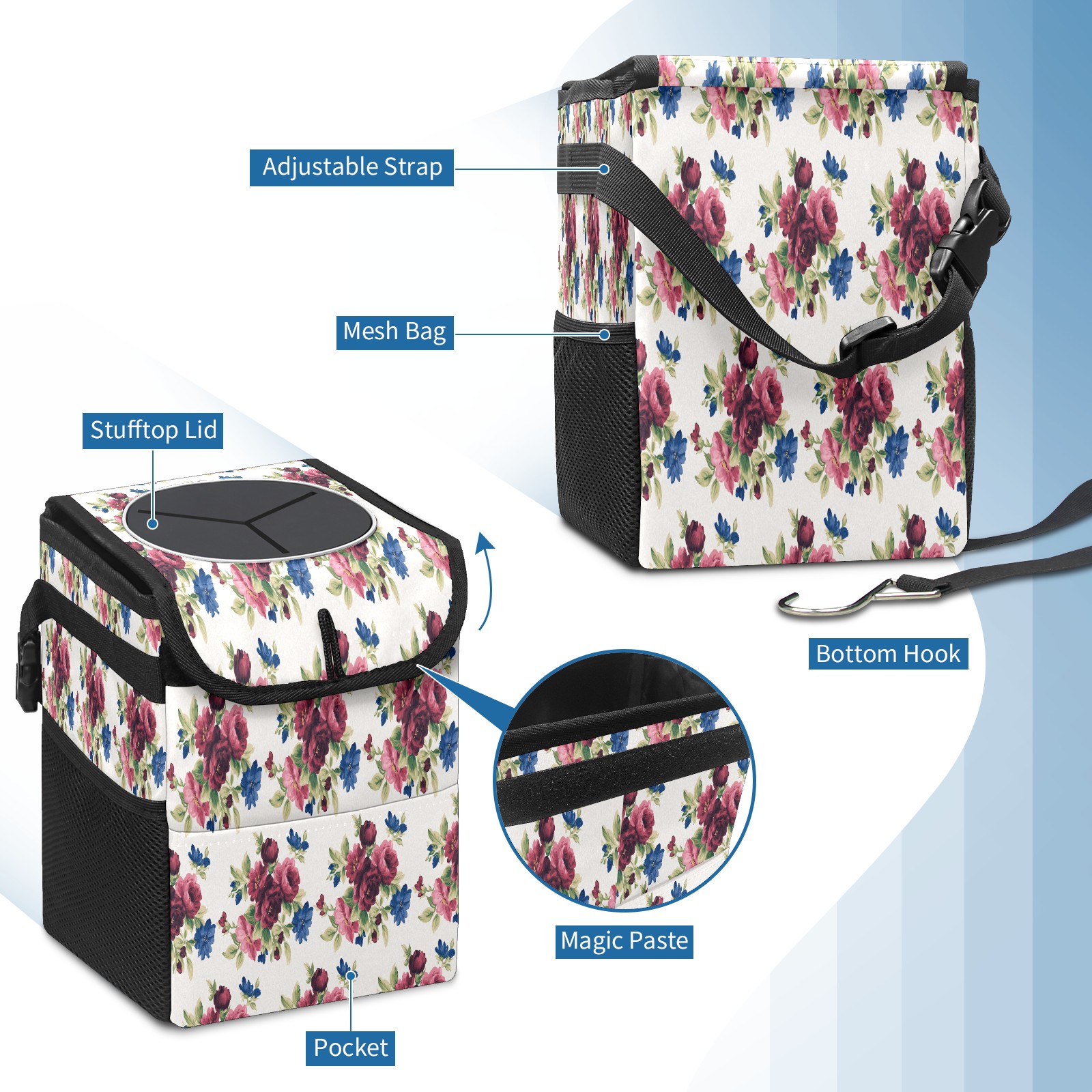 Car Garbage Can — Multi-functional, Lightweight Portable, Reusable Vehicle Trash Can, Waterproof with Sufficient Storage Capacity Red And Blue Vintage Floral Background Related Keywords