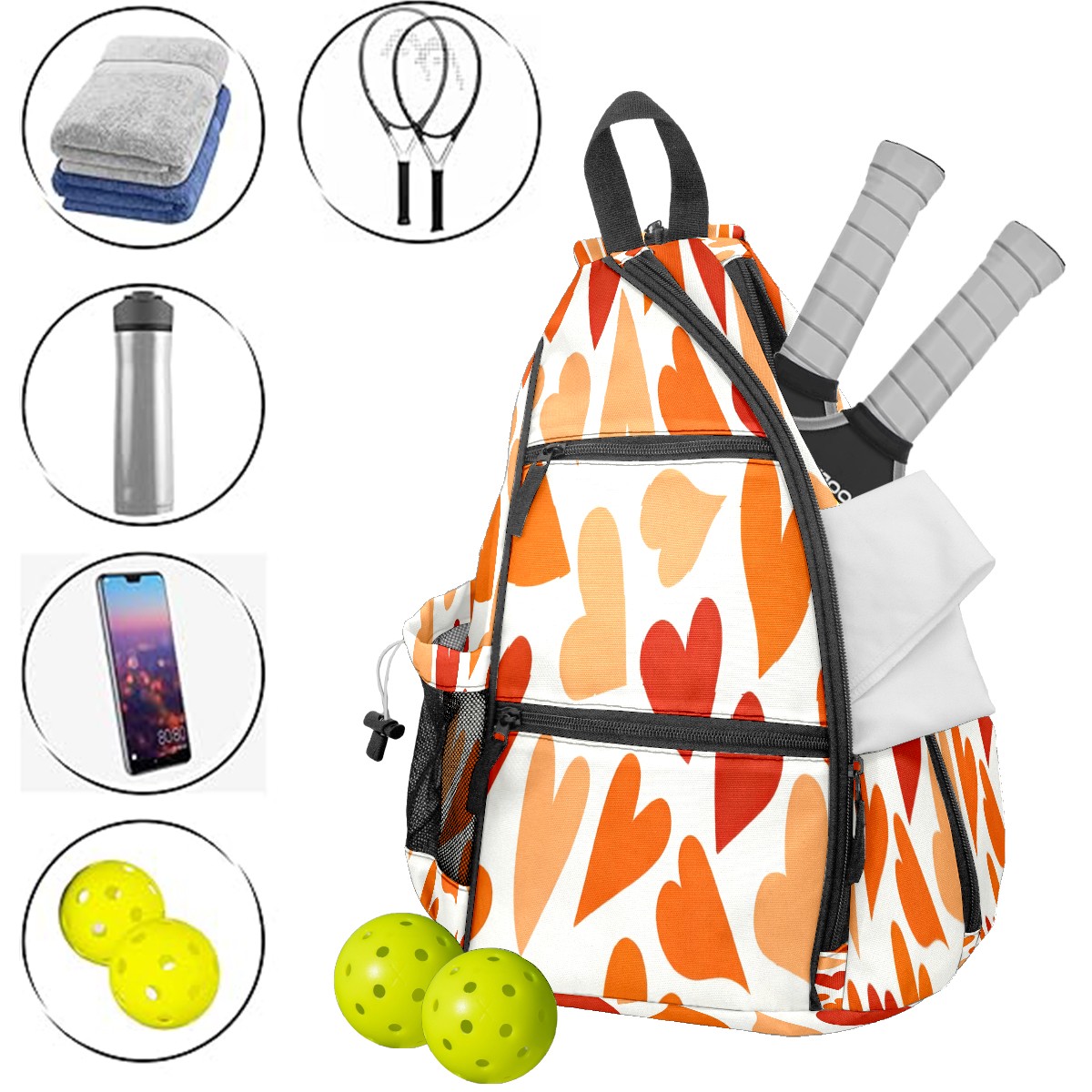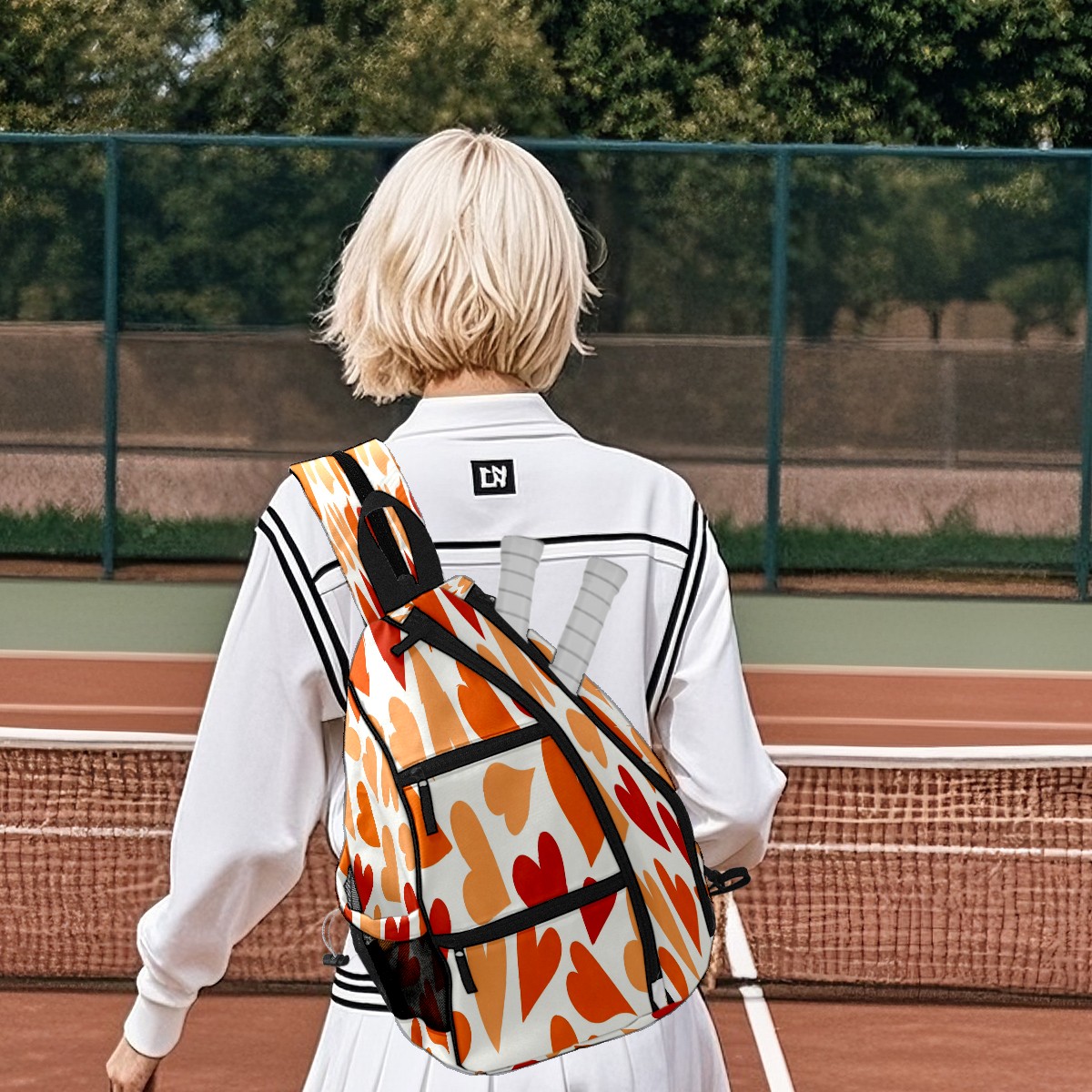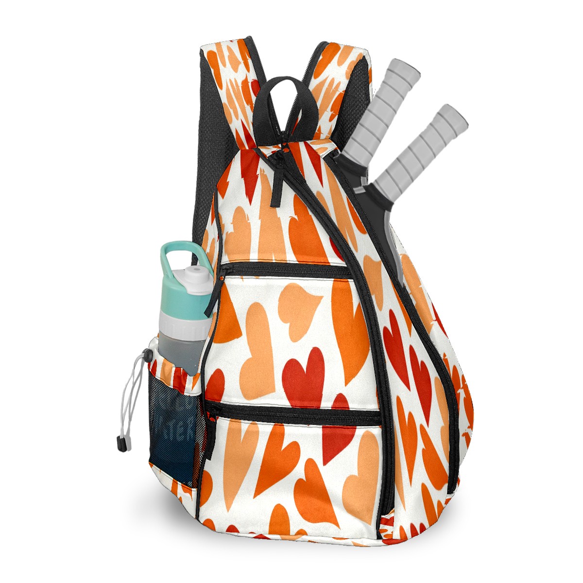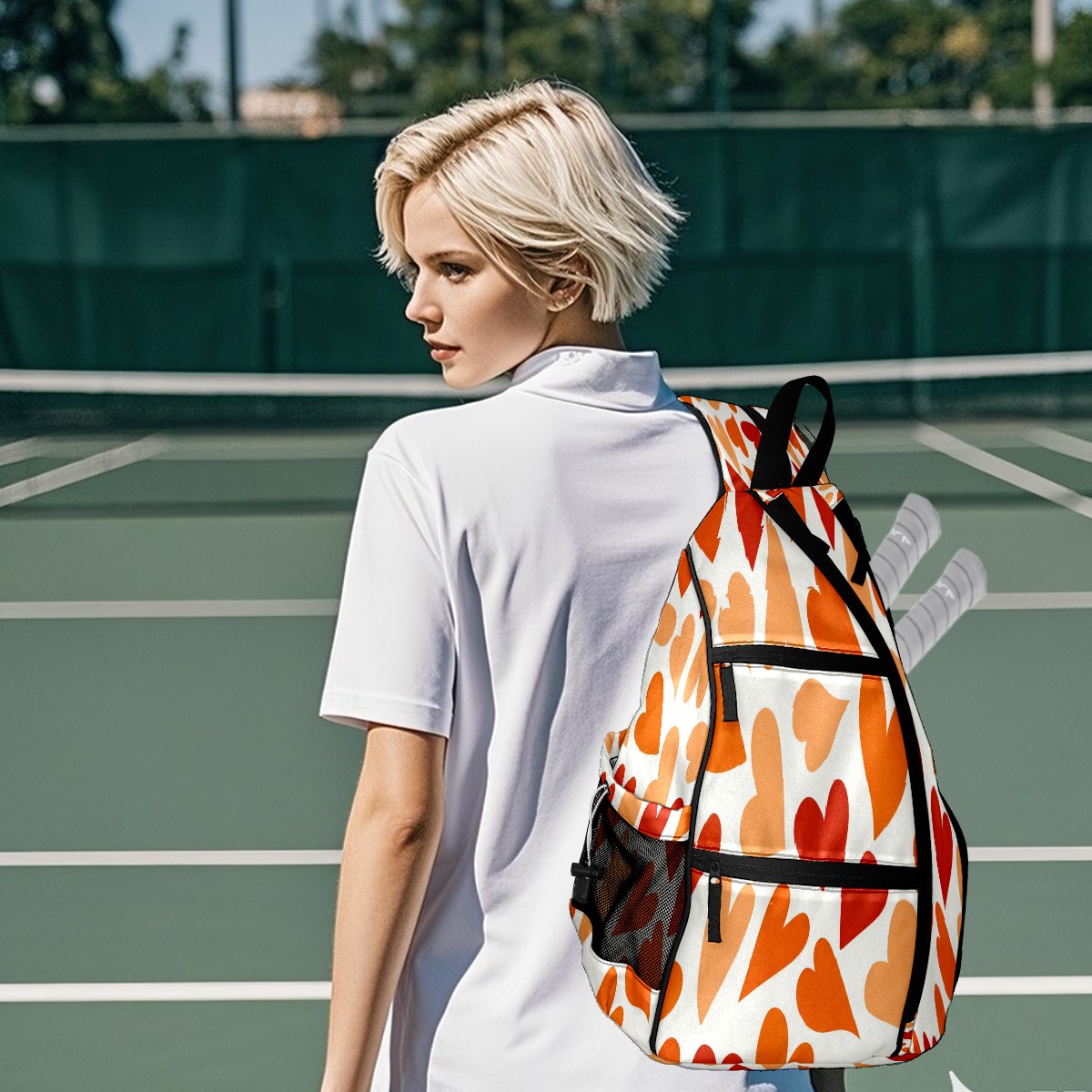 Counullo Pickleball Bag for Women & Men – Lightweight Sports Backpack with Paddle Compartments, Dual Carry Modes, Detachable Zippered Strap, Heart Block Orange | Great Gift for Players