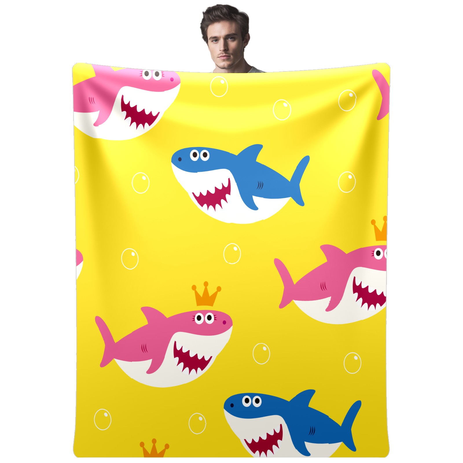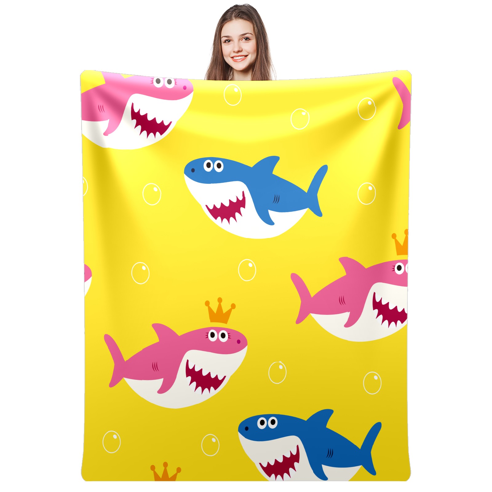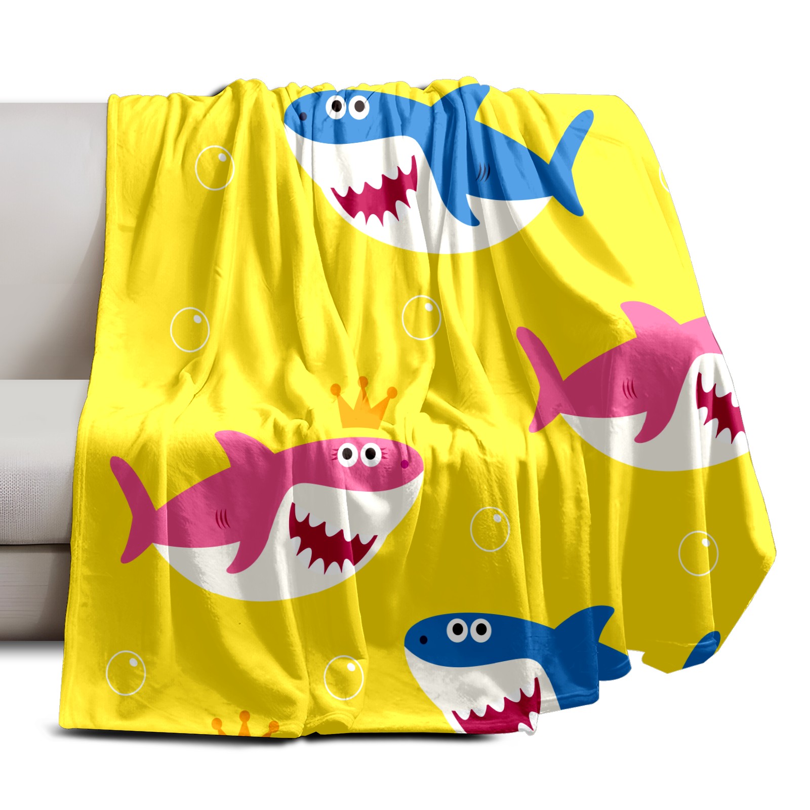 Flannel Blanket, Ultra-Soft Comfortable Home Decor Rug, The Perfect Comfort Gift for Both Men Women, Suitable for Beds, Sofas, Loungewear, and Travel 30x39in(Cartoon Princess Shark Yellow Background)