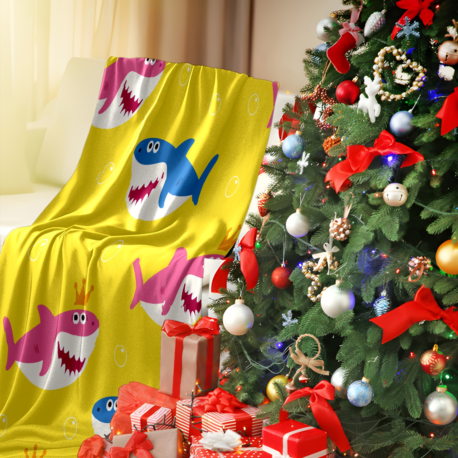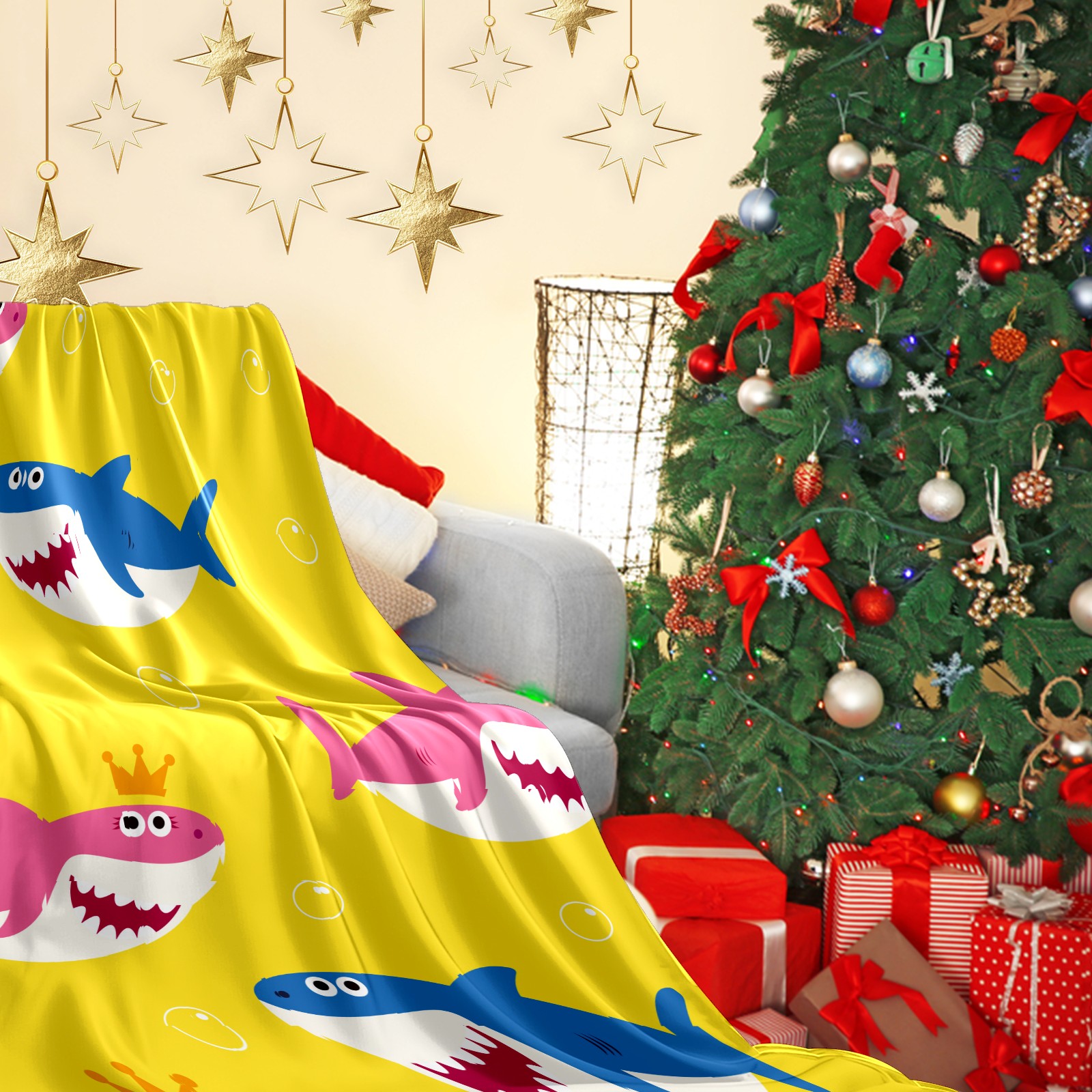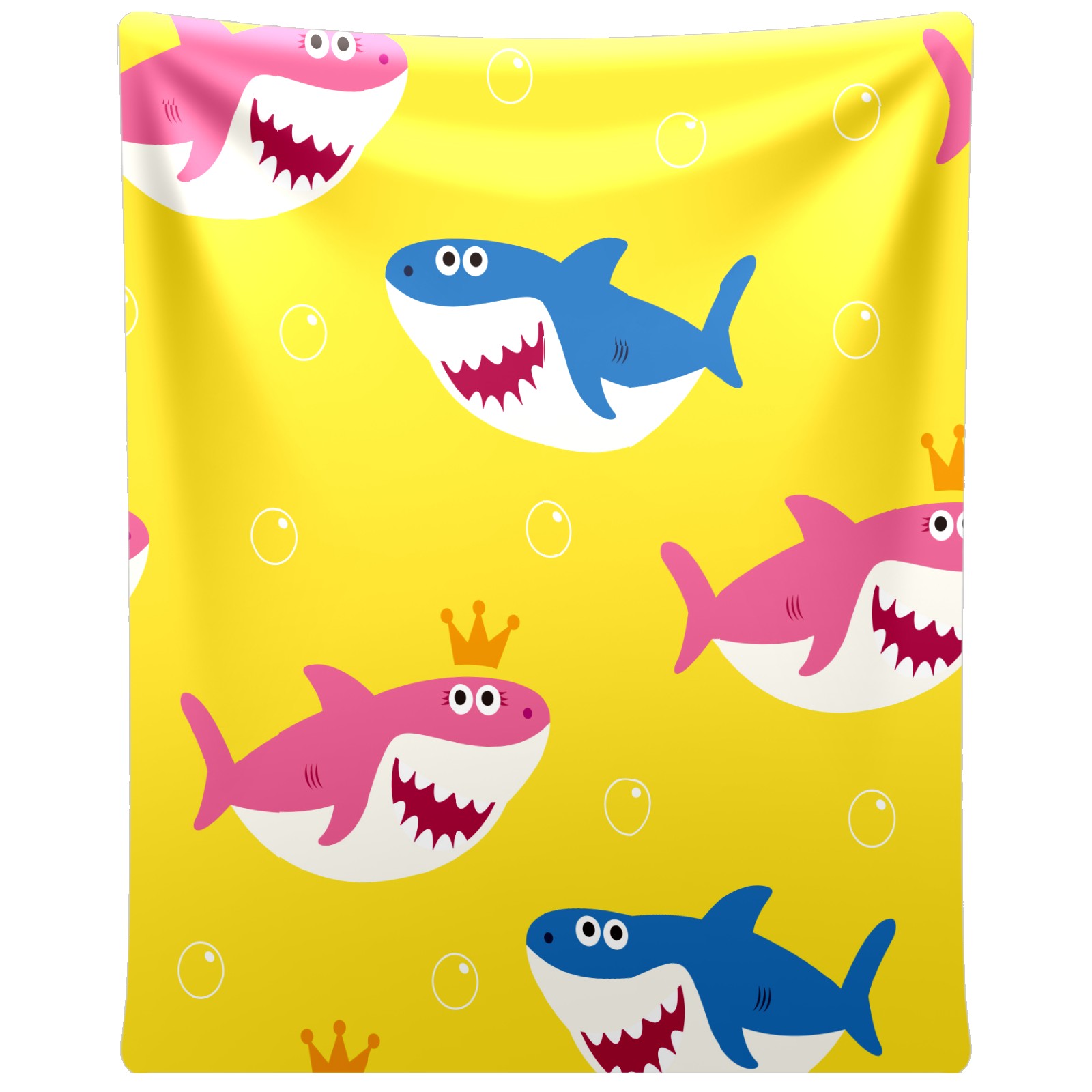 Flannel Blanket, Ultra-Soft Comfortable Home Decor Rug, The Perfect Comfort Gift for Both Men Women, Suitable for Beds, Sofas, Loungewear, and Travel 30x39in(Cartoon Princess Shark Yellow Background)