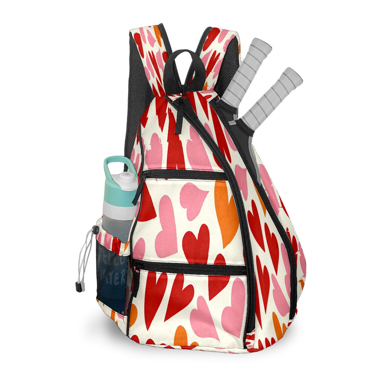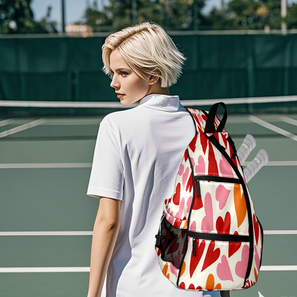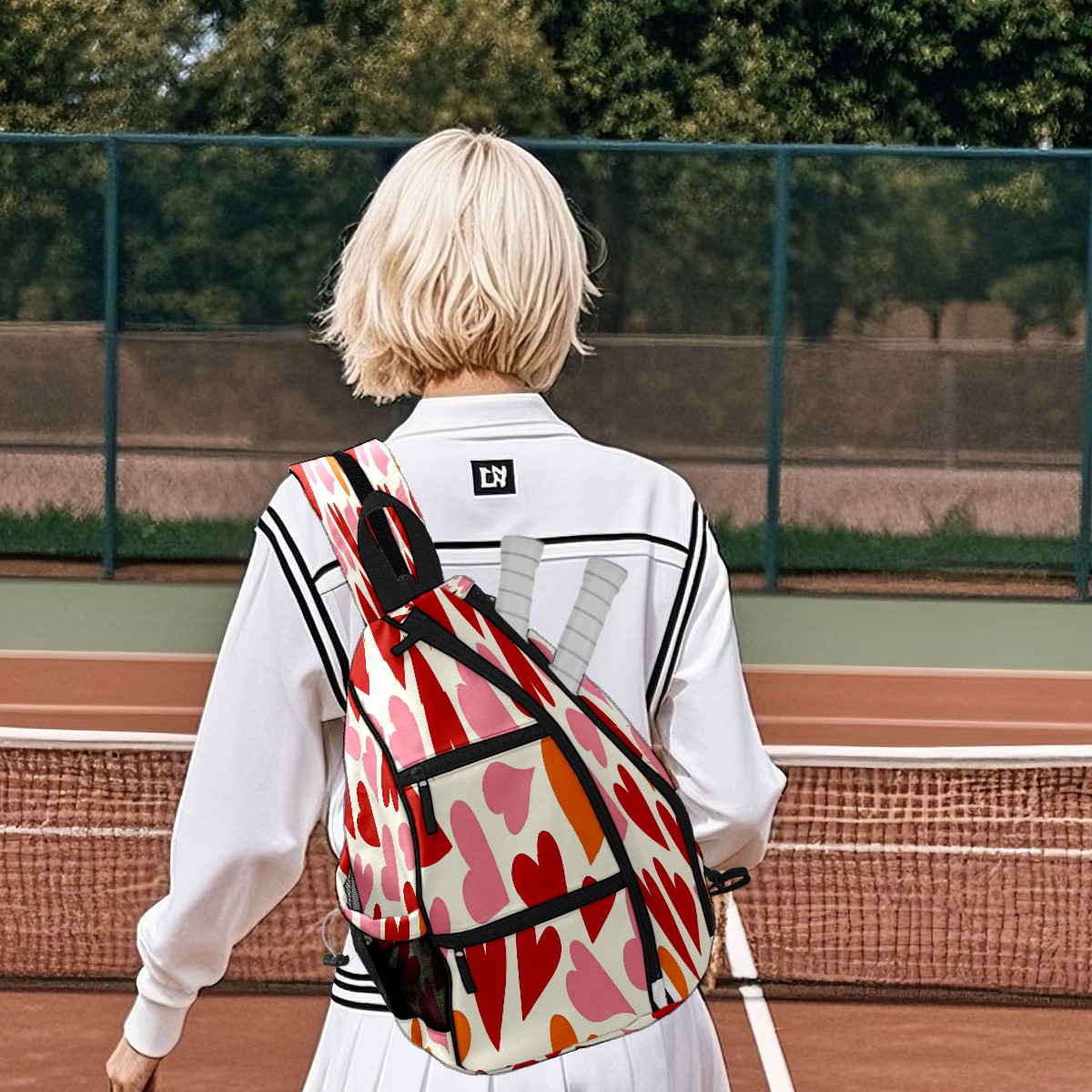 Counullo Pickleball Bag for Women & Men – Lightweight Sports Backpack with Paddle Compartments, Dual Carry Modes, Detachable Zippered Strap, Heart Block Pink | Great Gift for Players