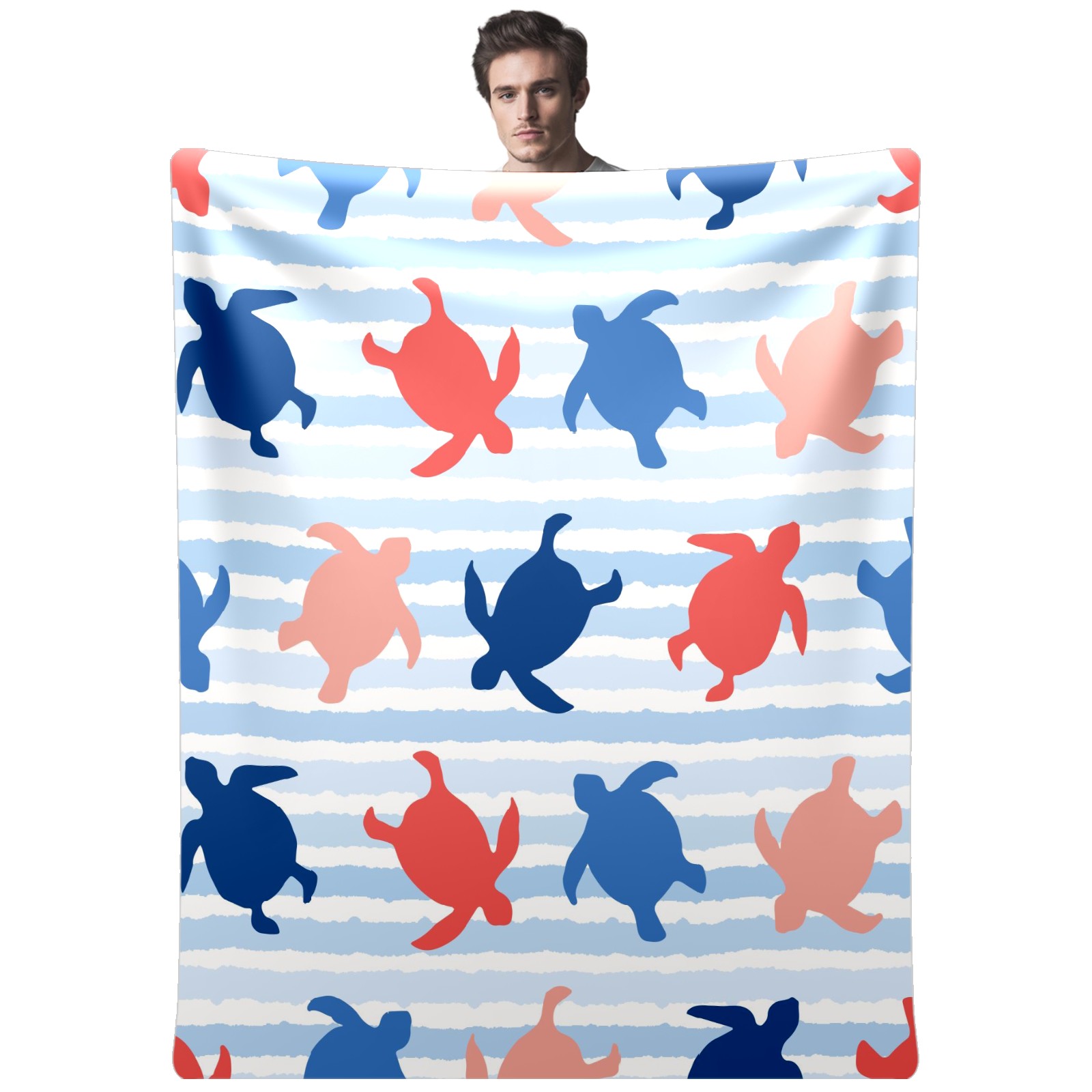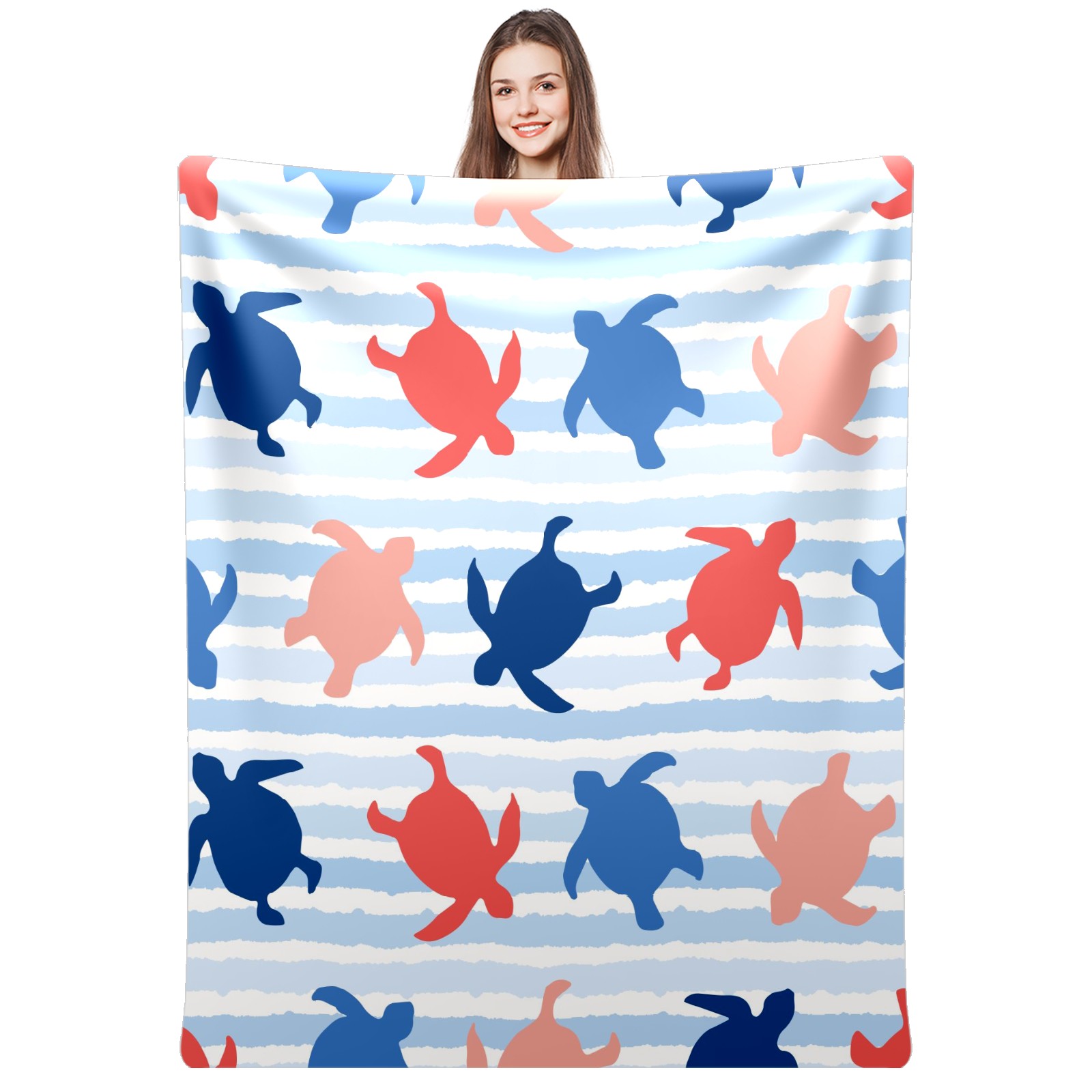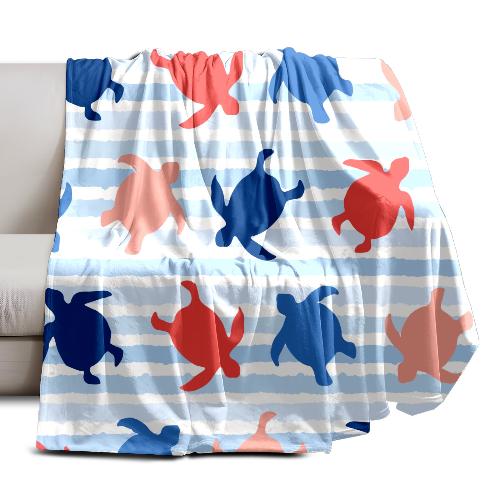 Flannel Blanket, Ultra-Soft Comfortable Home Decor Rug, The Perfect Comfort Gift for Both Men Women, Suitable for Beds, Sofas, Loungewear, and Travel 30x39in(Blue Coral Sea Turtles Blue White Striped)