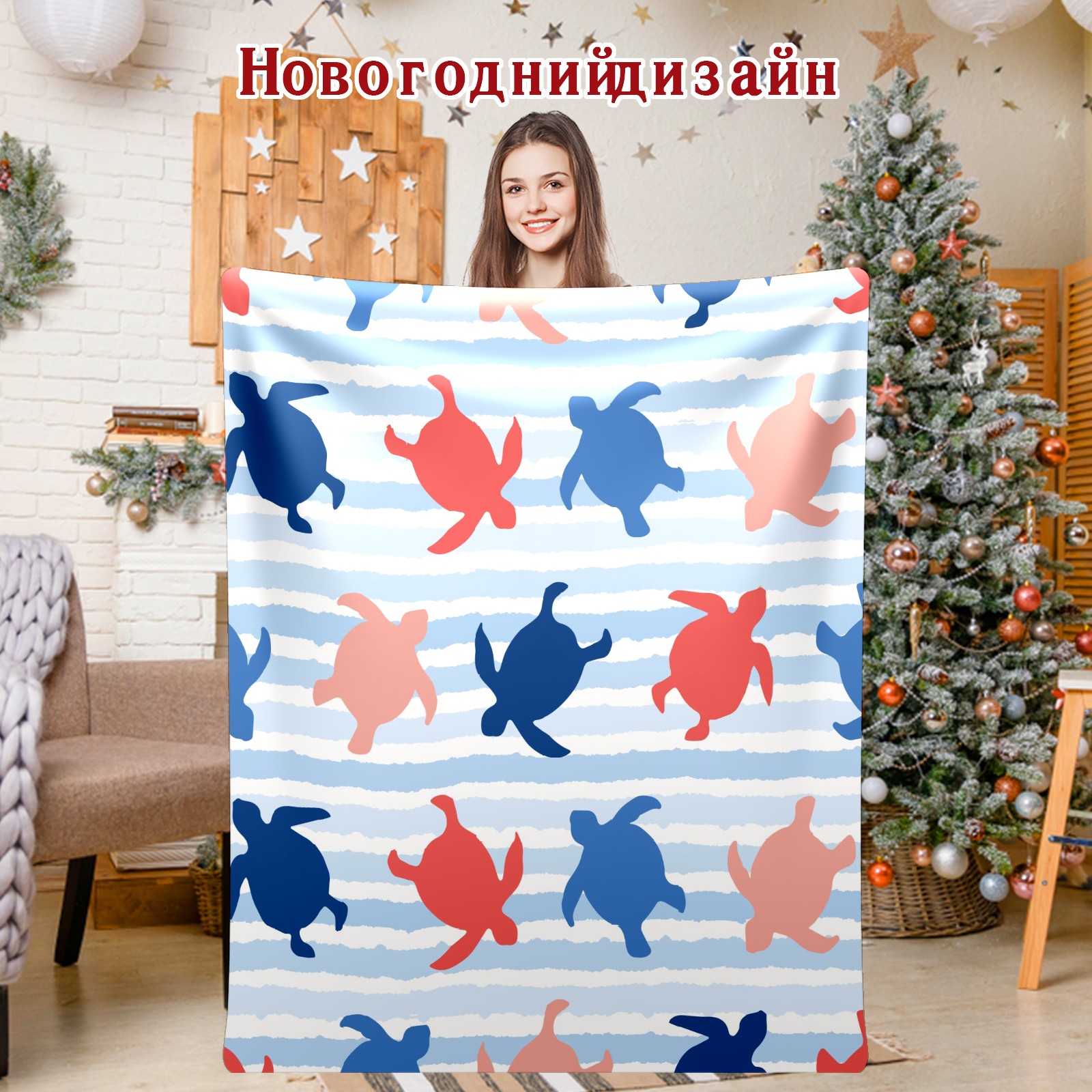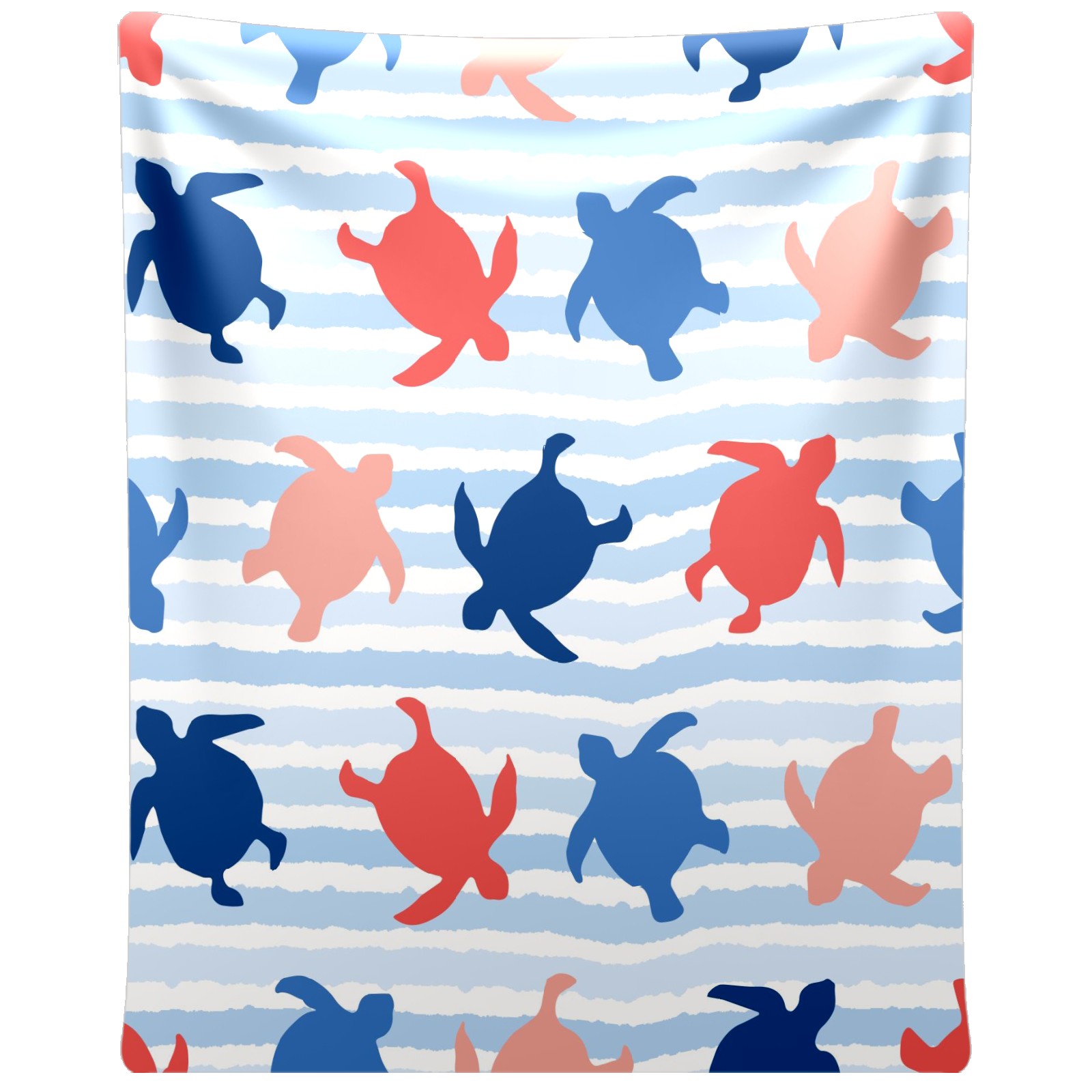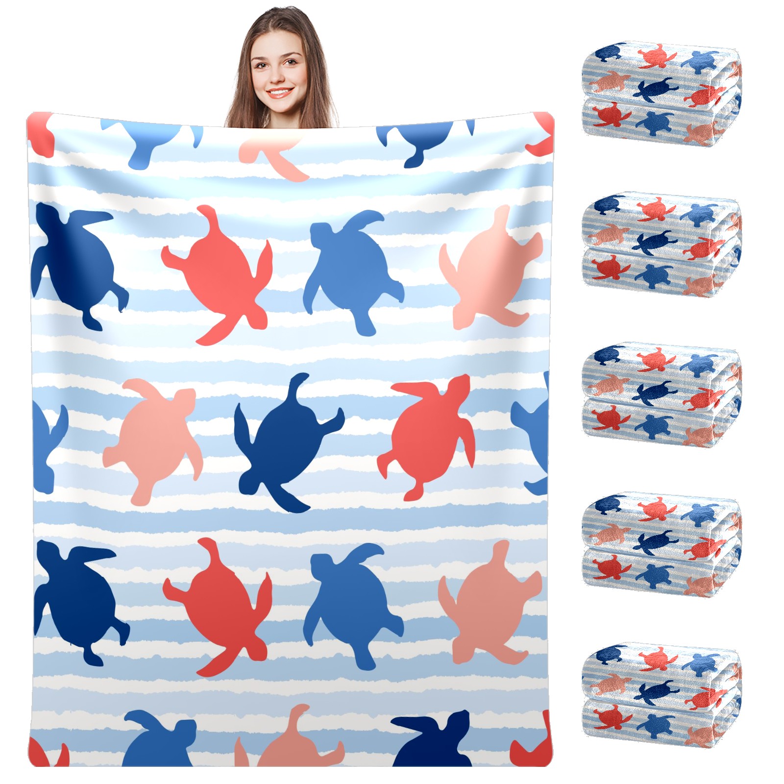 Flannel Blanket, Ultra-Soft Comfortable Home Decor Rug, The Perfect Comfort Gift for Both Men Women, Suitable for Beds, Sofas, Loungewear, and Travel 30x39in(Blue Coral Sea Turtles Blue White Striped)