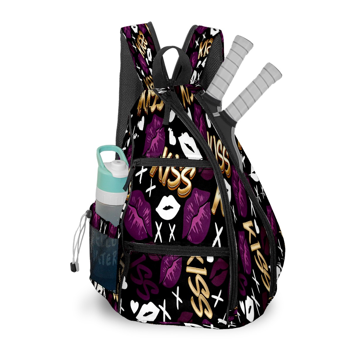 Counullo Pickleball Bag for Women & Men – Lightweight Sports Backpack with Paddle Compartments, Dual Carry Modes, Detachable Zippered Strap, KISS & Lip Purple | Great Gift for Players