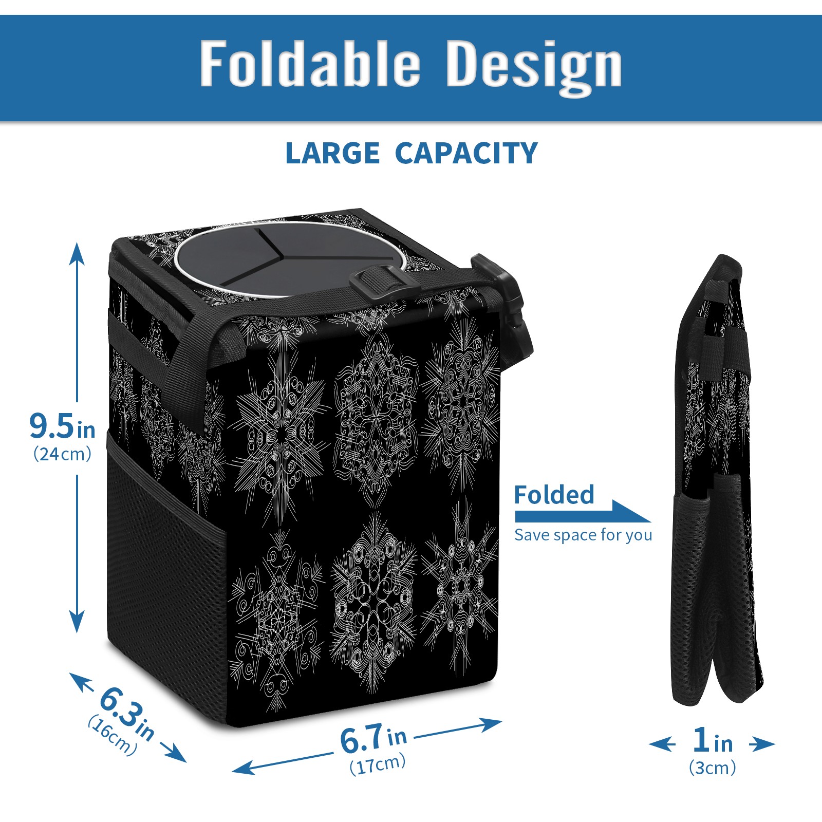 Car Garbage Can — Multi-functional, Lightweight Portable, Reusable Vehicle Trash Can, Waterproof with Sufficient Storage Capacity Ornamental Snowflakes
