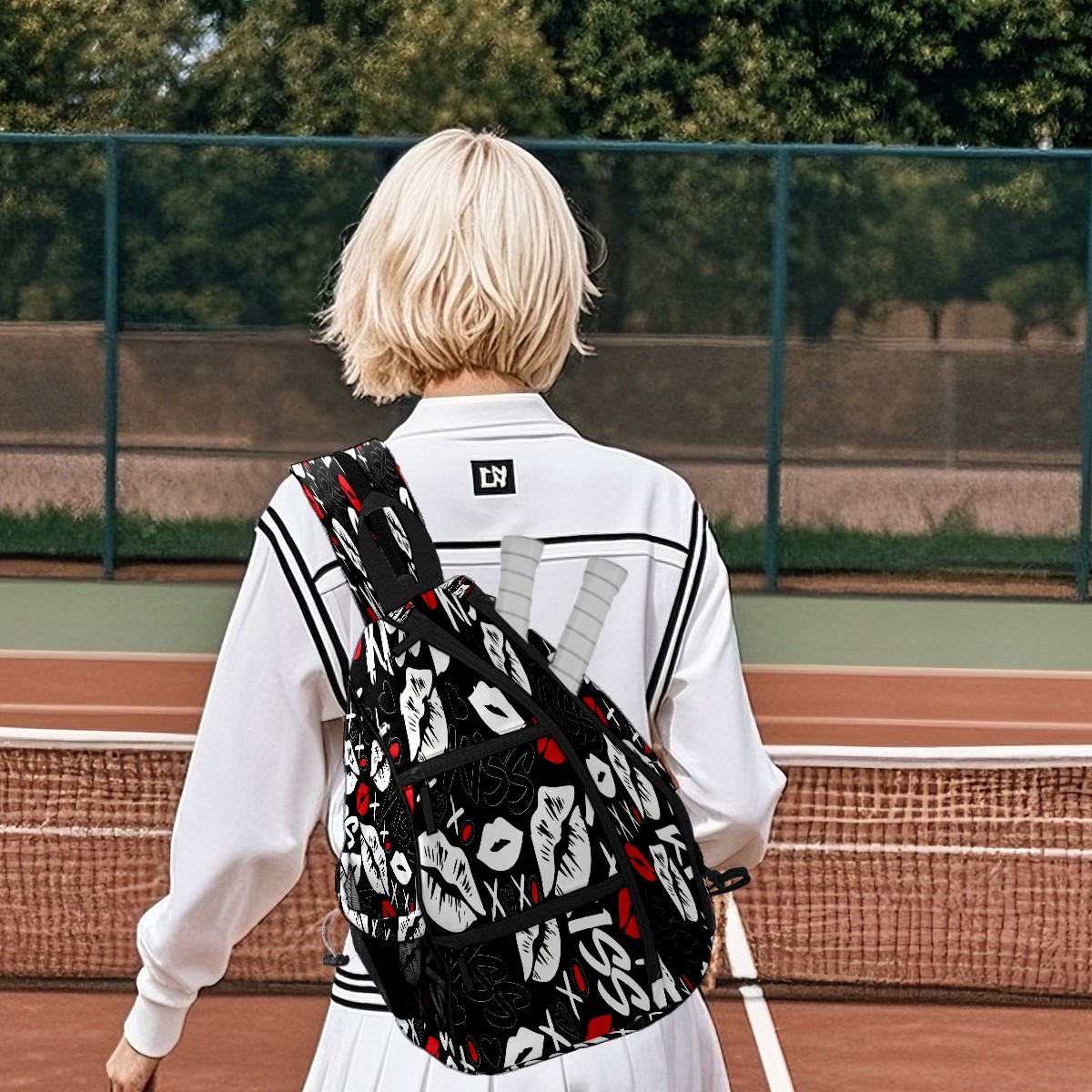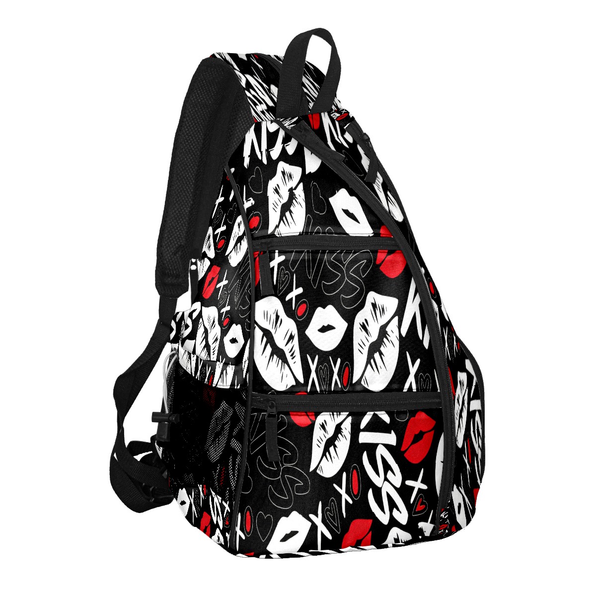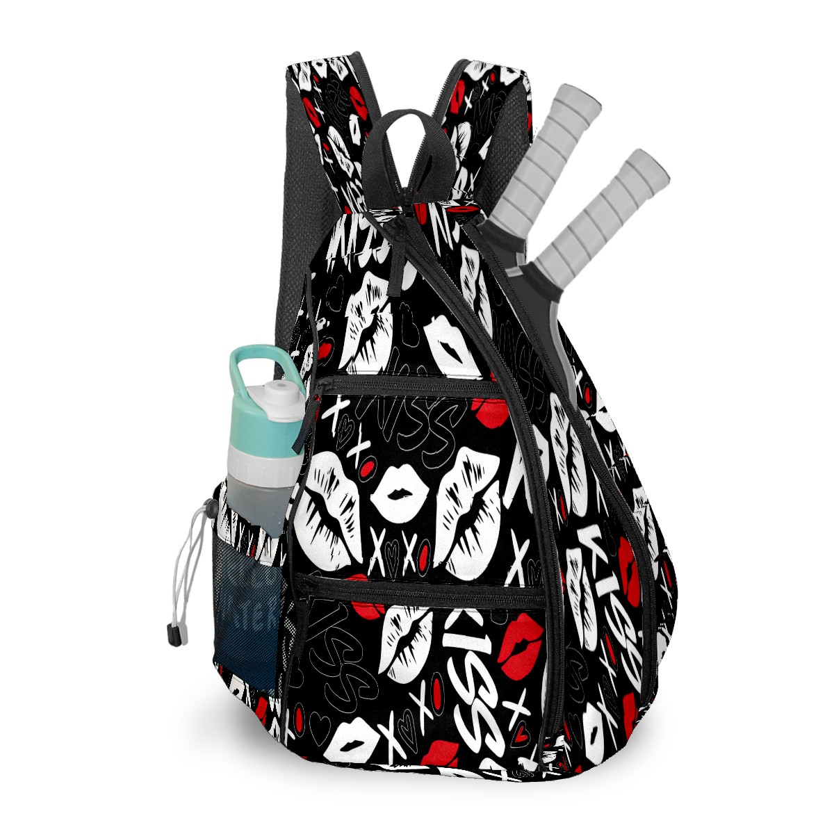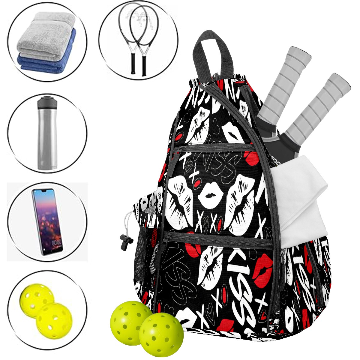 Counullo Pickleball Bag for Women & Men – Lightweight Sports Backpack with Paddle Compartments, Dual Carry Modes, Detachable Zippered Strap, Lip & Heart Black | Great Gift for Players
