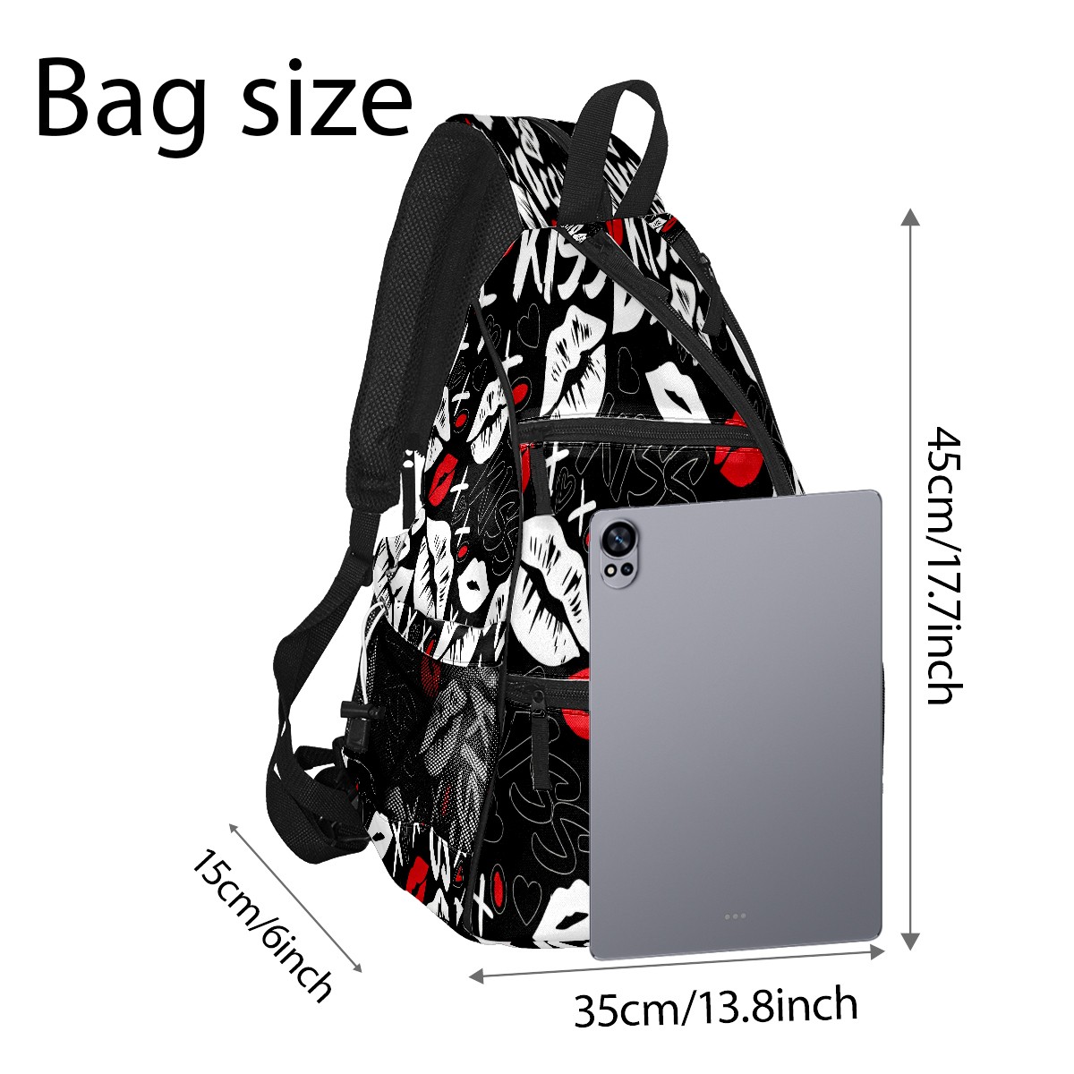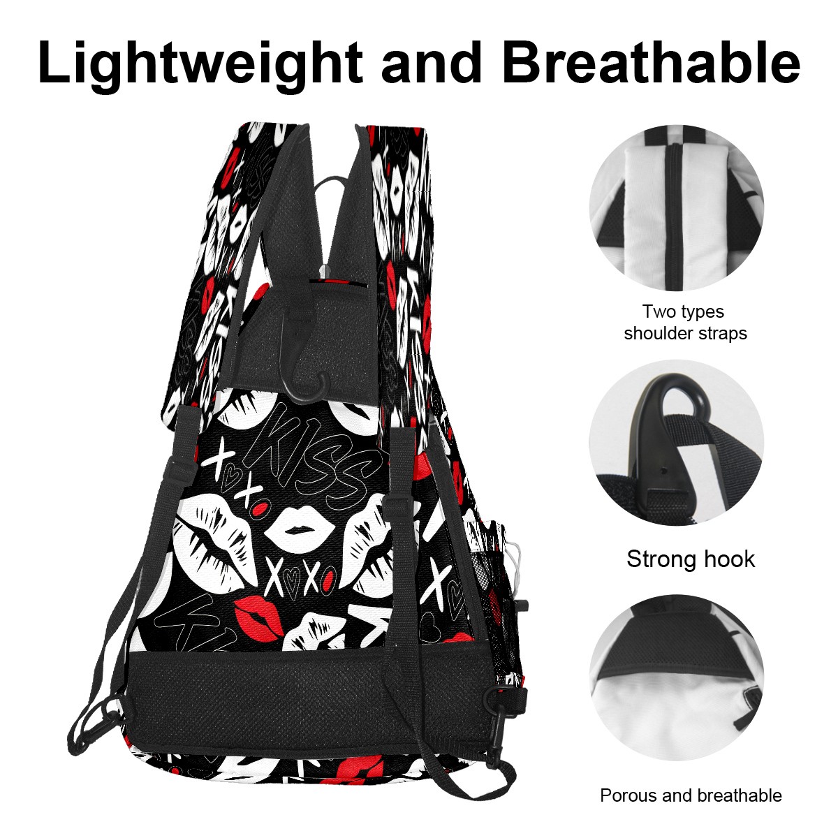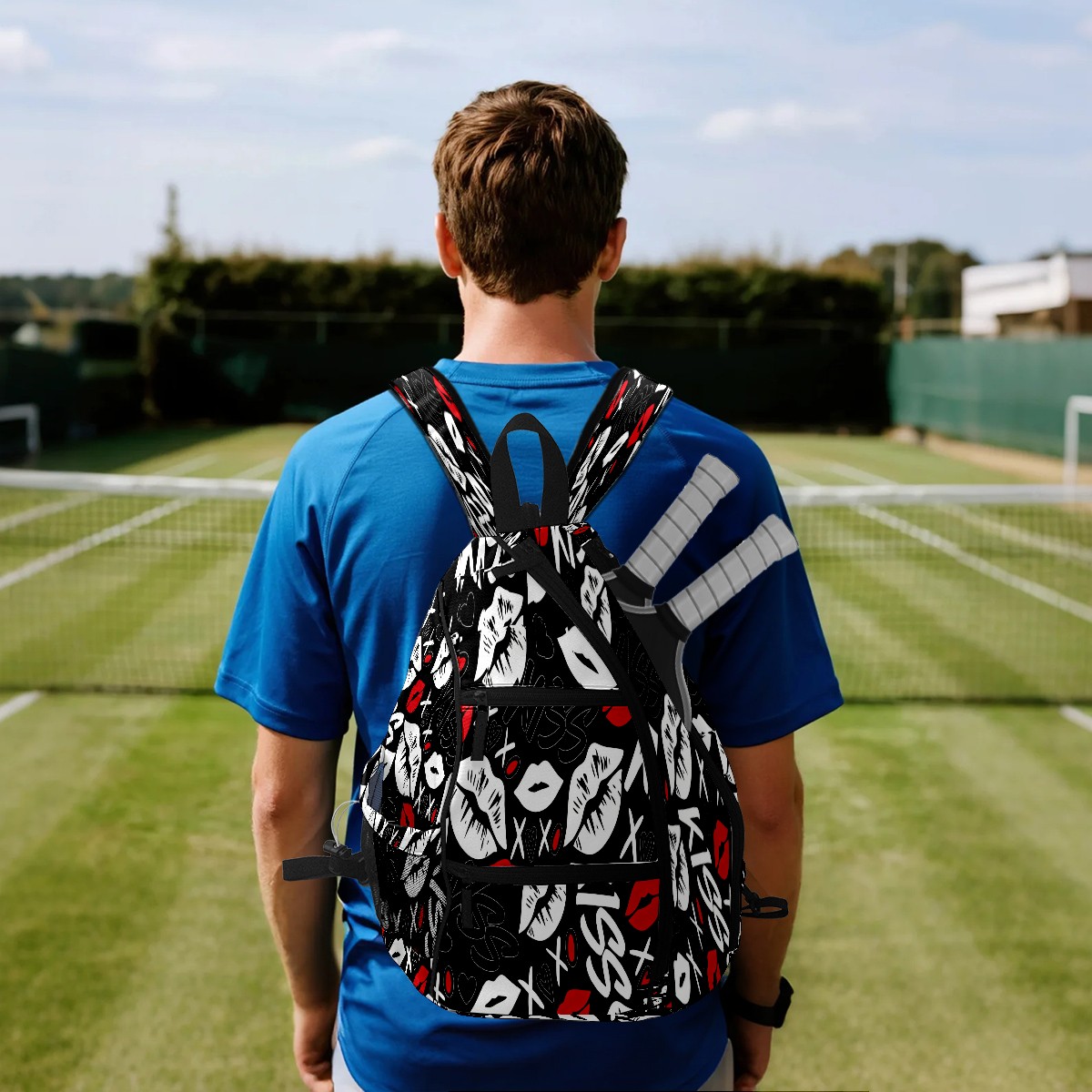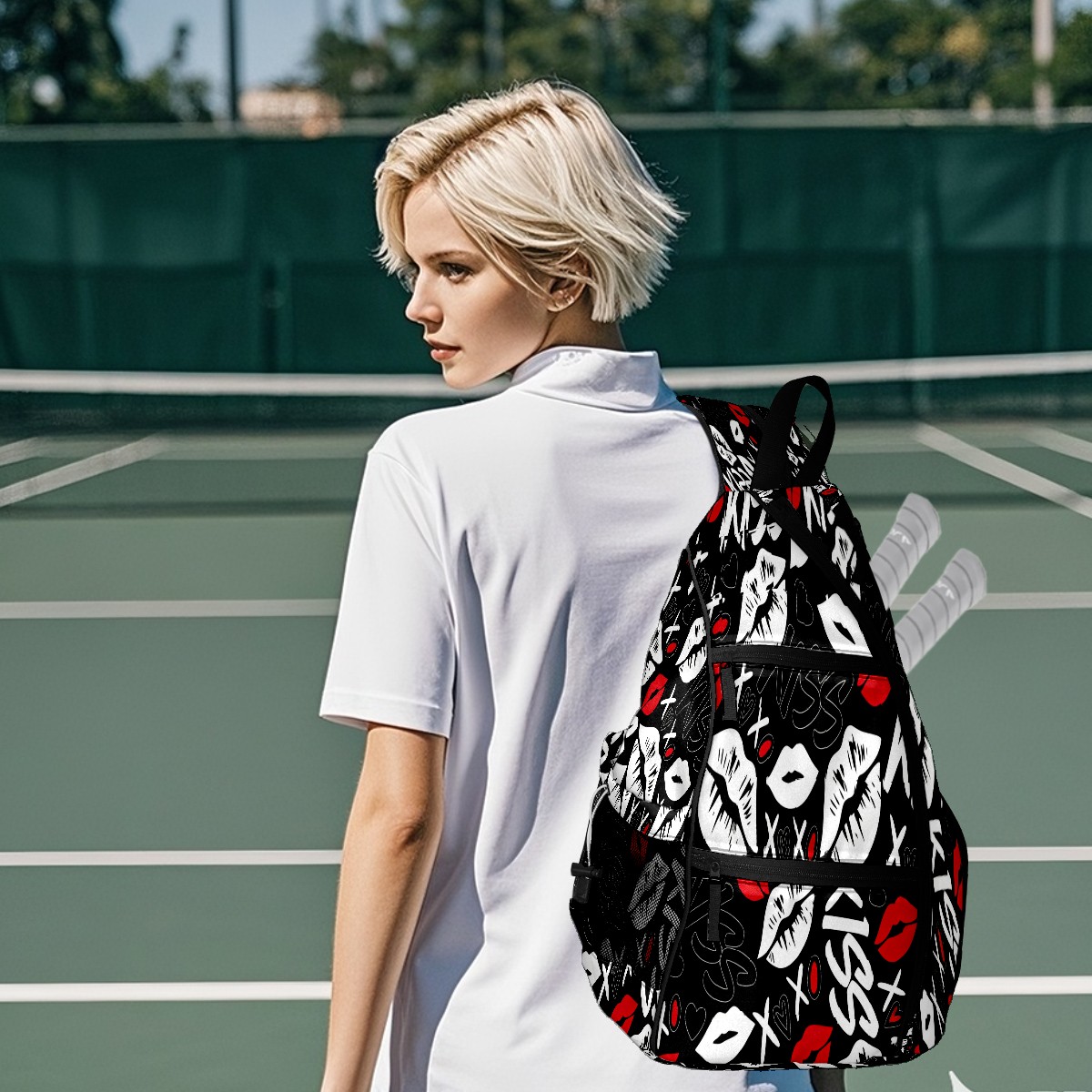 Counullo Pickleball Bag for Women & Men – Lightweight Sports Backpack with Paddle Compartments, Dual Carry Modes, Detachable Zippered Strap, Lip & Heart Black | Great Gift for Players