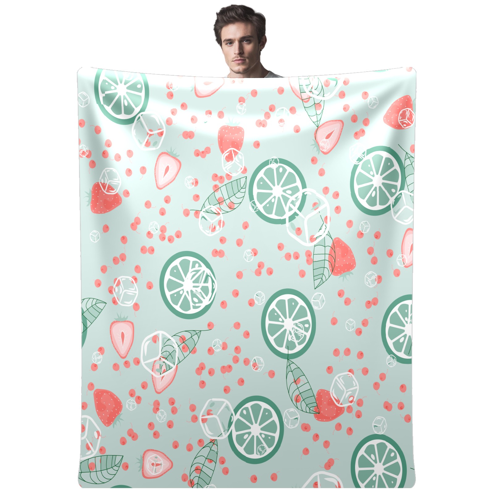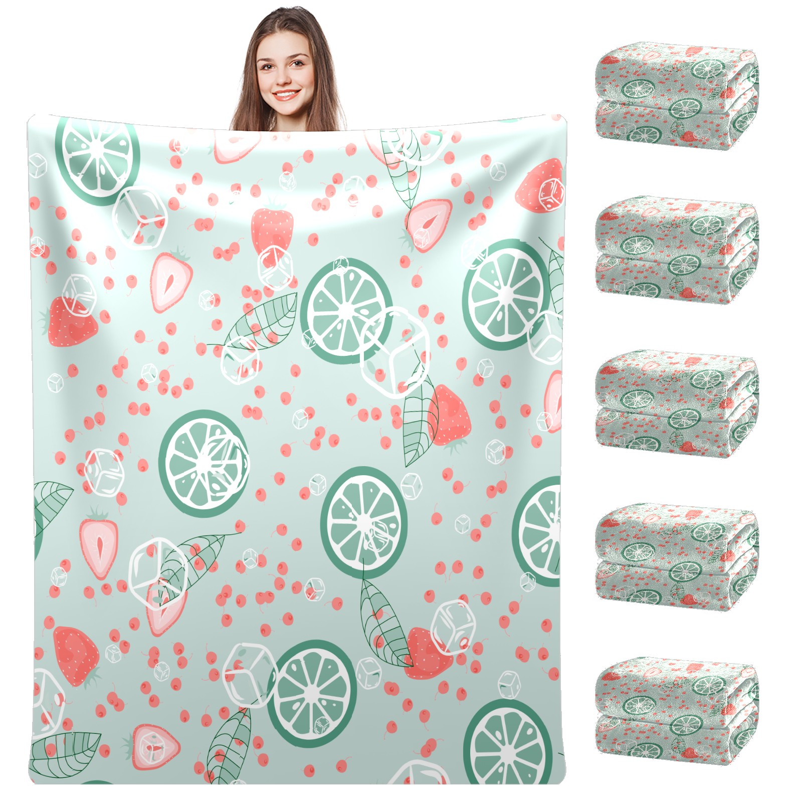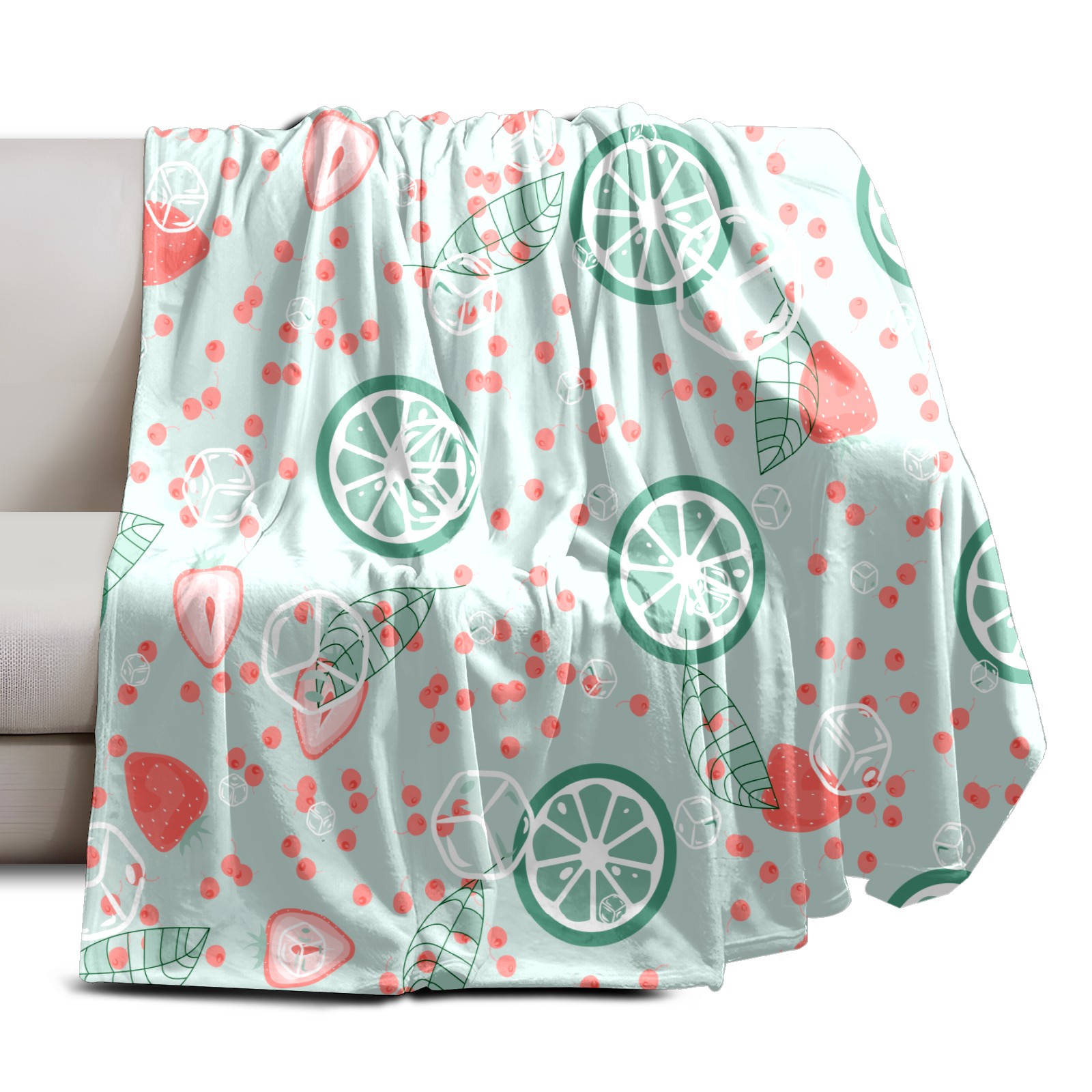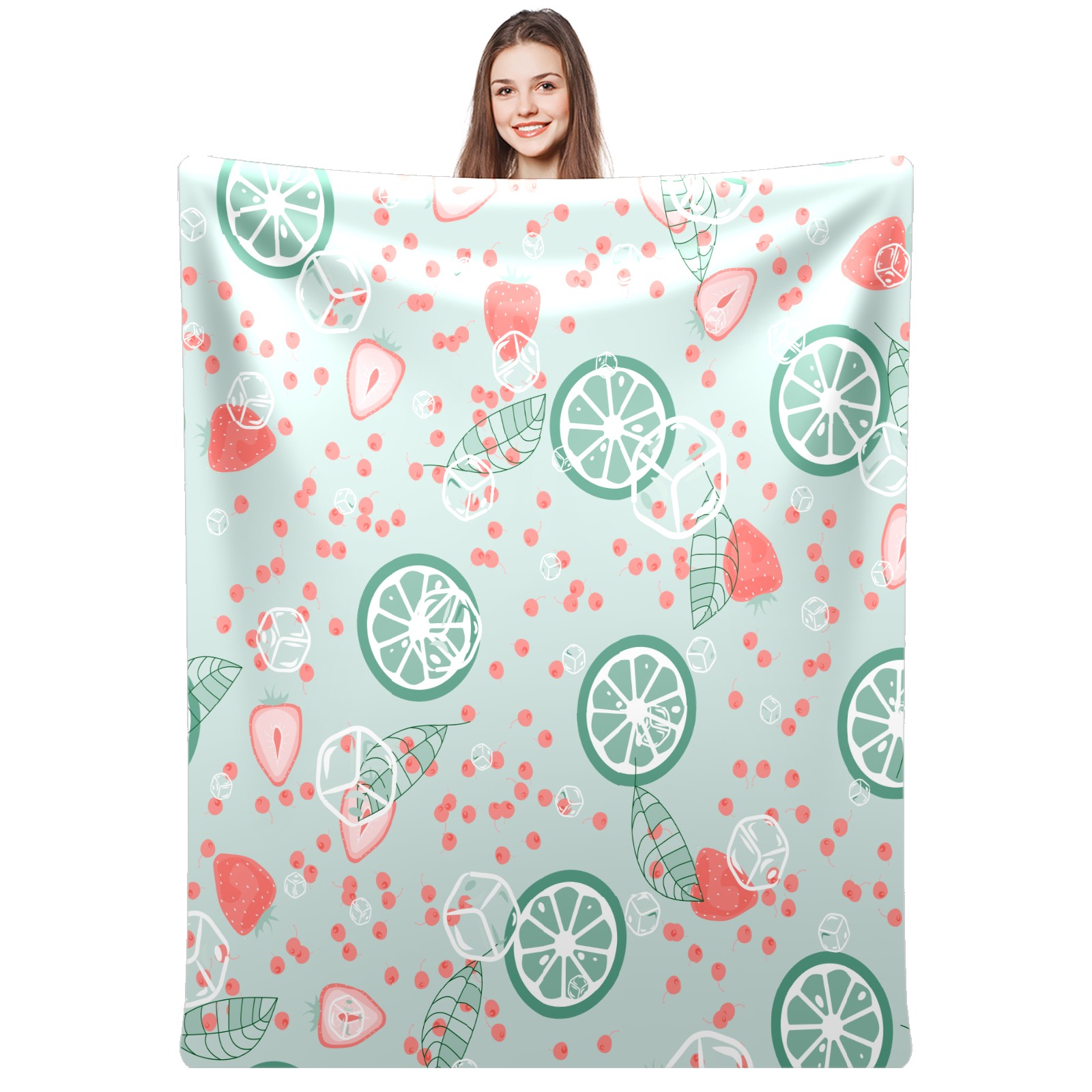 Flannel Blanket, Ultra-Soft Comfortable Home Decor Rug, The Perfect Comfort Gift for Both Men Women, Suitable for Beds, Sofas, Loungewear, and Travel 30x39in(Green Lemon Pink Strawberry Pattern)