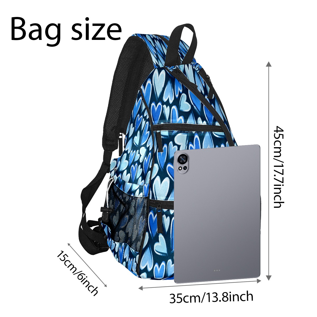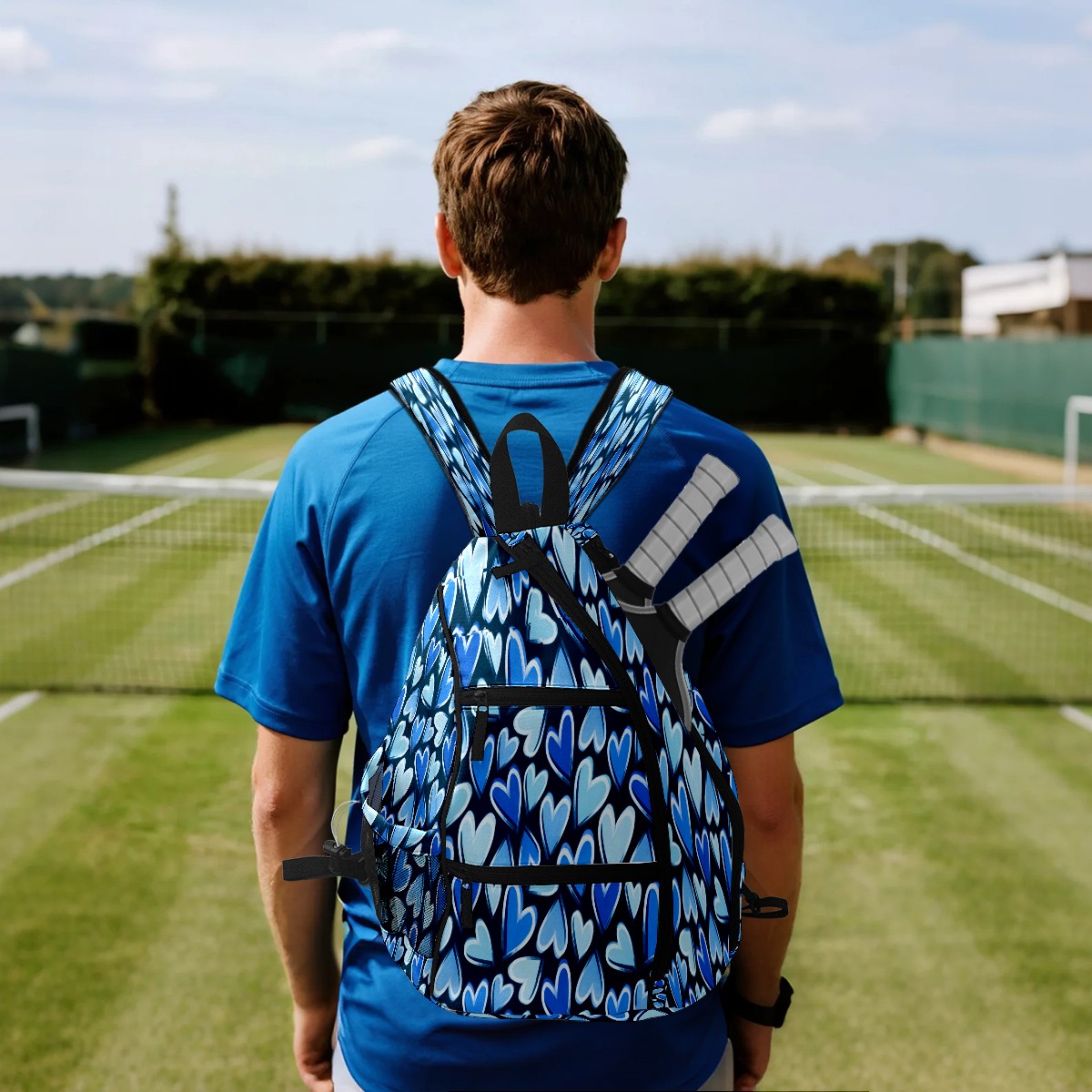 Counullo Pickleball Bag for Women & Men – Lightweight Sports Backpack with Paddle Compartments, Dual Carry Modes, Detachable Zippered Strap, Heart Block Blue | Great Gift for Players