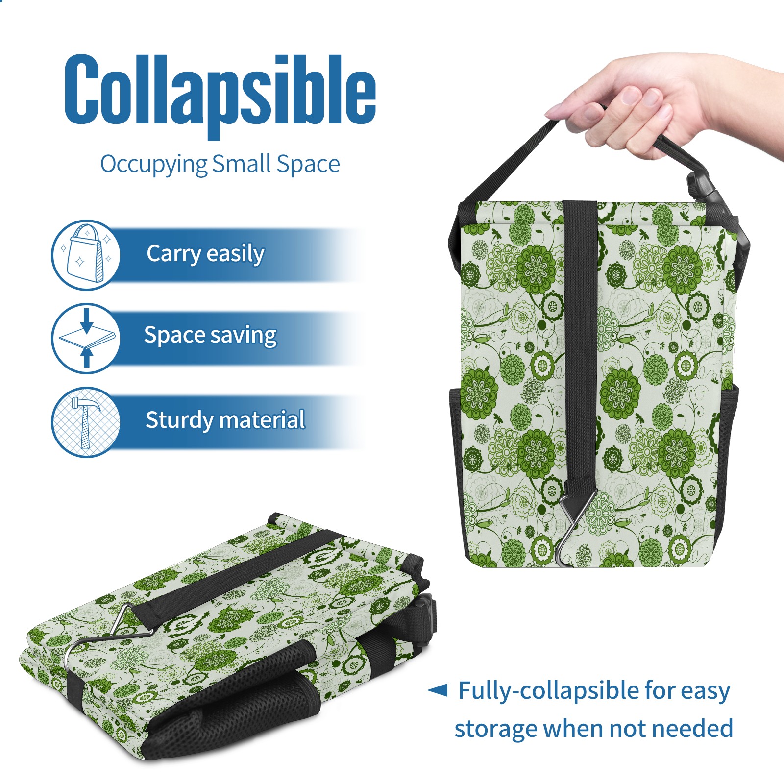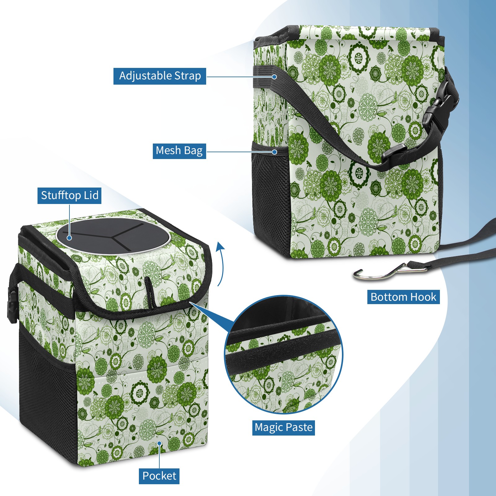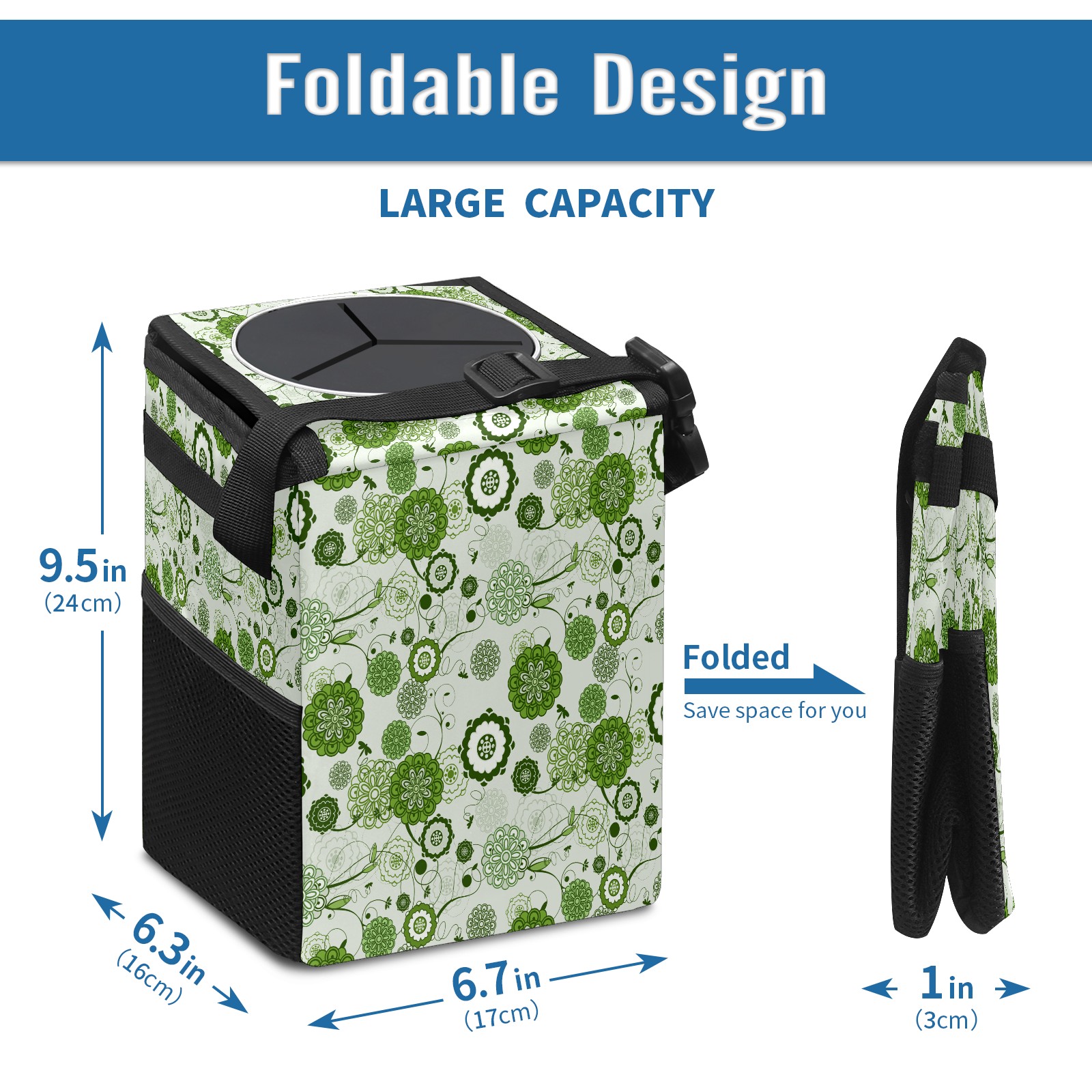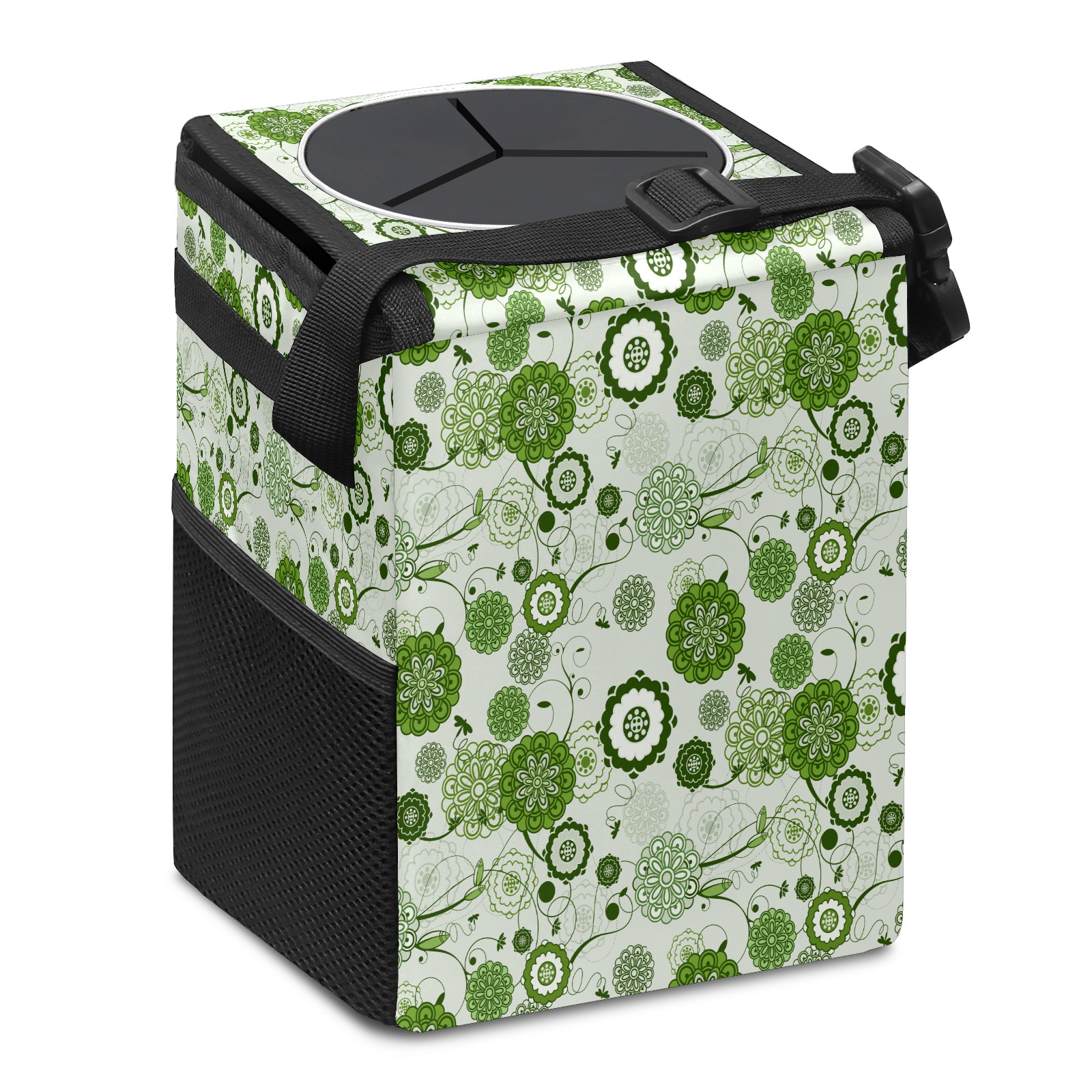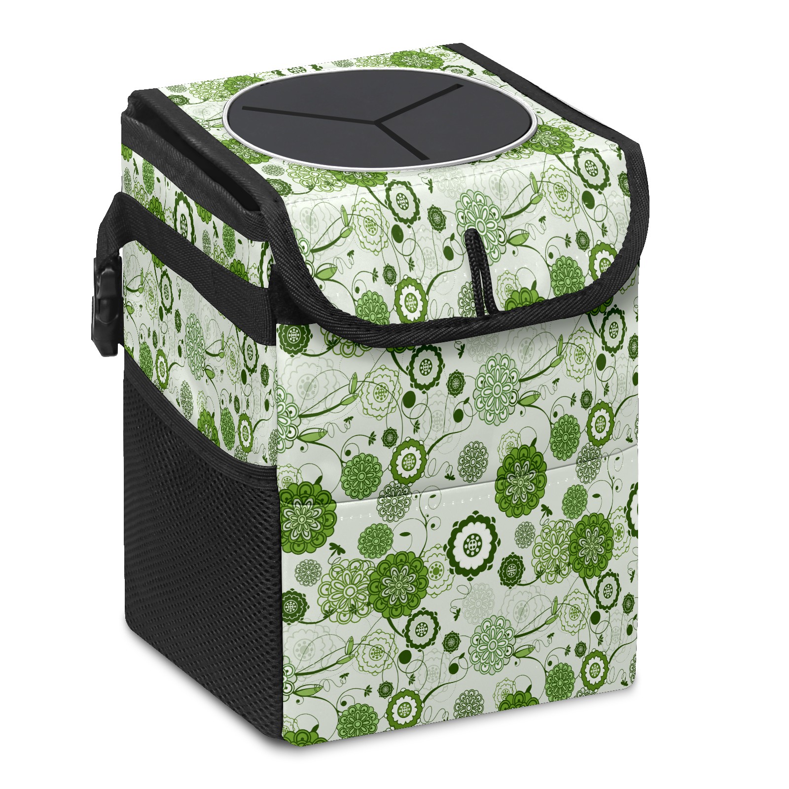 Car Garbage Can — Multi-functional, Lightweight Portable, Reusable Vehicle Trash Can, Waterproof with Sufficient Storage Capacity Green Floral