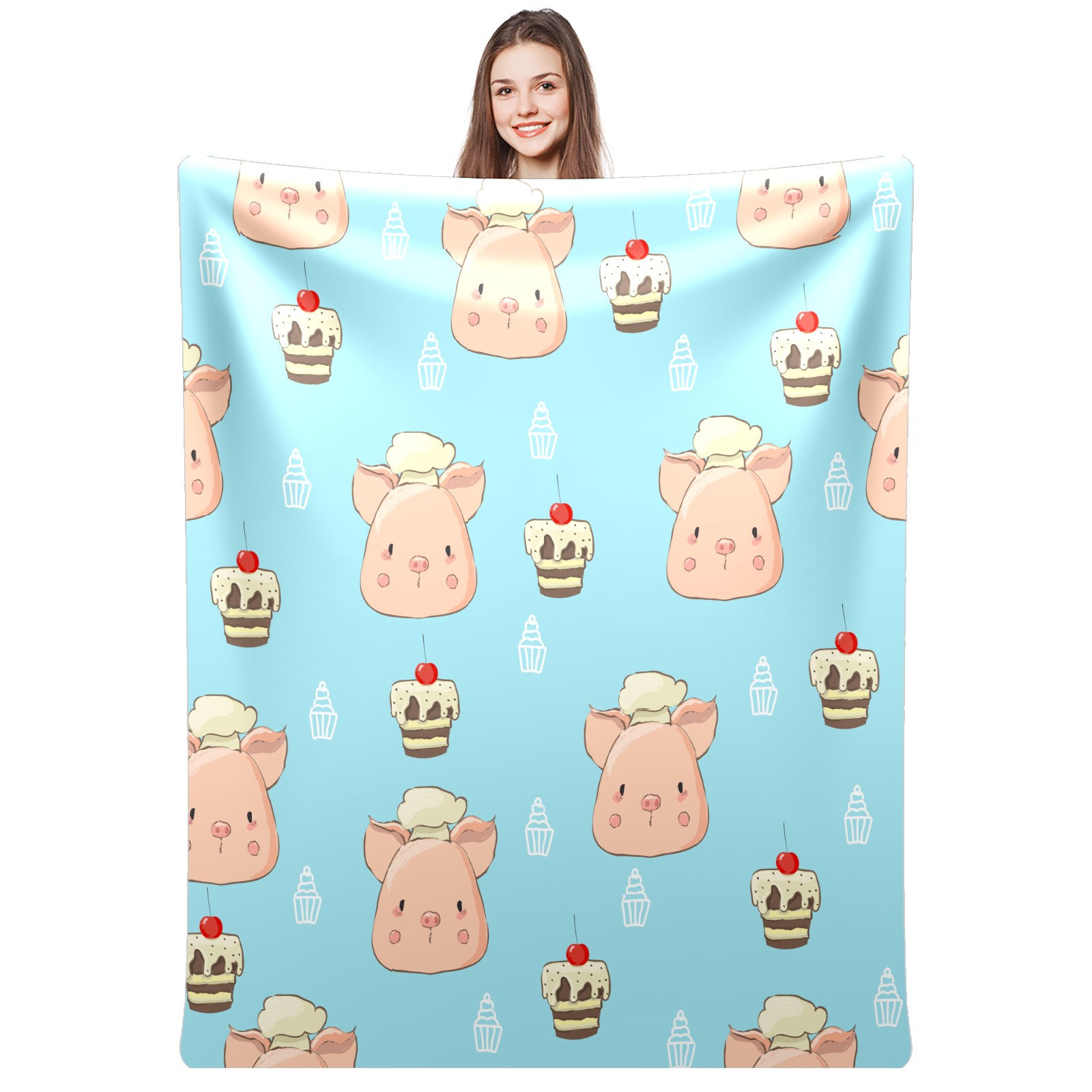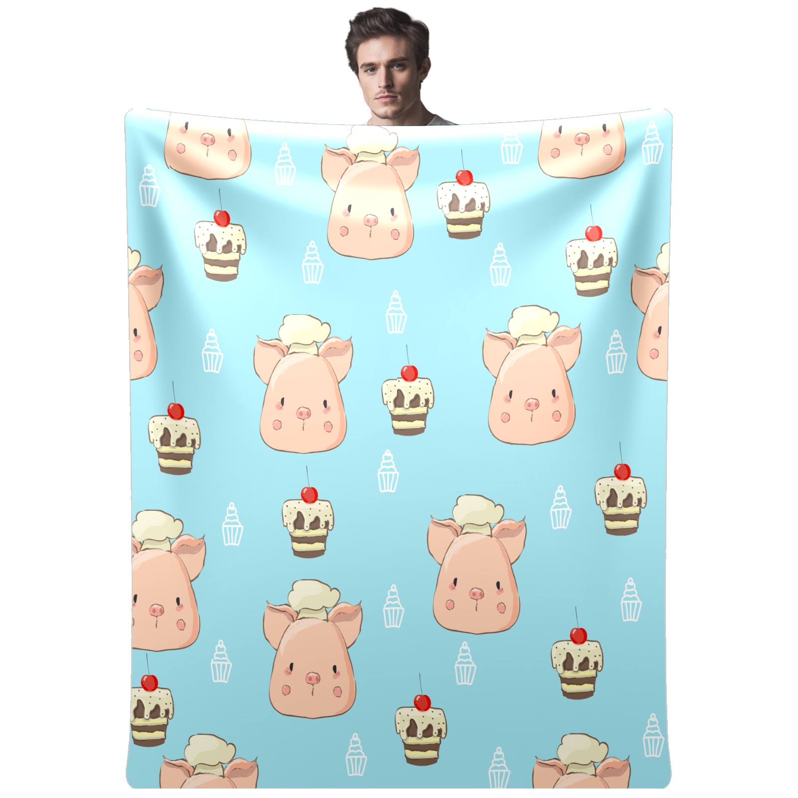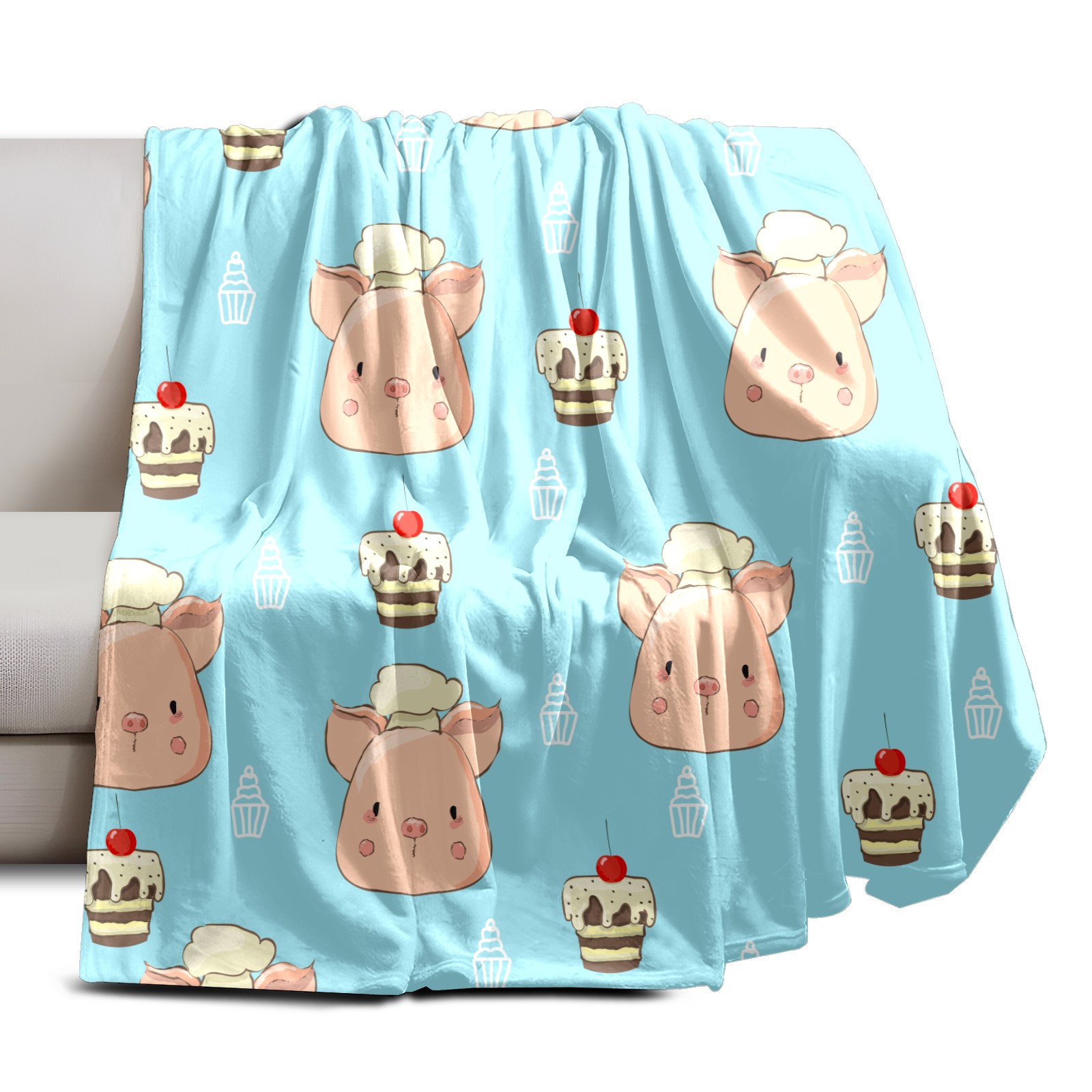 Flannel Blanket, Ultra-Soft Comfortable Home Decor Rug, The Perfect Comfort Gift for Both Men Women, Suitable for Beds, Sofas, Loungewear, and Travel 30x39in(Chef Pig Dessert Cupcakes Blue Background)