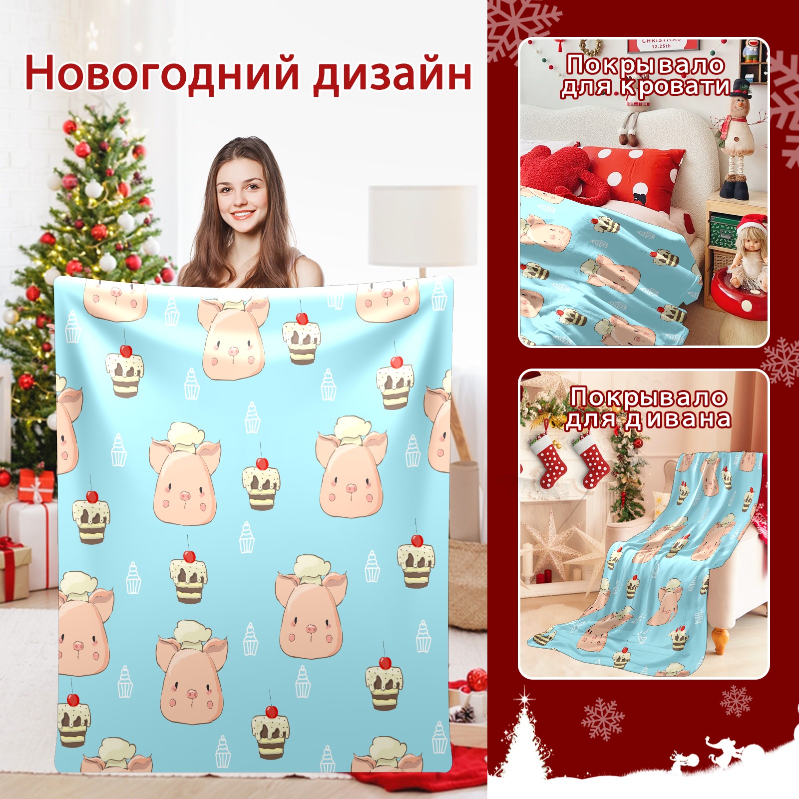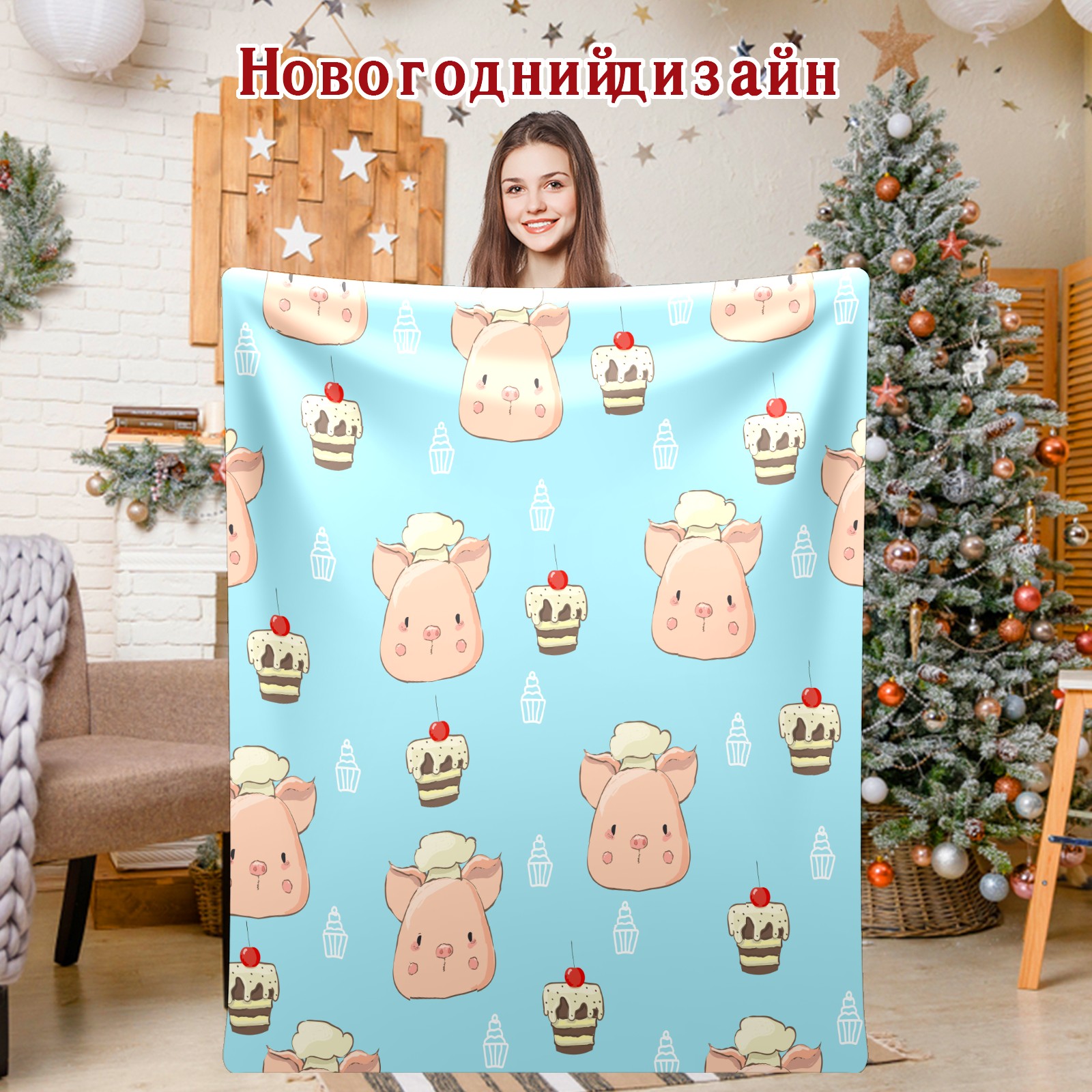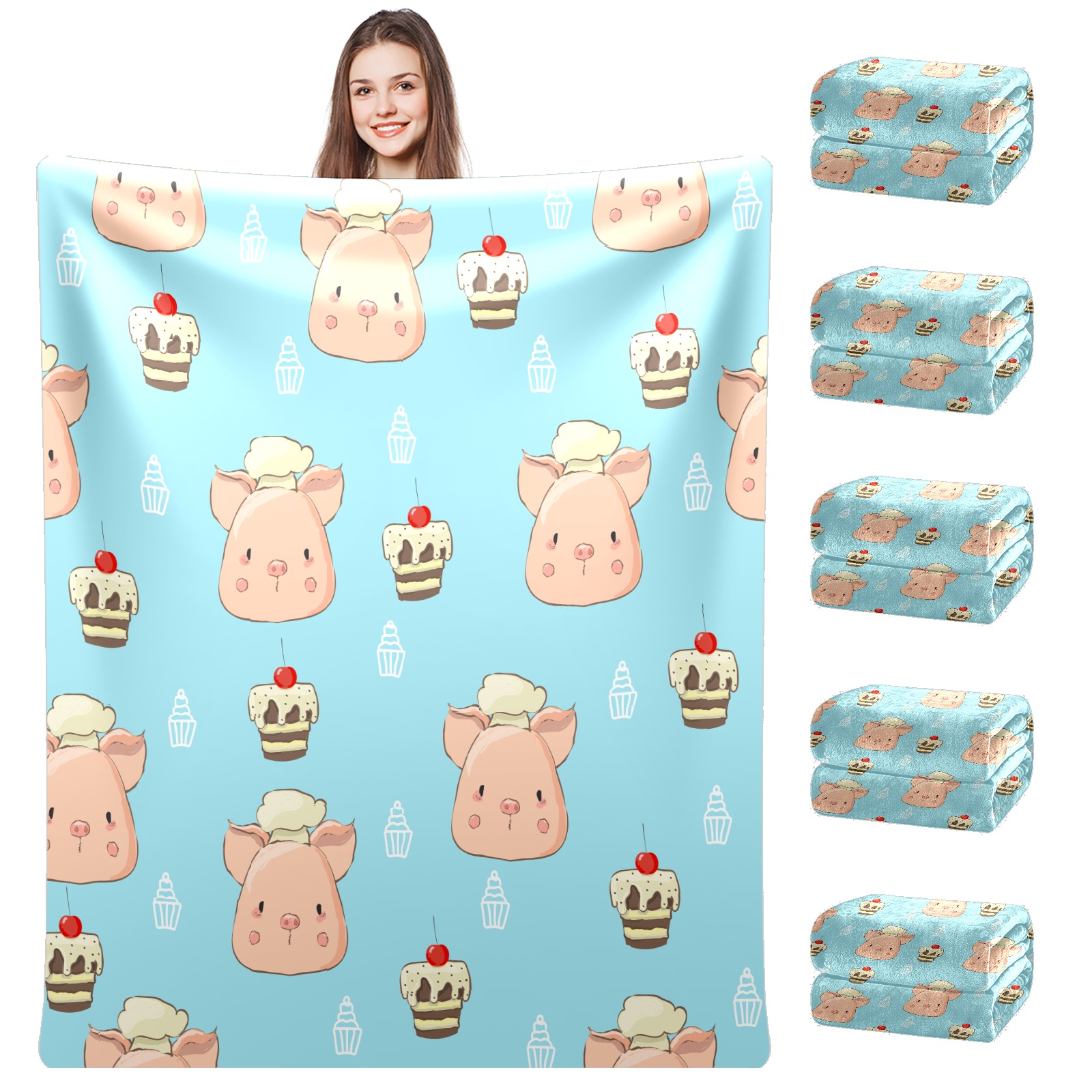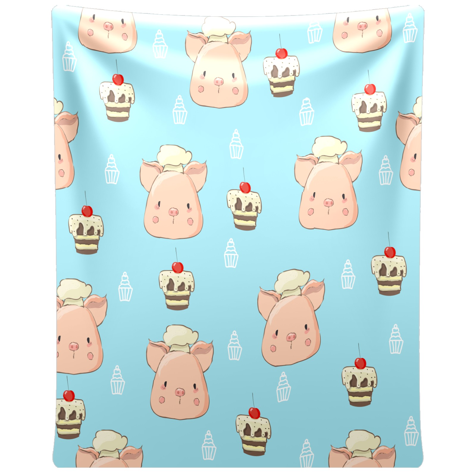 Flannel Blanket, Ultra-Soft Comfortable Home Decor Rug, The Perfect Comfort Gift for Both Men Women, Suitable for Beds, Sofas, Loungewear, and Travel 30x39in(Chef Pig Dessert Cupcakes Blue Background)