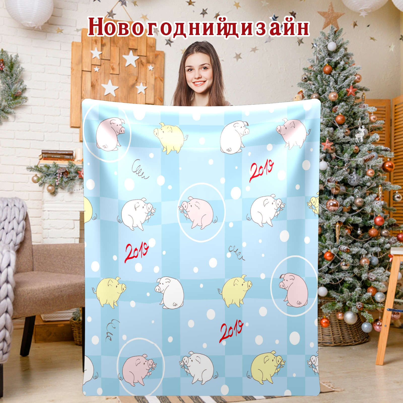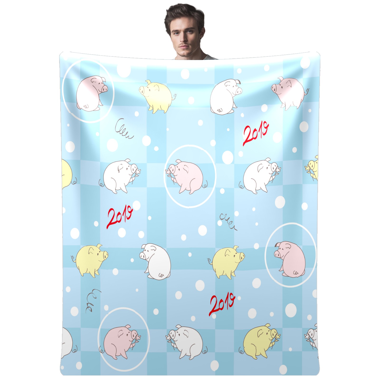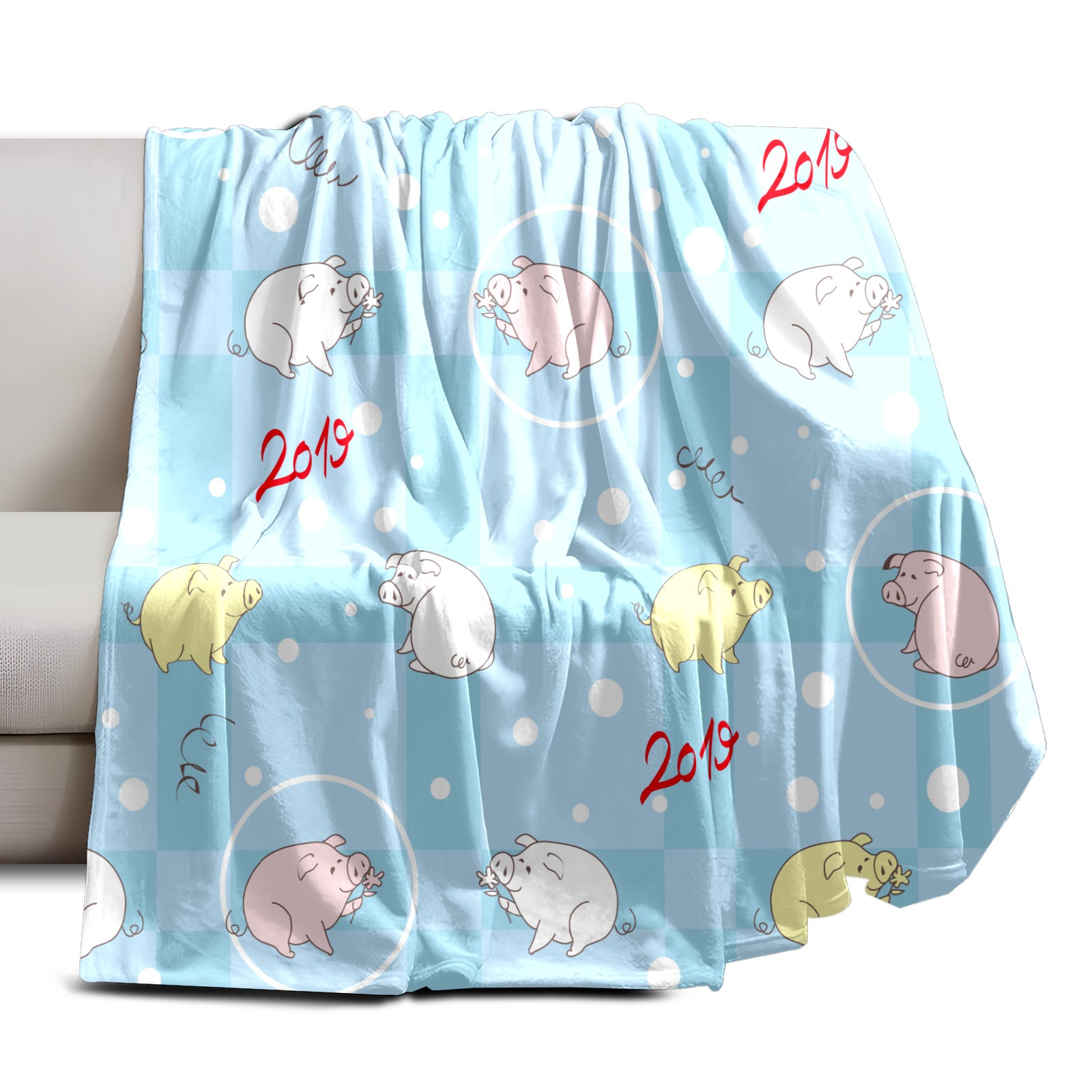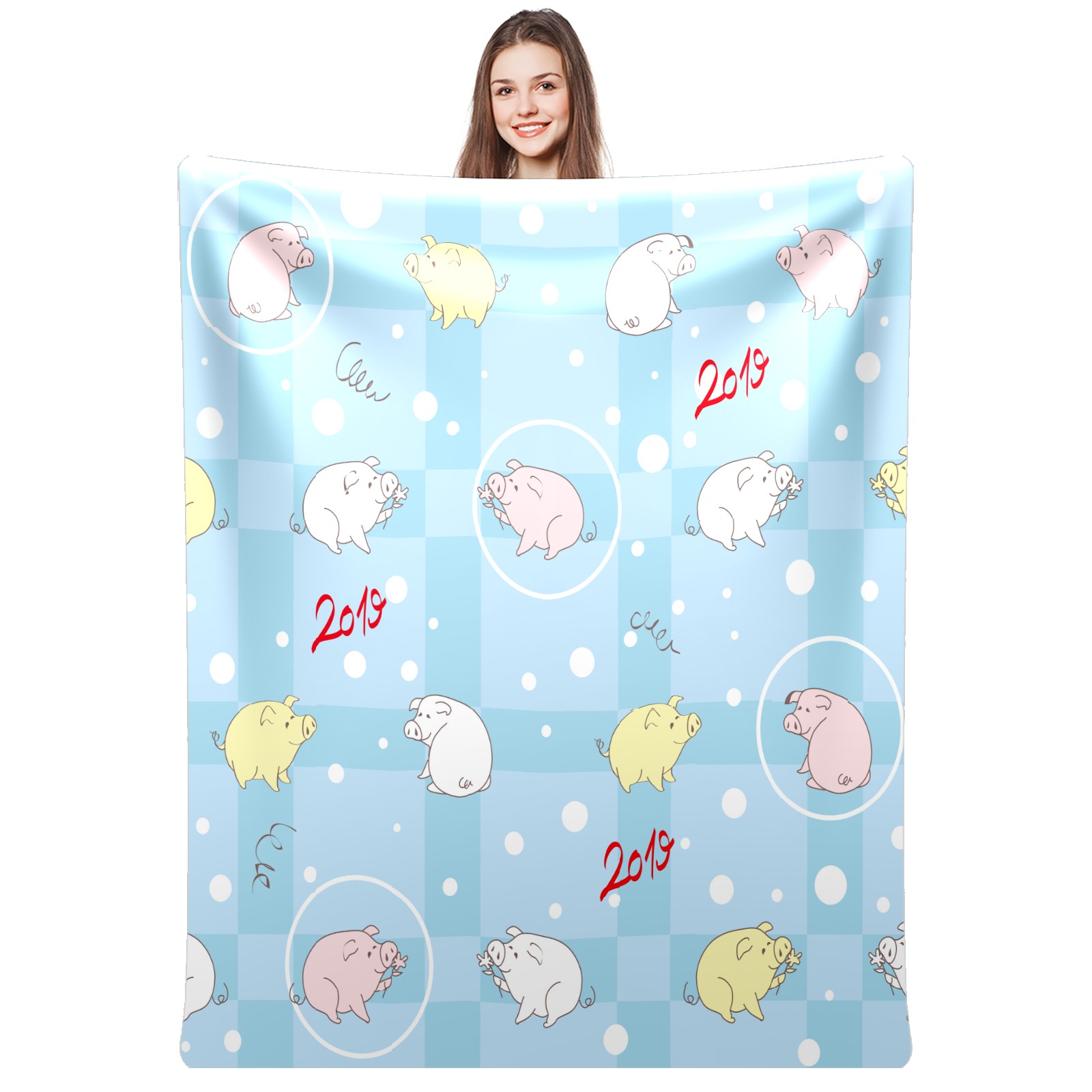 Flannel Blanket, Ultra-Soft Comfortable Home Decor Rug, The Perfect Comfort Gift for Both Men Women, Suitable for Beds, Sofas, Loungewear, and Travel 30x39in(Yellow Pink White Pig Blue Plaid Pattern)