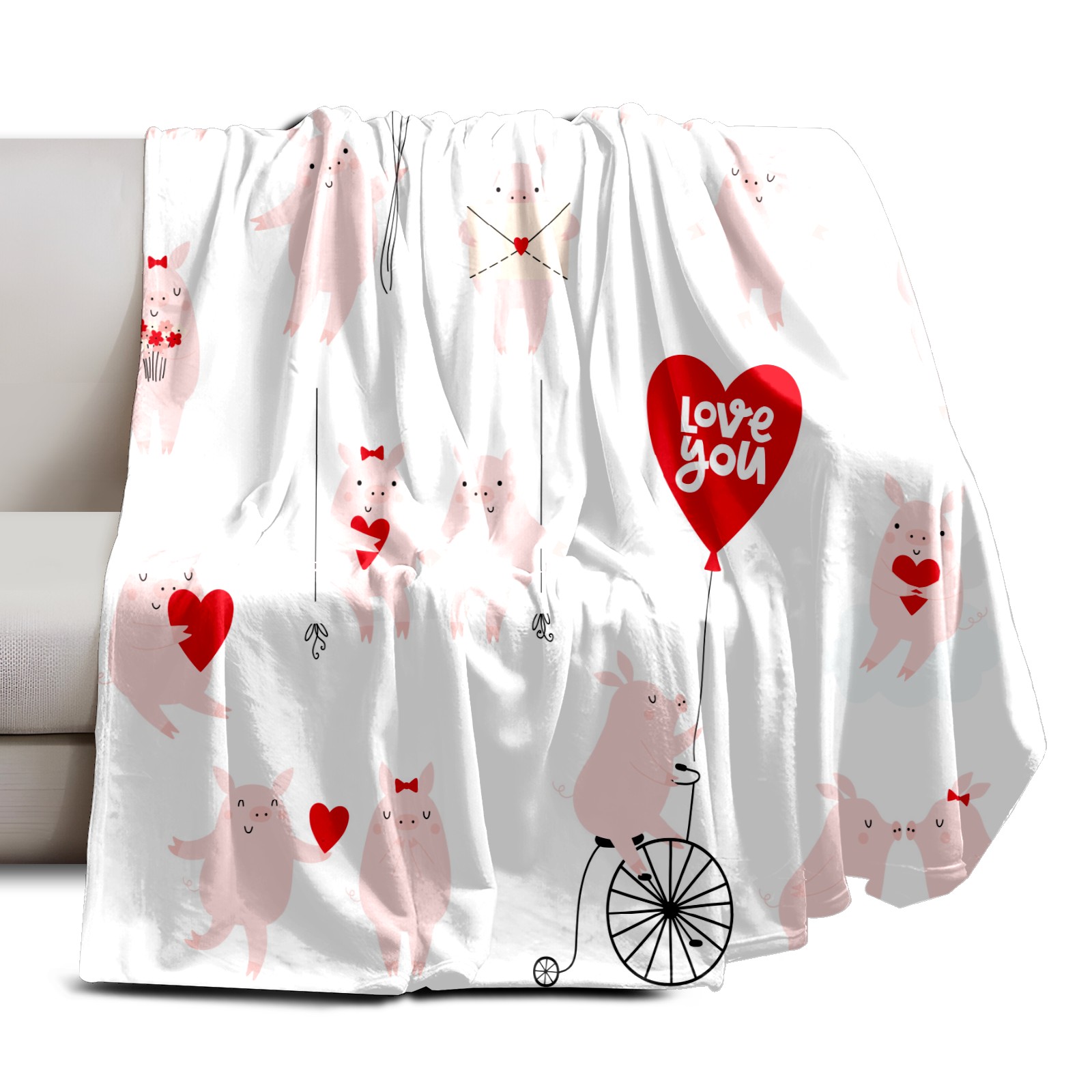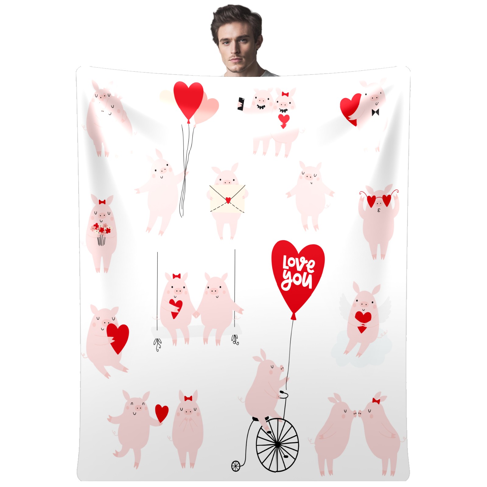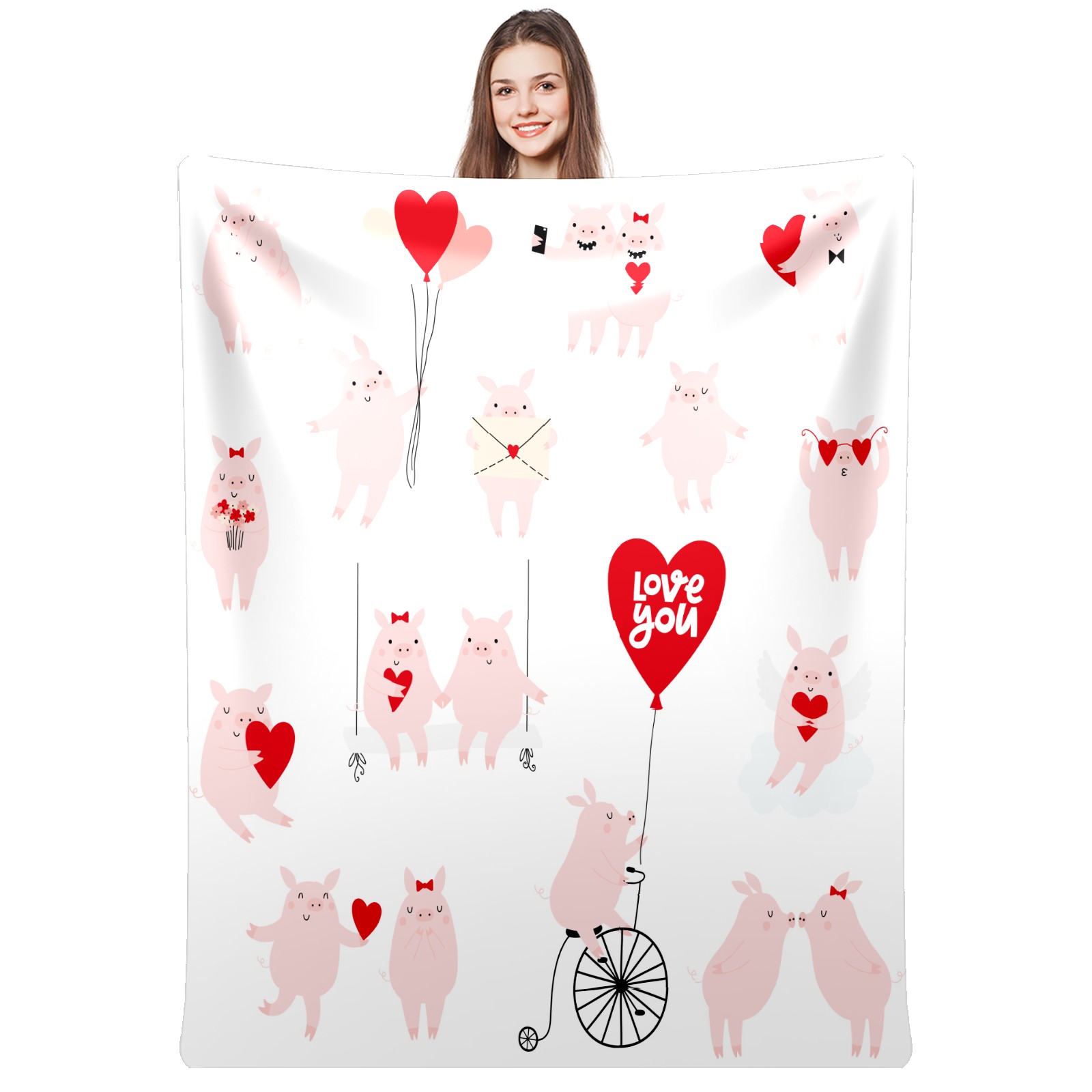 Flannel Blanket, Ultra-Soft Comfortable Home Decor Rug, The Perfect Comfort Gift for Both Men Women, Suitable for Beds, Sofas, Loungewear, and Travel 30x39in(Lover Couple Pigs Love You Balloon)