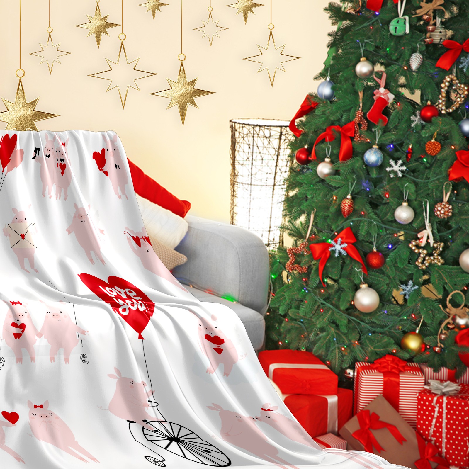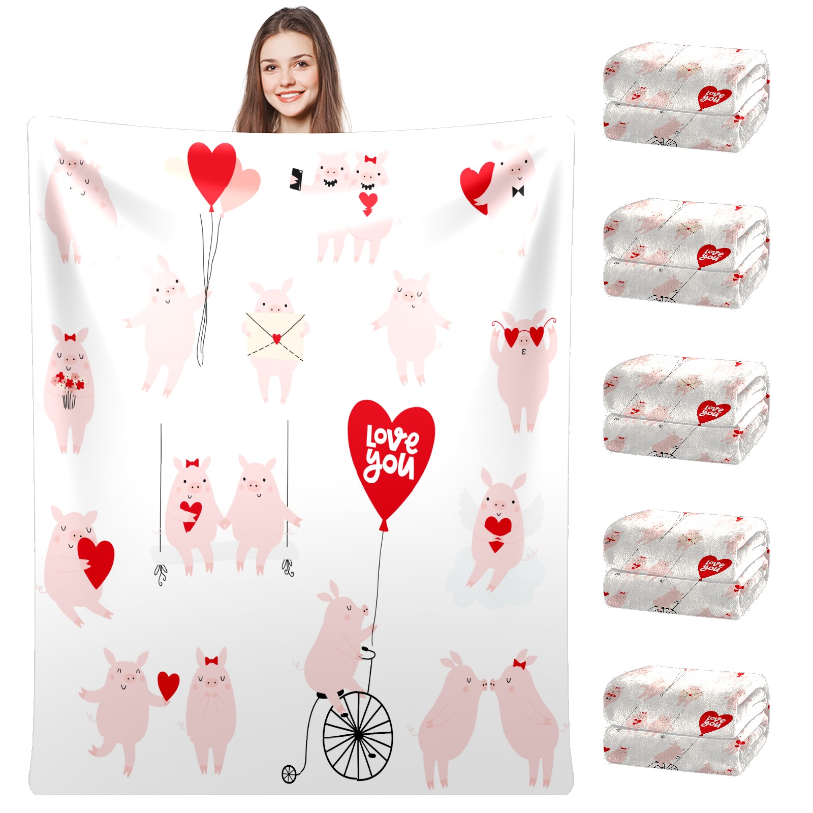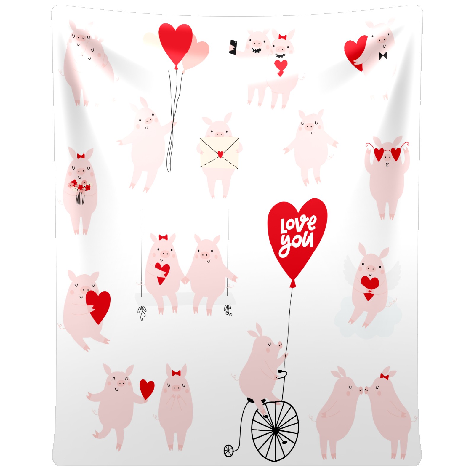 Flannel Blanket, Ultra-Soft Comfortable Home Decor Rug, The Perfect Comfort Gift for Both Men Women, Suitable for Beds, Sofas, Loungewear, and Travel 30x39in(Lover Couple Pigs Love You Balloon)