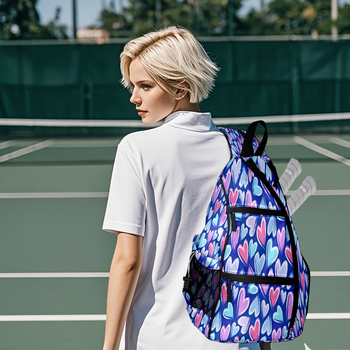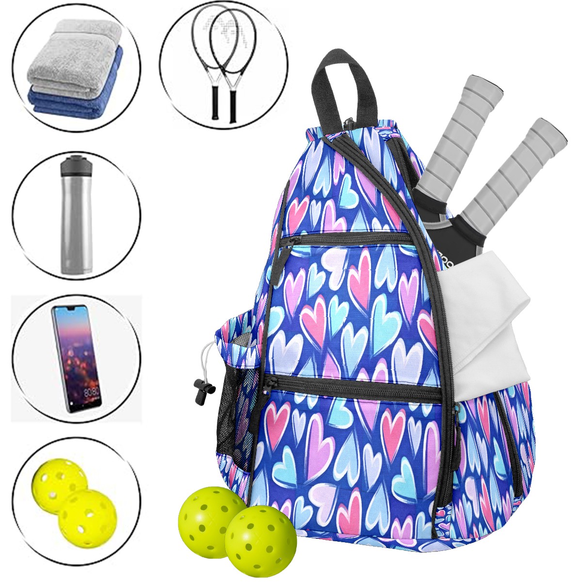 Counullo Pickleball Bag for Women & Men – Lightweight Sports Backpack with Paddle Compartments, Dual Carry Modes, Detachable Zippered Strap, Gradient Heart Blue | Great Gift for Players