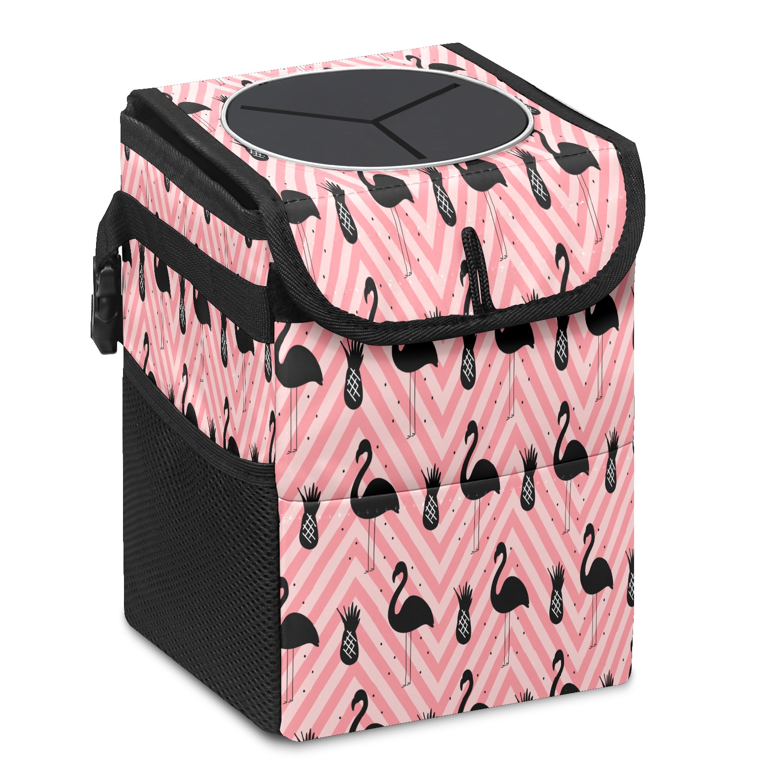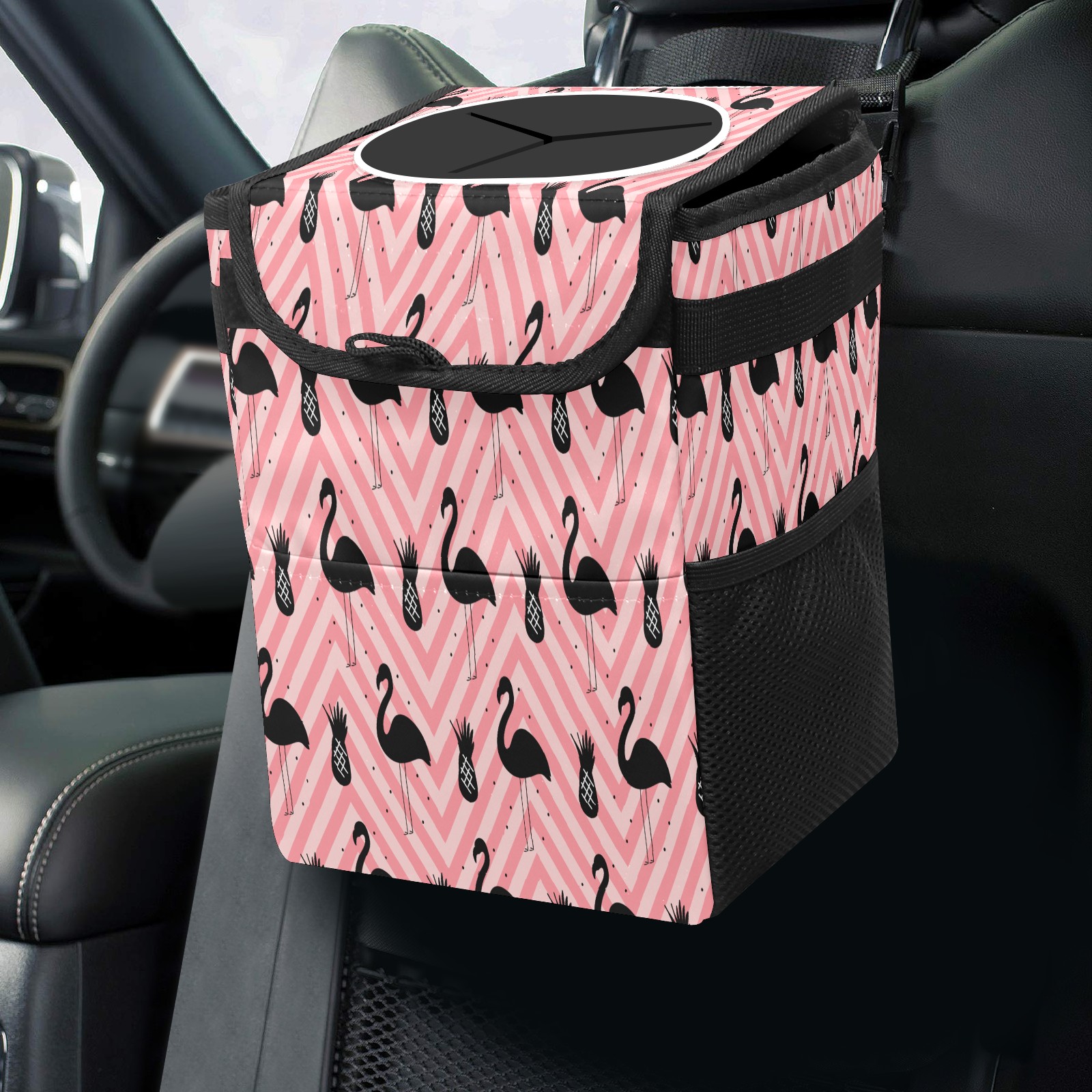 Car Garbage Can — Multi-functional, Lightweight Portable, Reusable Vehicle Trash Can, Waterproof with Sufficient Storage Capacity Flamingo And Pineapple Silhouette
